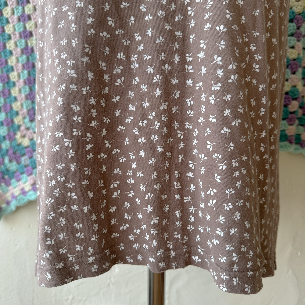 브라운 색감의 잎 무늬 민소매 티셔츠예요