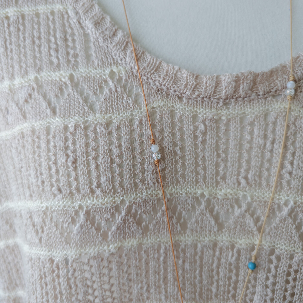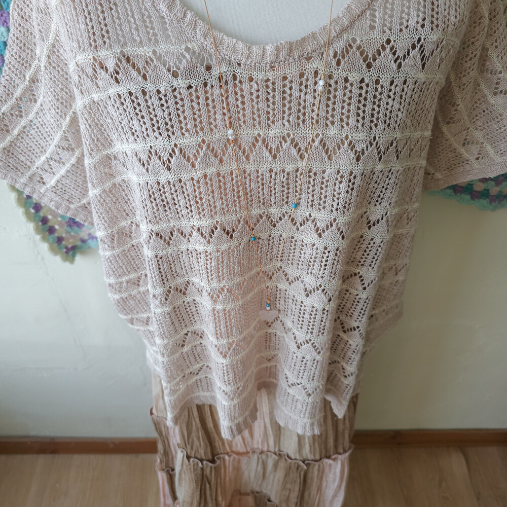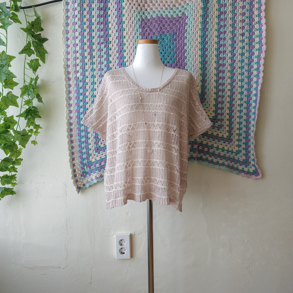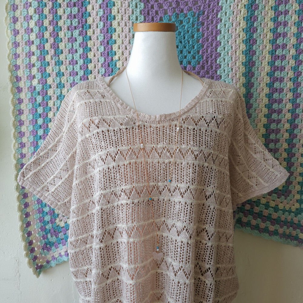 베이지 색감의 커버업 여름 니트 탑이에요