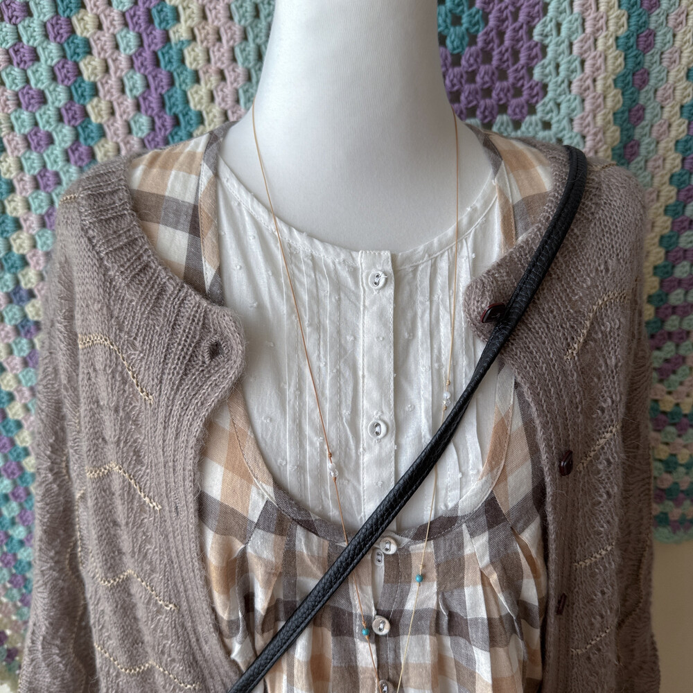 아주 뮤트한 팥죽브라운 색감의 믹스 가디건이에요