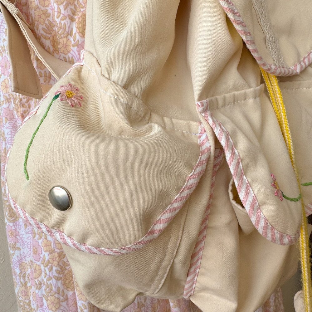 앞 쪽 포켓에 자수 실이 살짝 비쳐보여서 펜오염처럼 보이기도 하는데