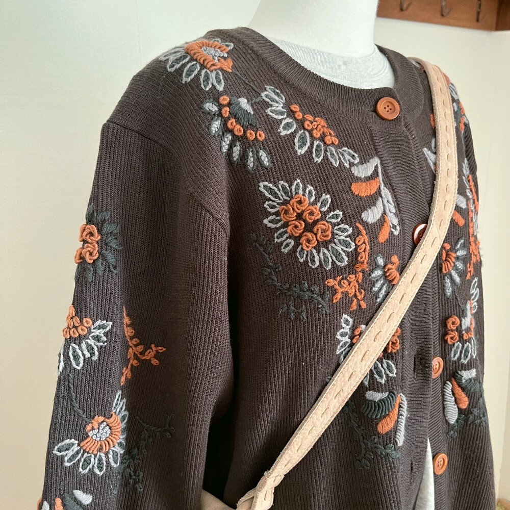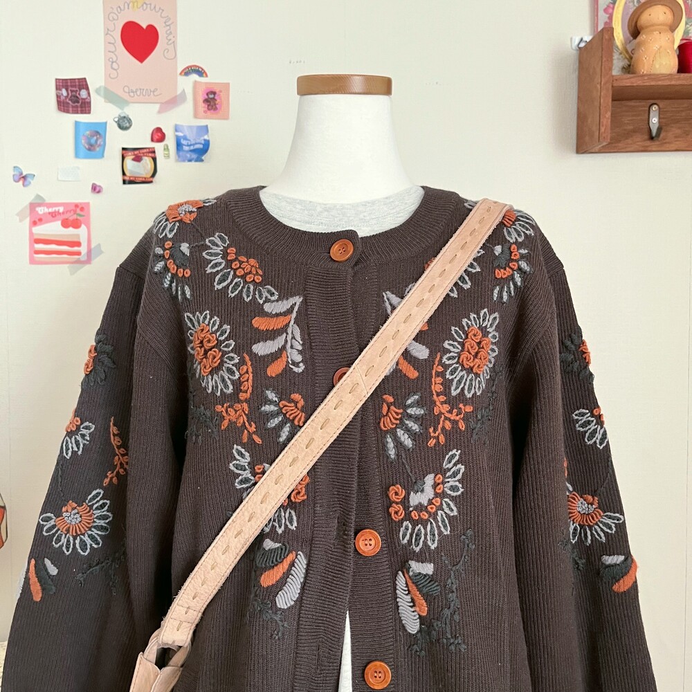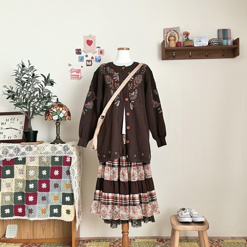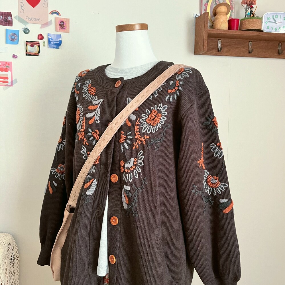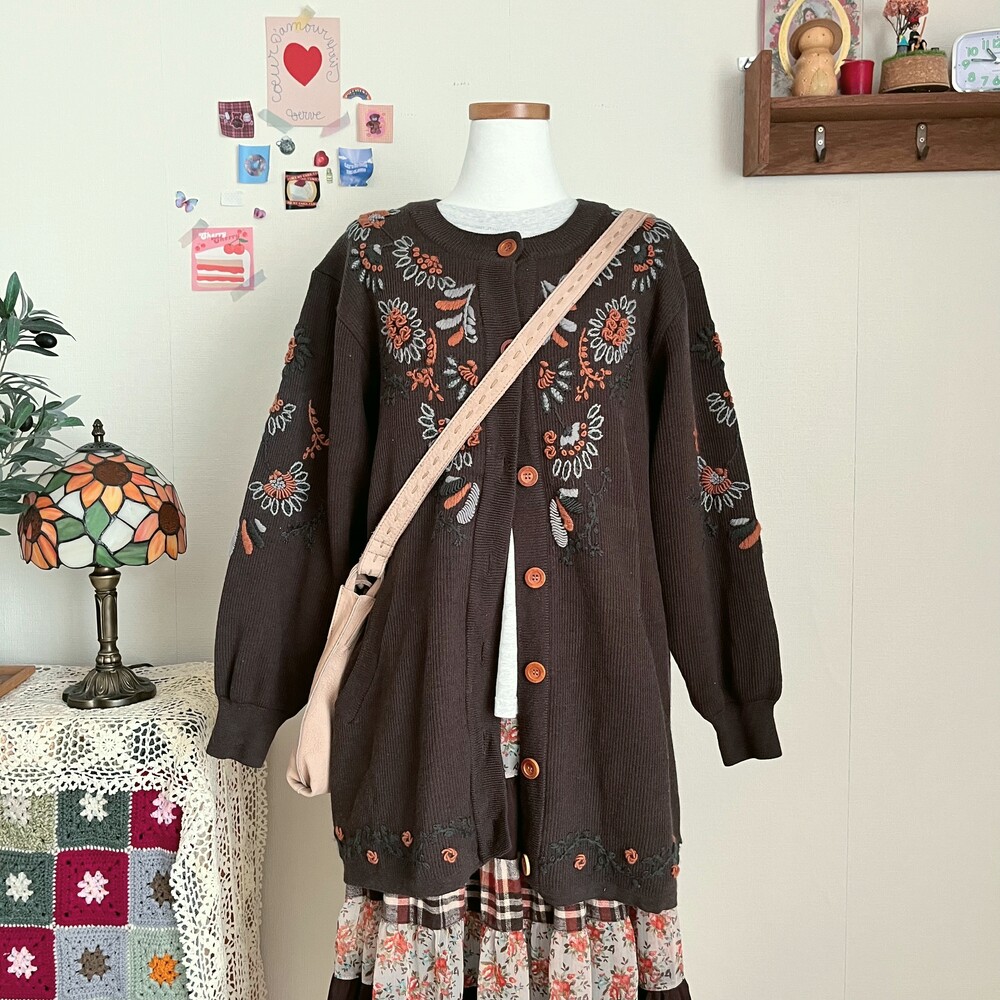 고동색감의 자수 가디건이에요