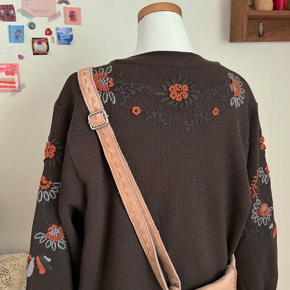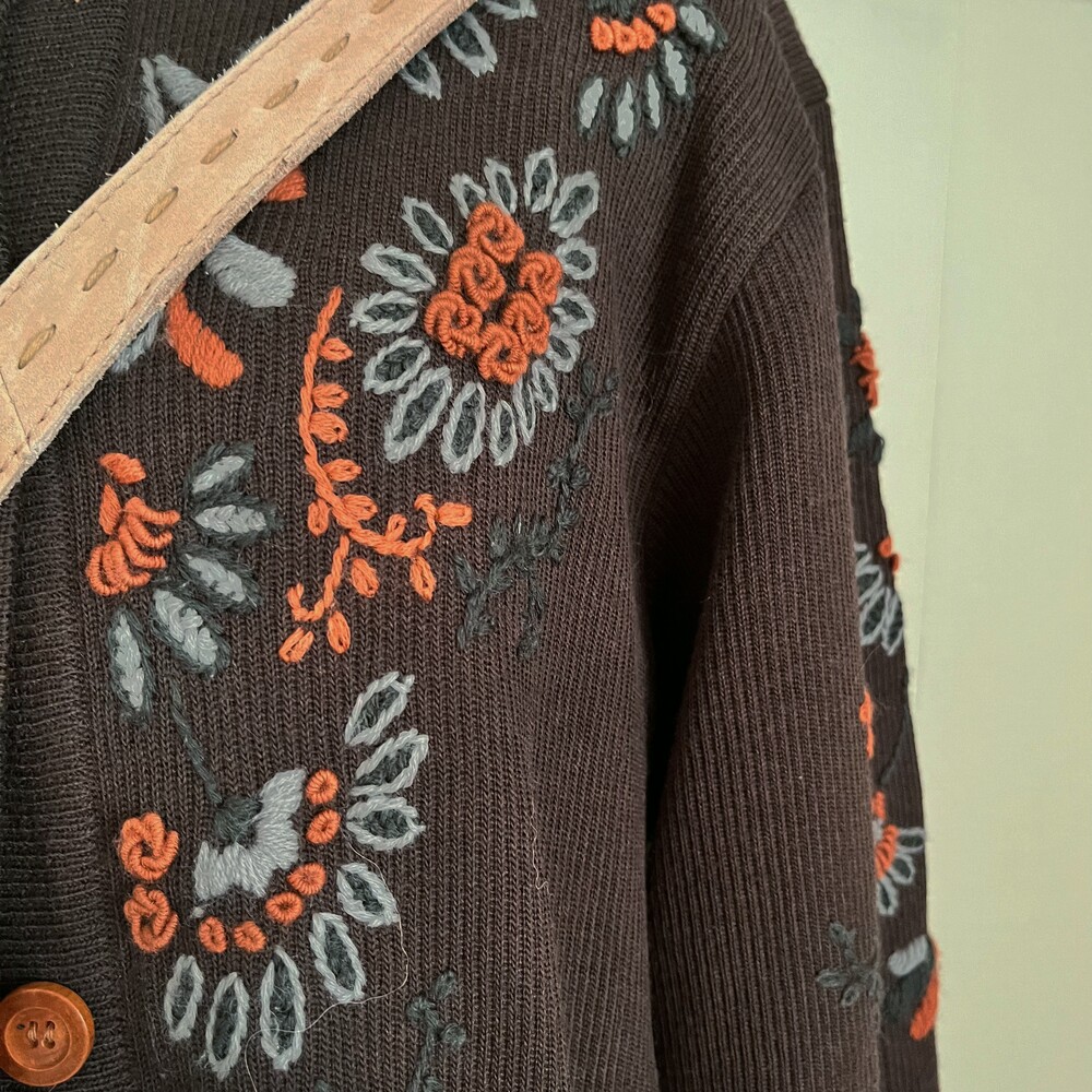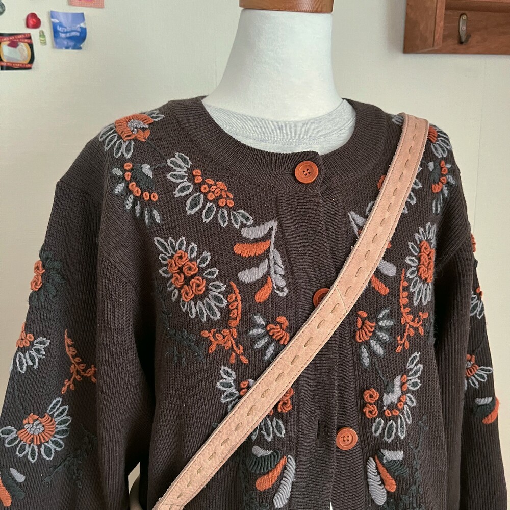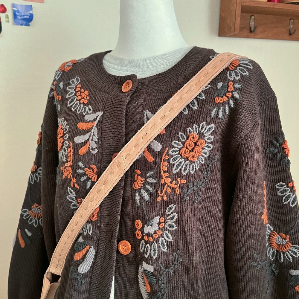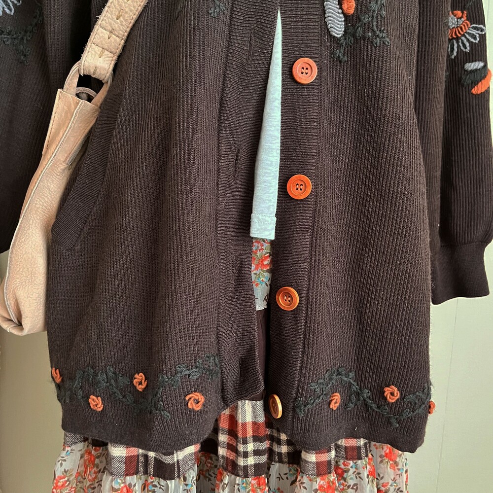 고동색감의 자수 가디건이에요