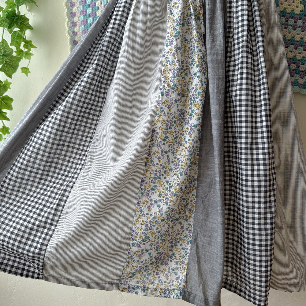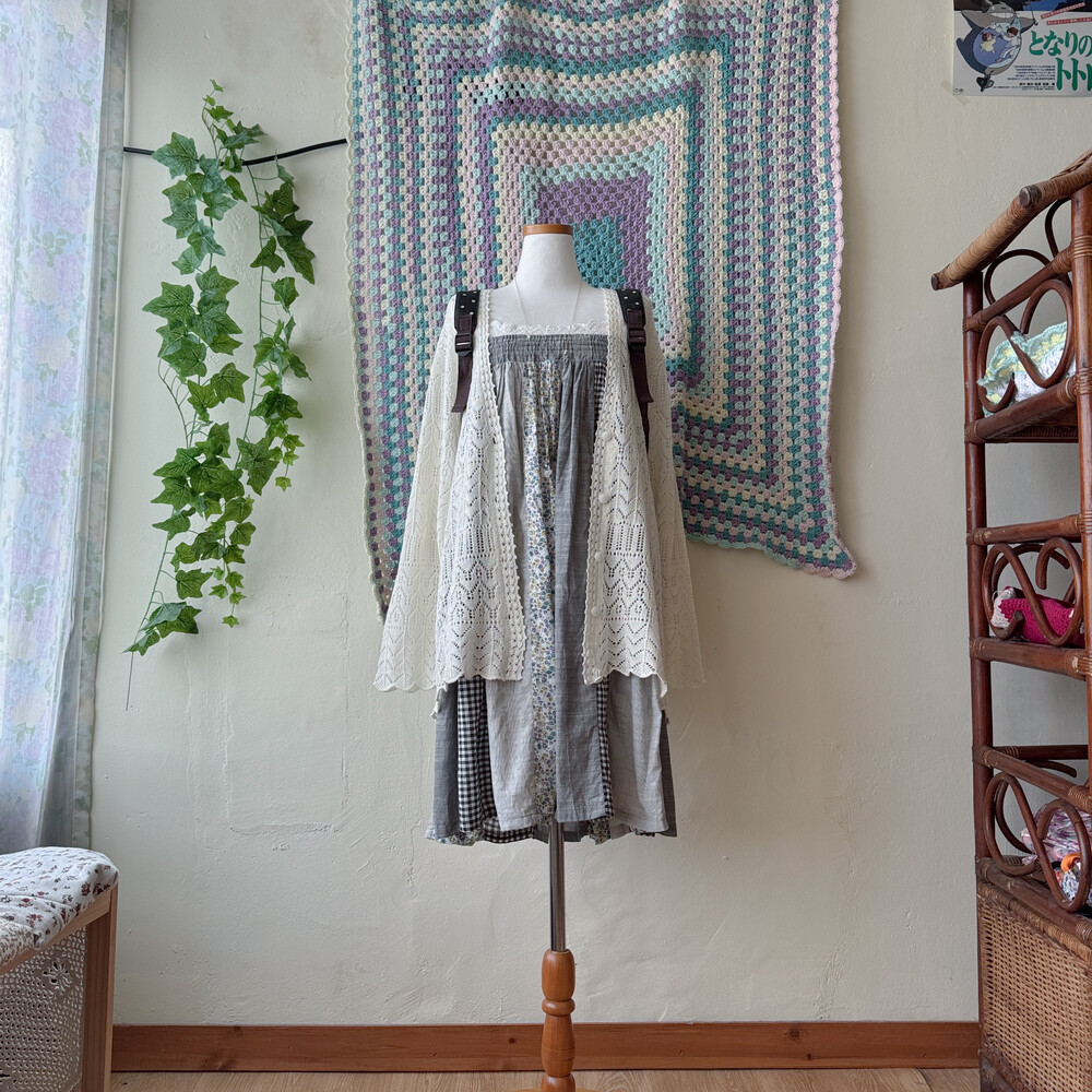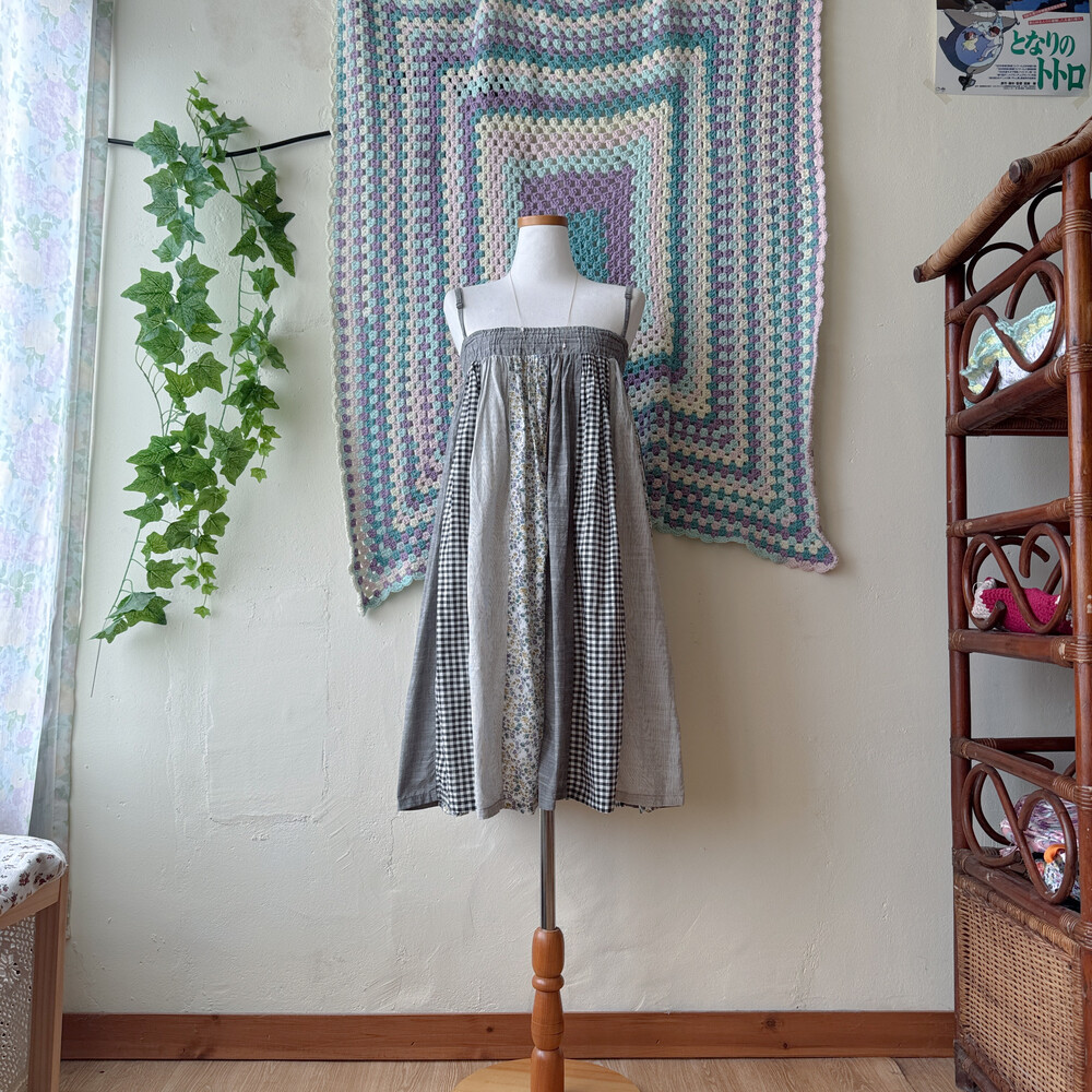 그레이 색감의 세로 패치 끈원피스예요