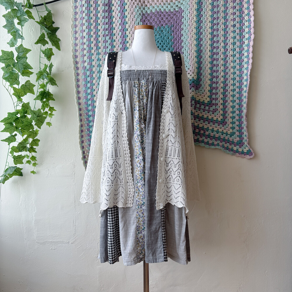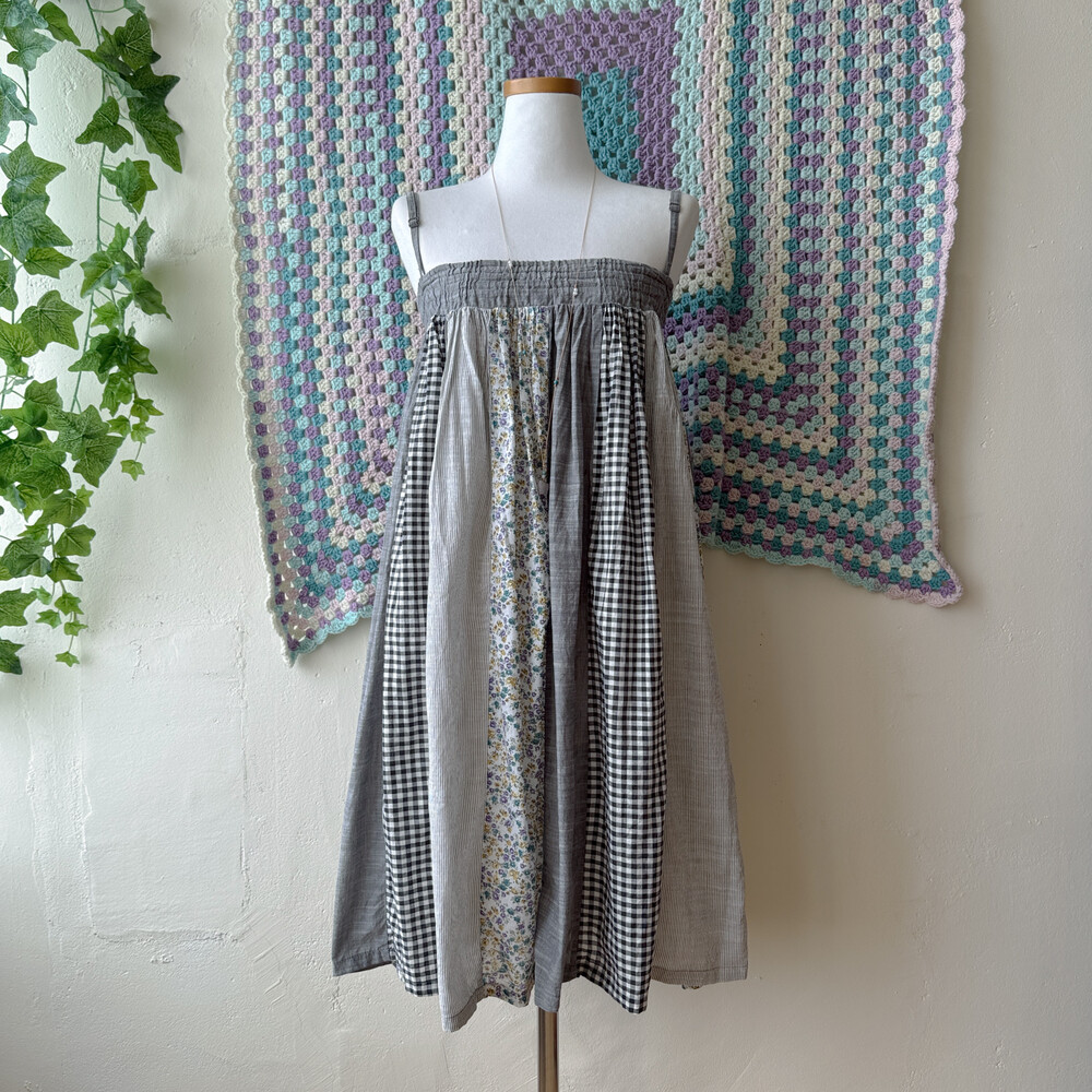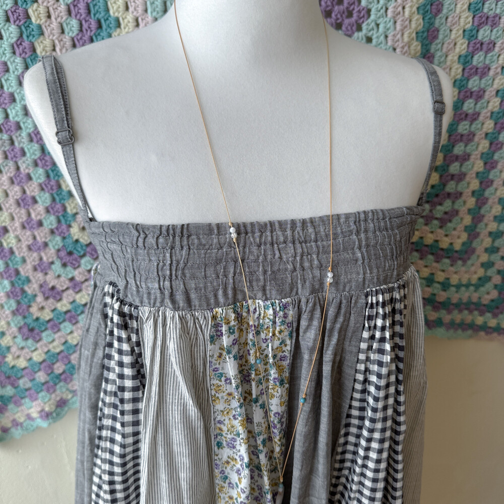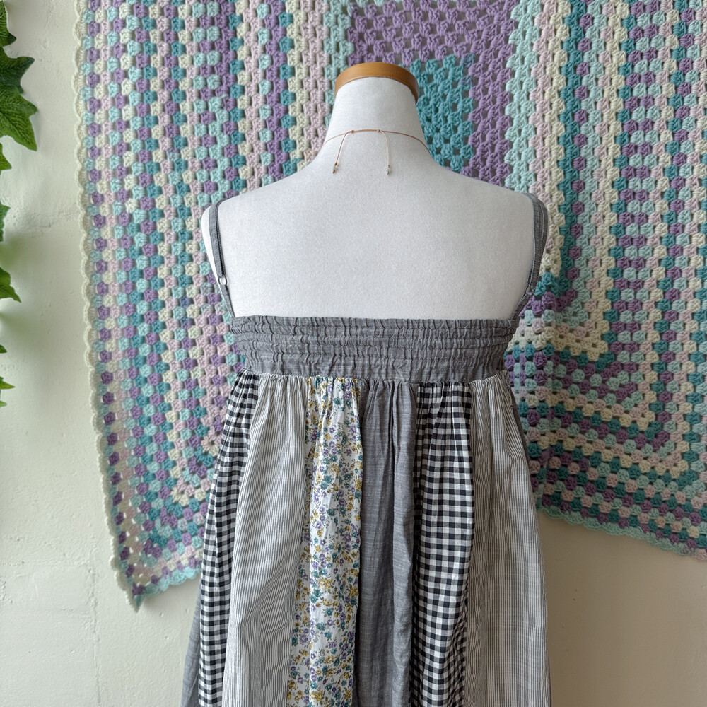 그레이 색감의 세로 패치 끈원피스예요