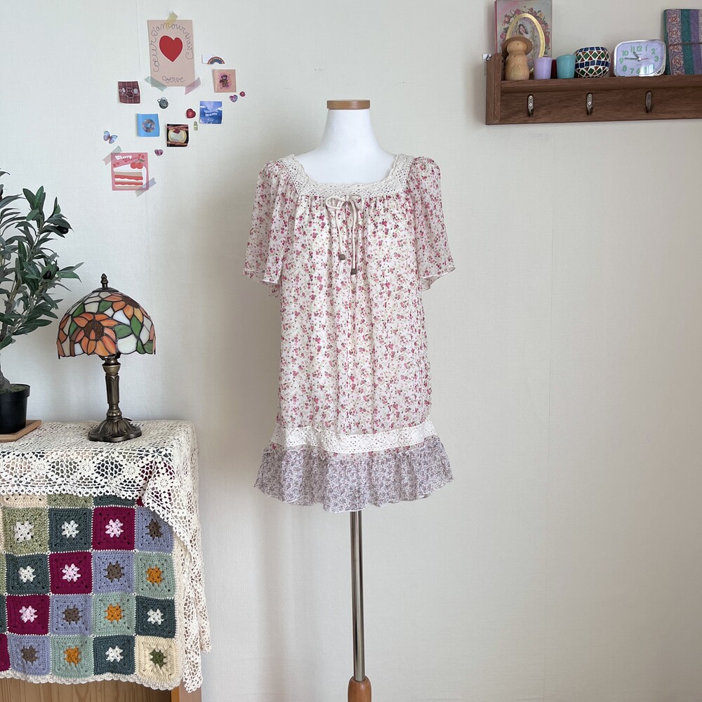 잔꽃 패턴의 쉬폰 튜닉이에요