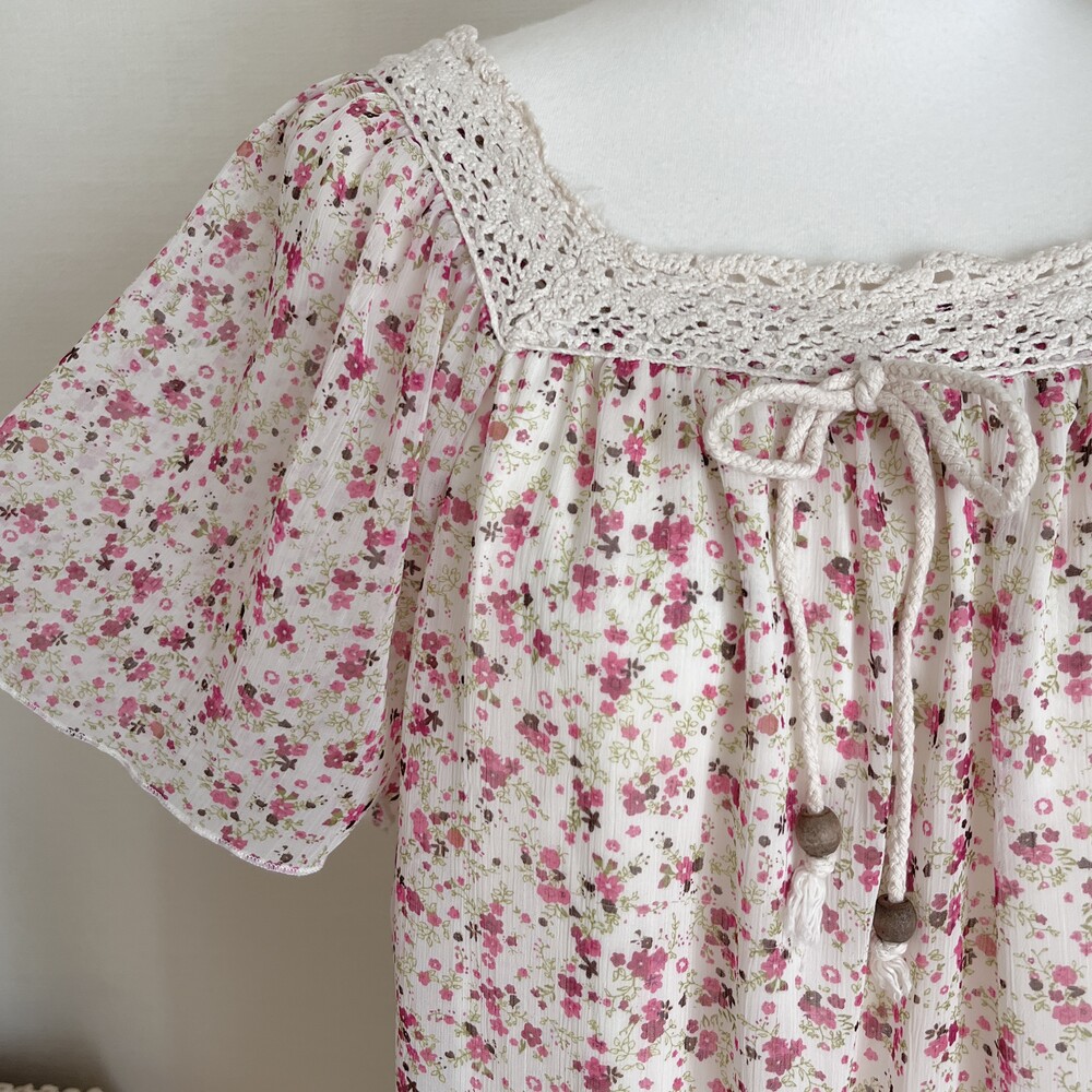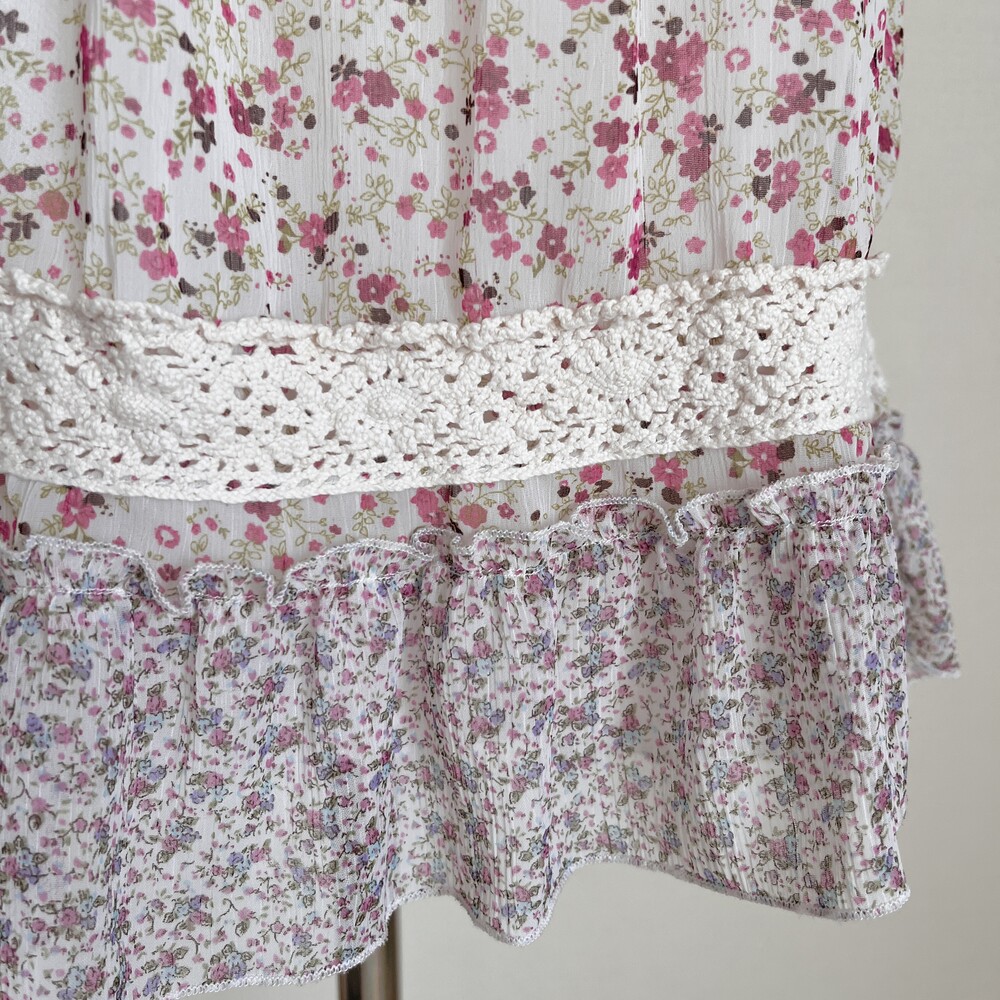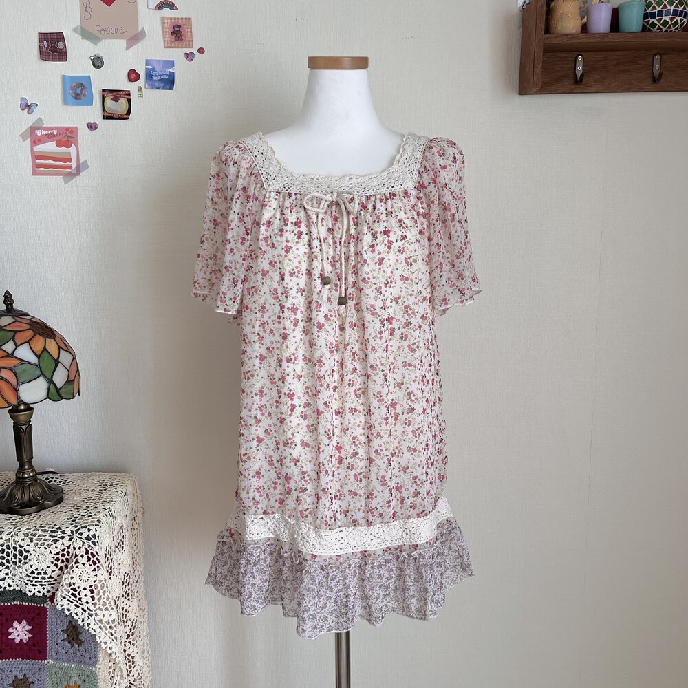 pink&purple mini flower wing chiffon tunic