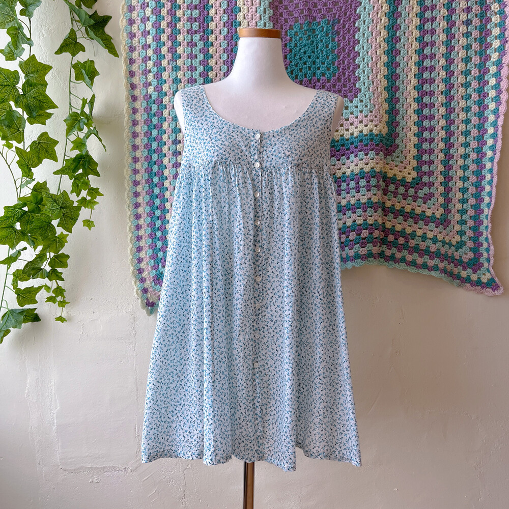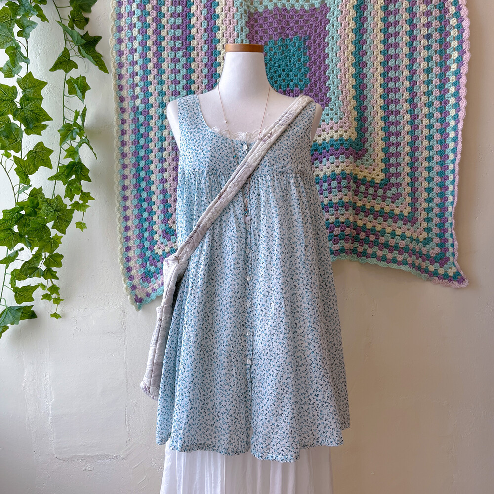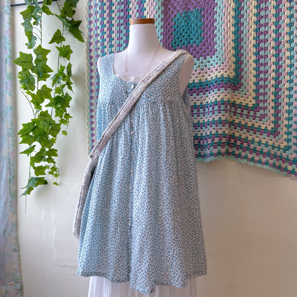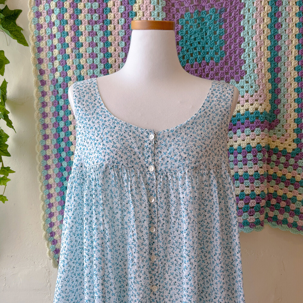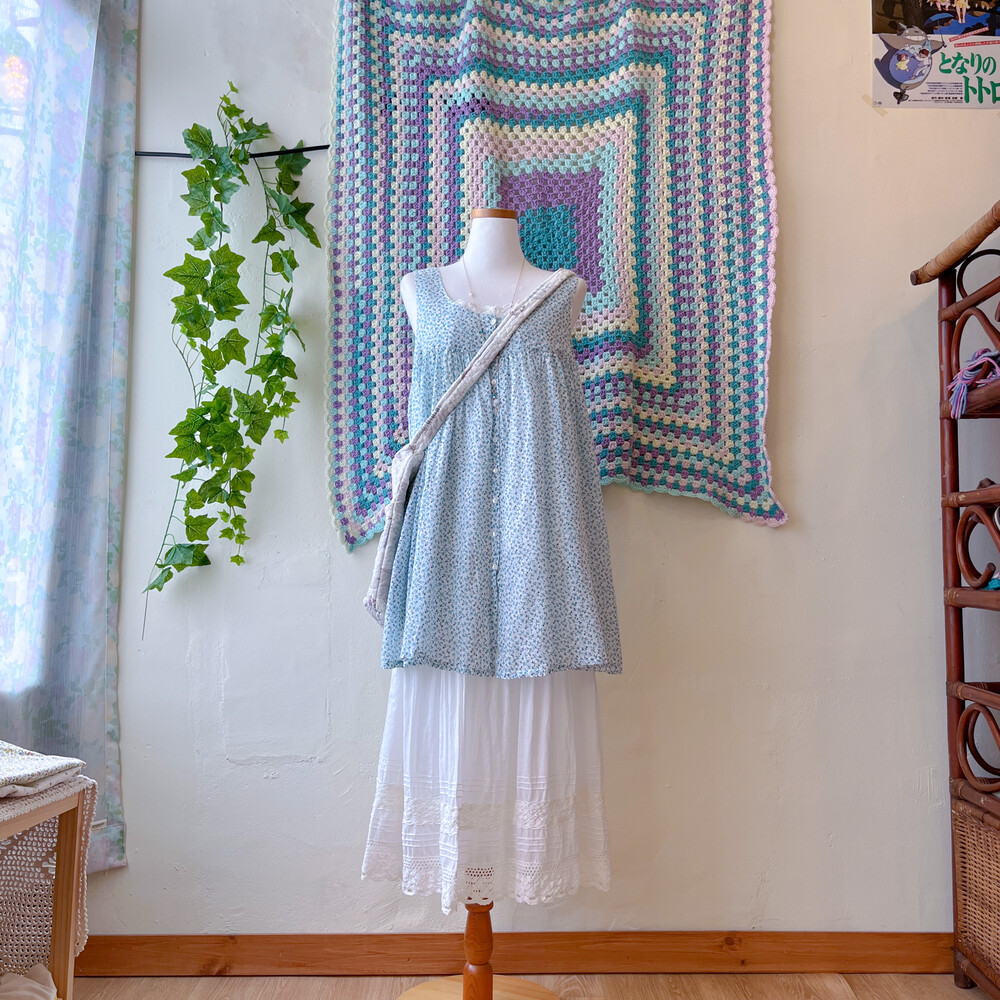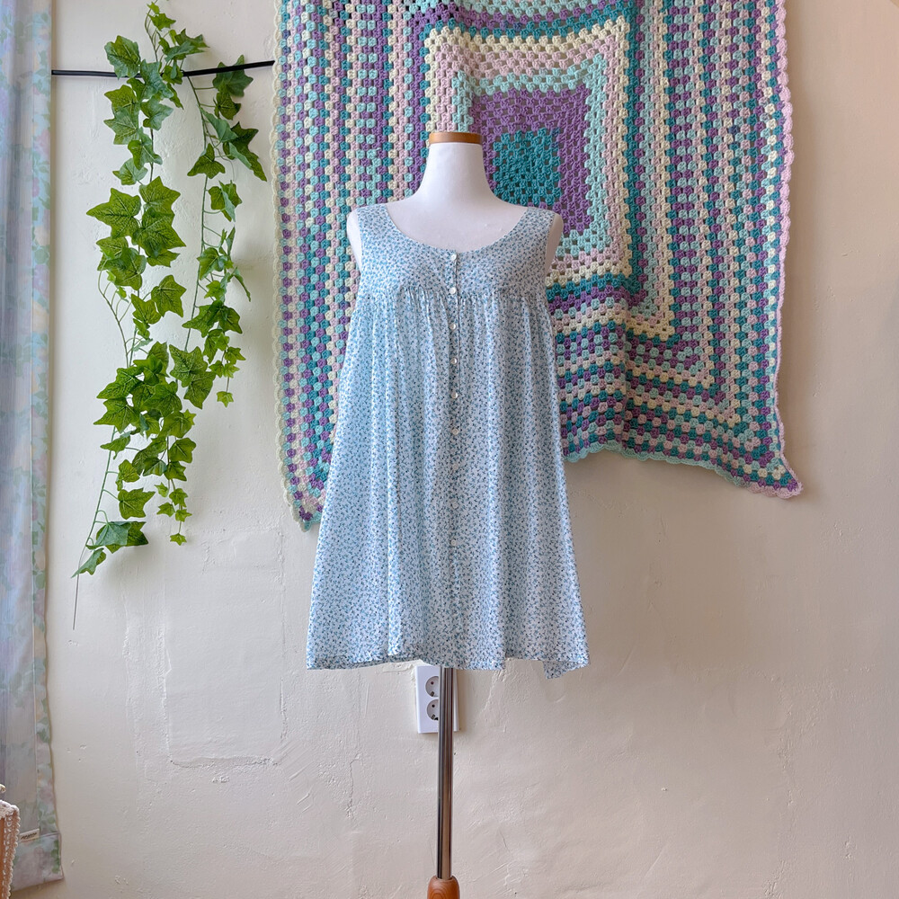 블루 잔꽃 패턴의 민소매 튜닉이에요