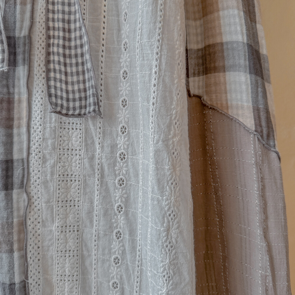 체크와 레이스 디자인의 패치들로 조합되어 있는