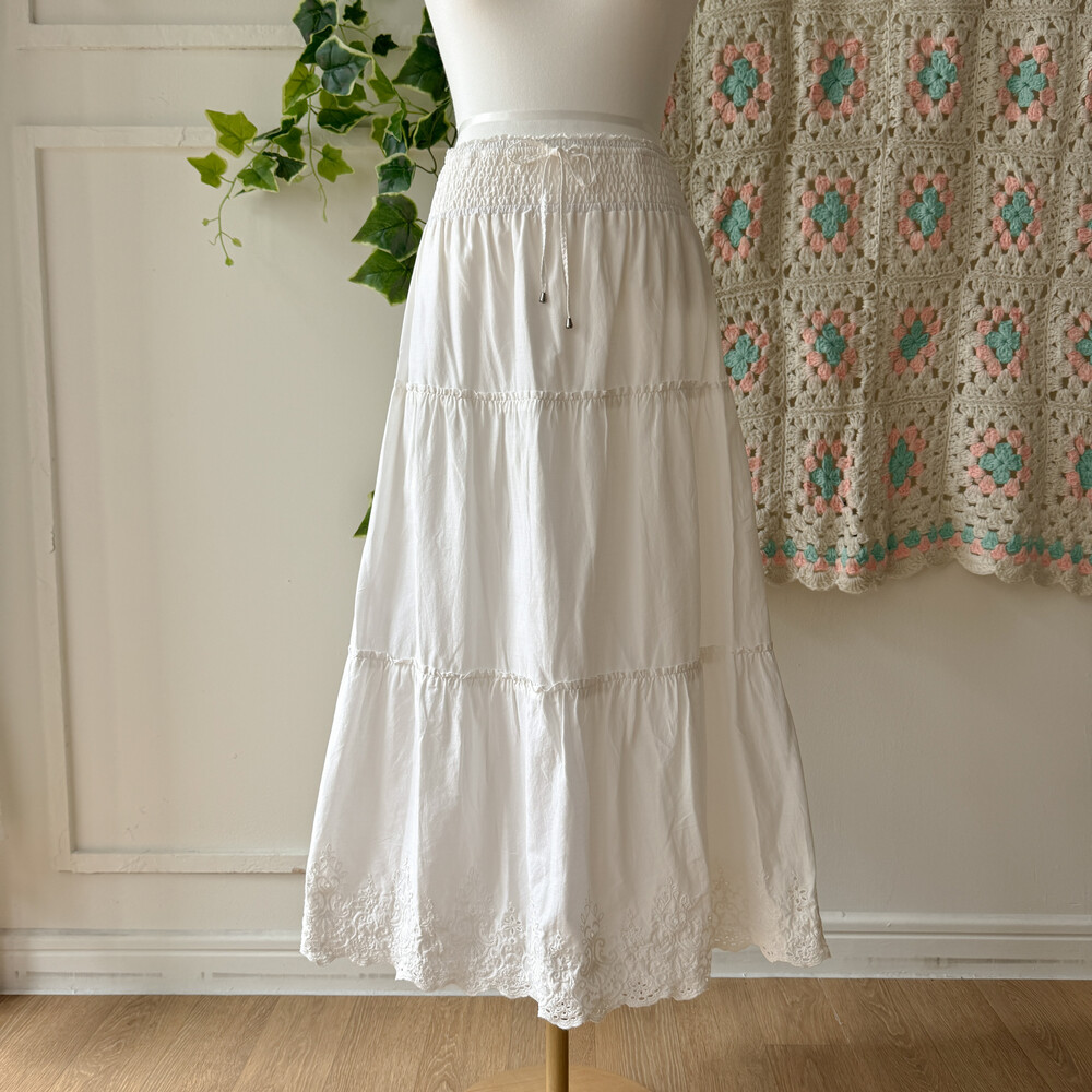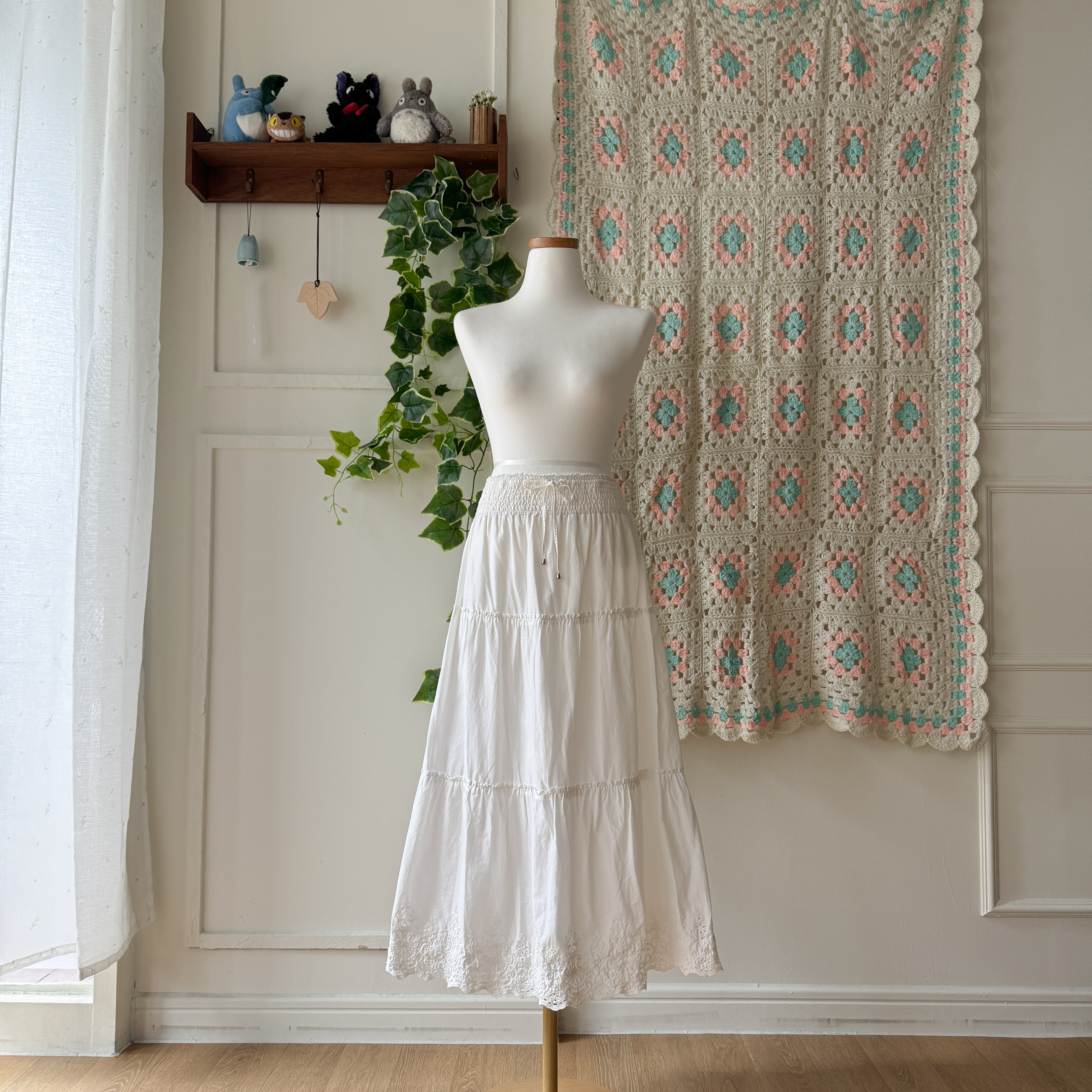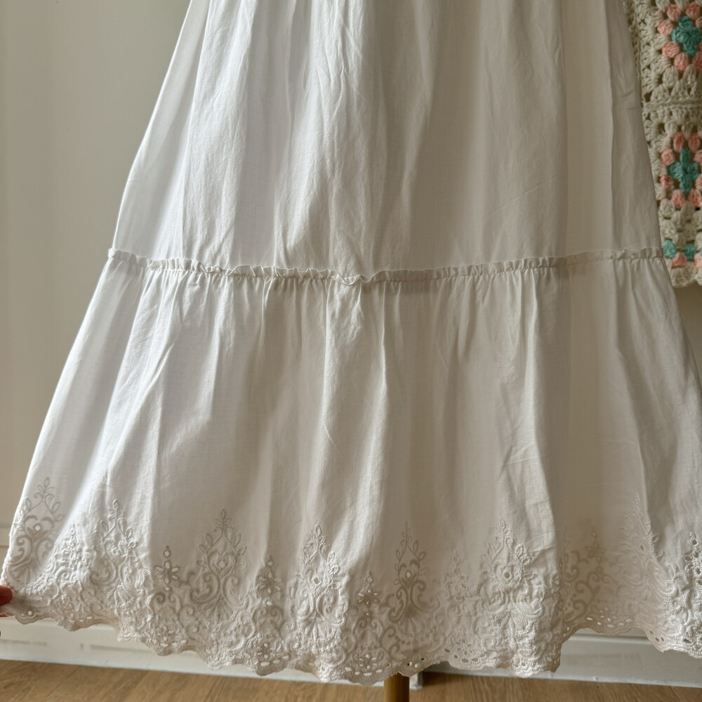 밑단 자수 포인트와 캉캉마다 프릴 디테일 들어가 있어요