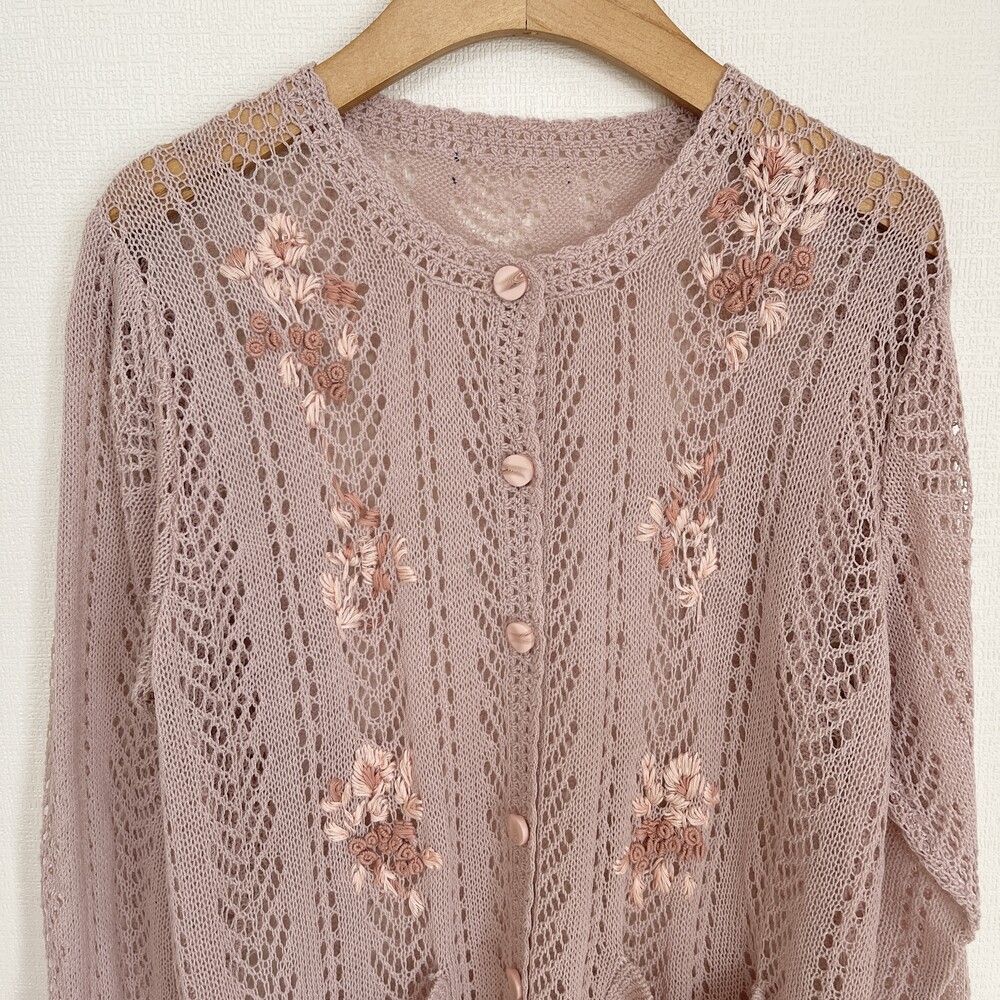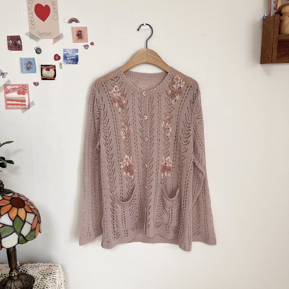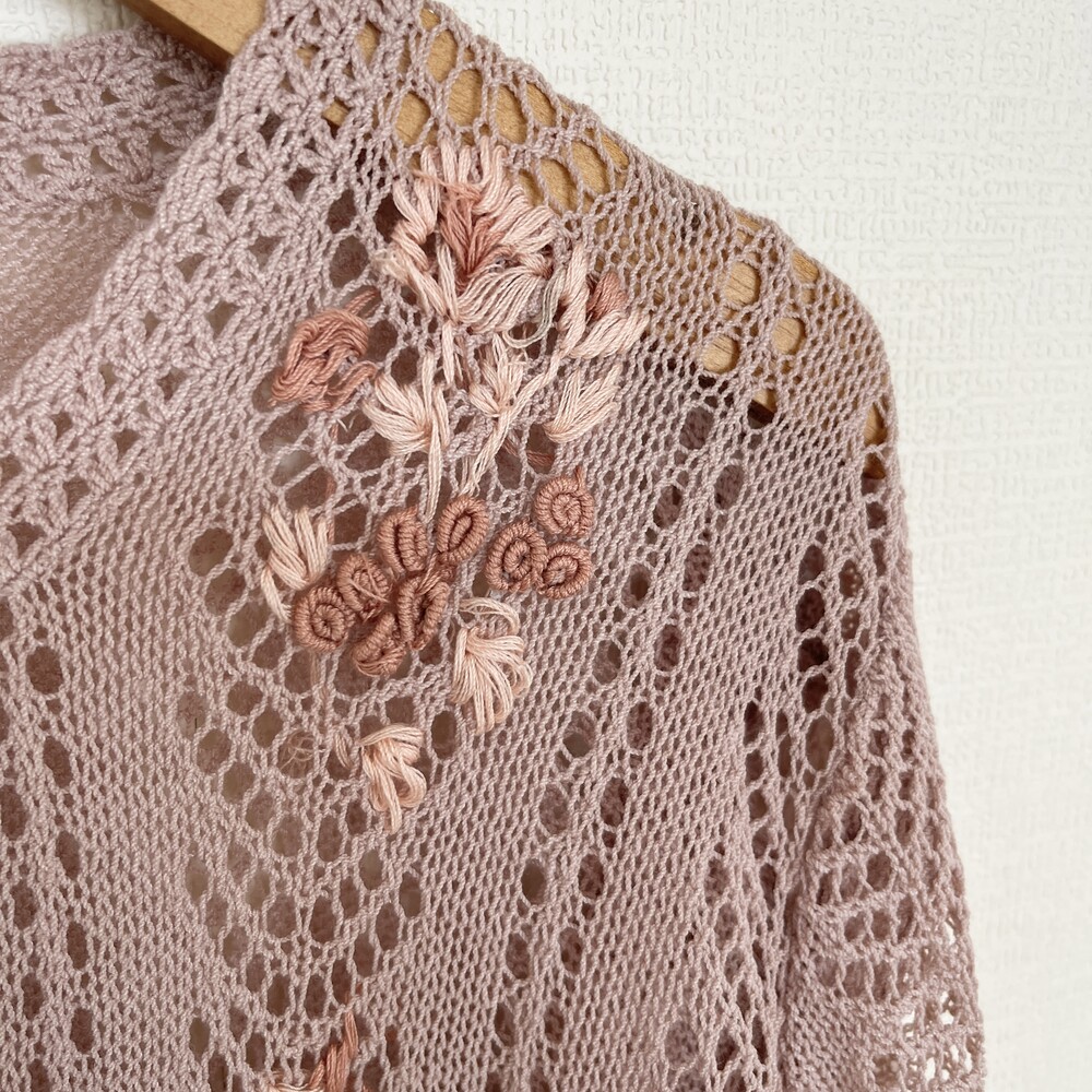 핑크 색감의 꽃자수 크로셰 가디건이에요