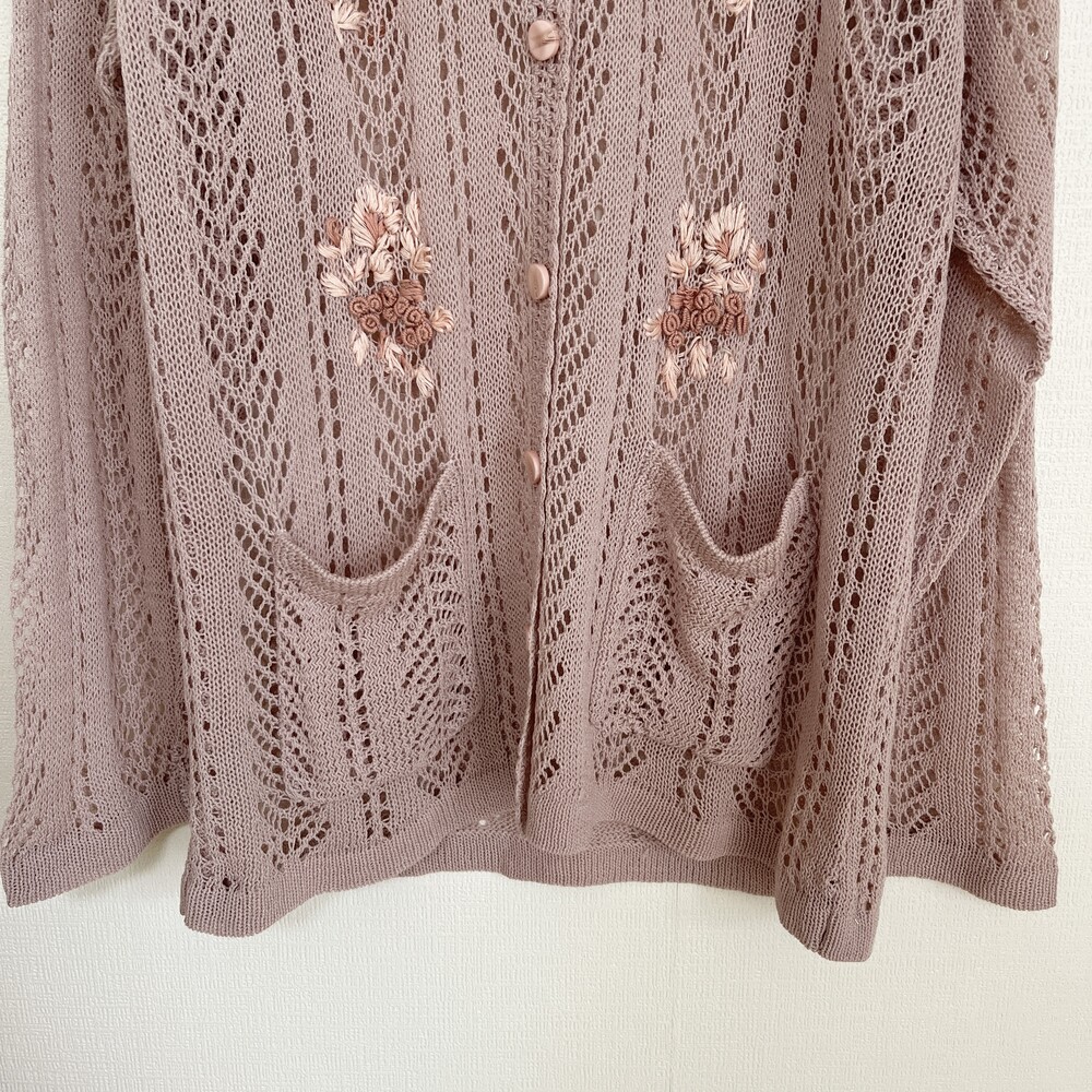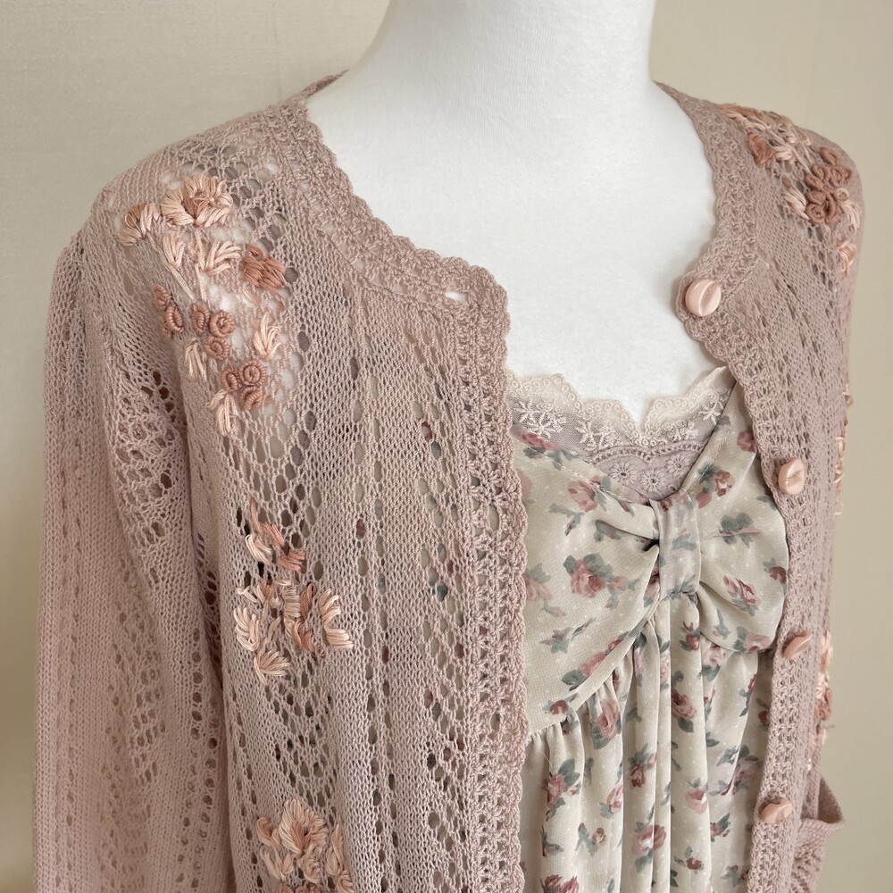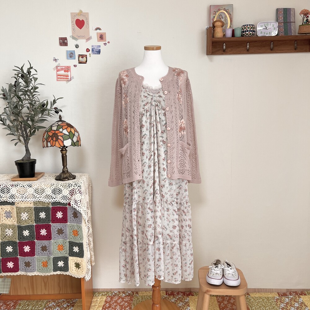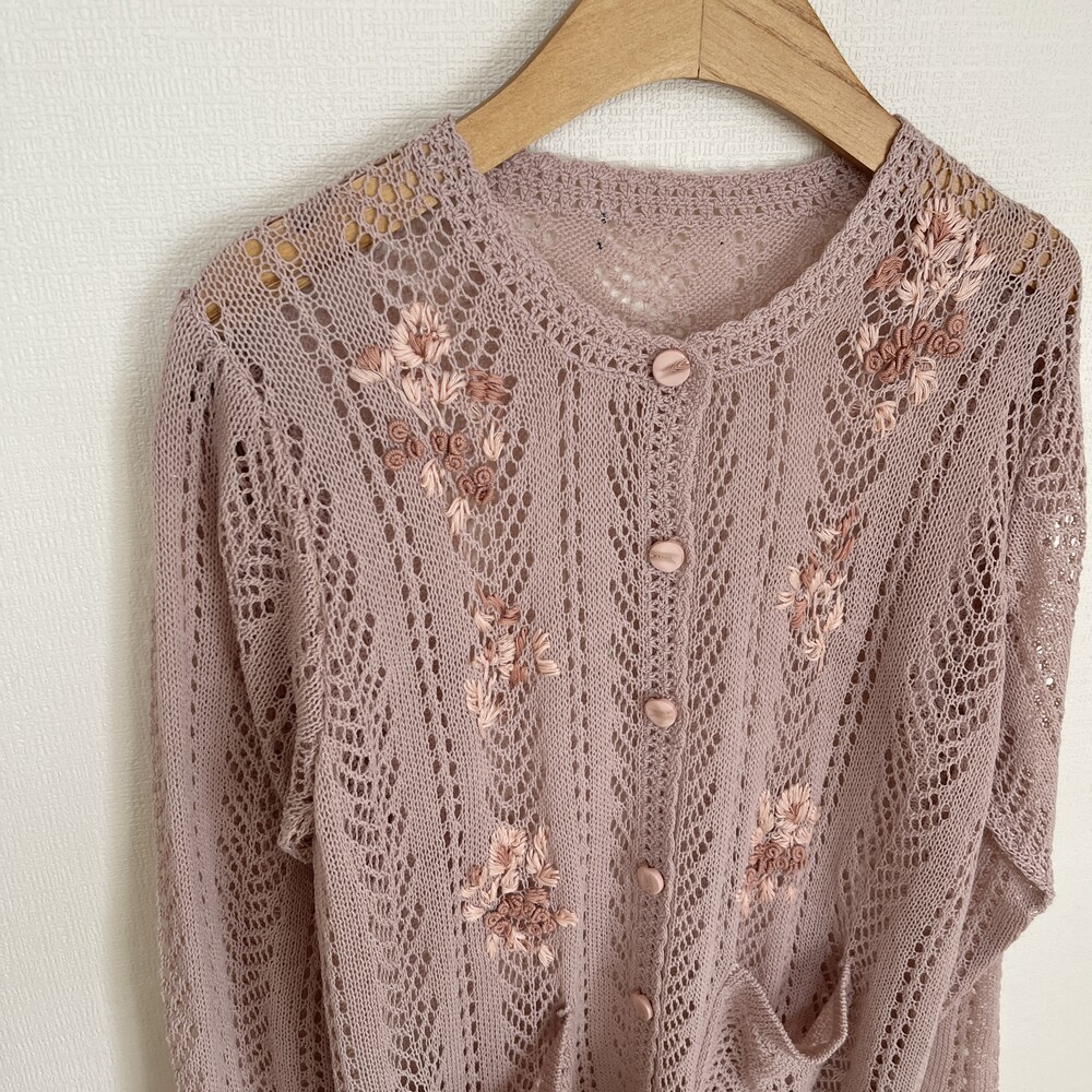 핑크 색감의 꽃자수 크로셰 가디건이에요