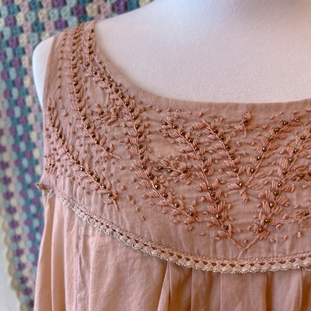 인디핑크 색감의 자수, 비즈 블라우스예요