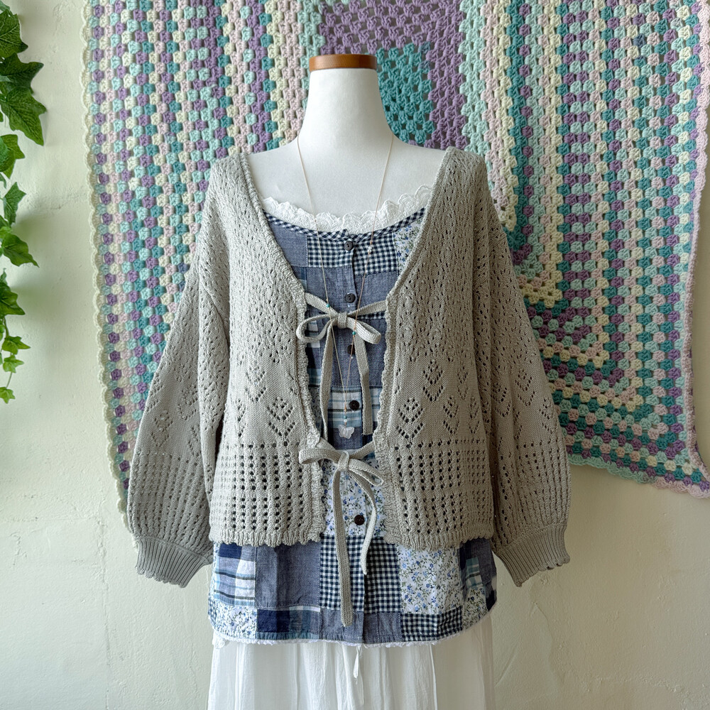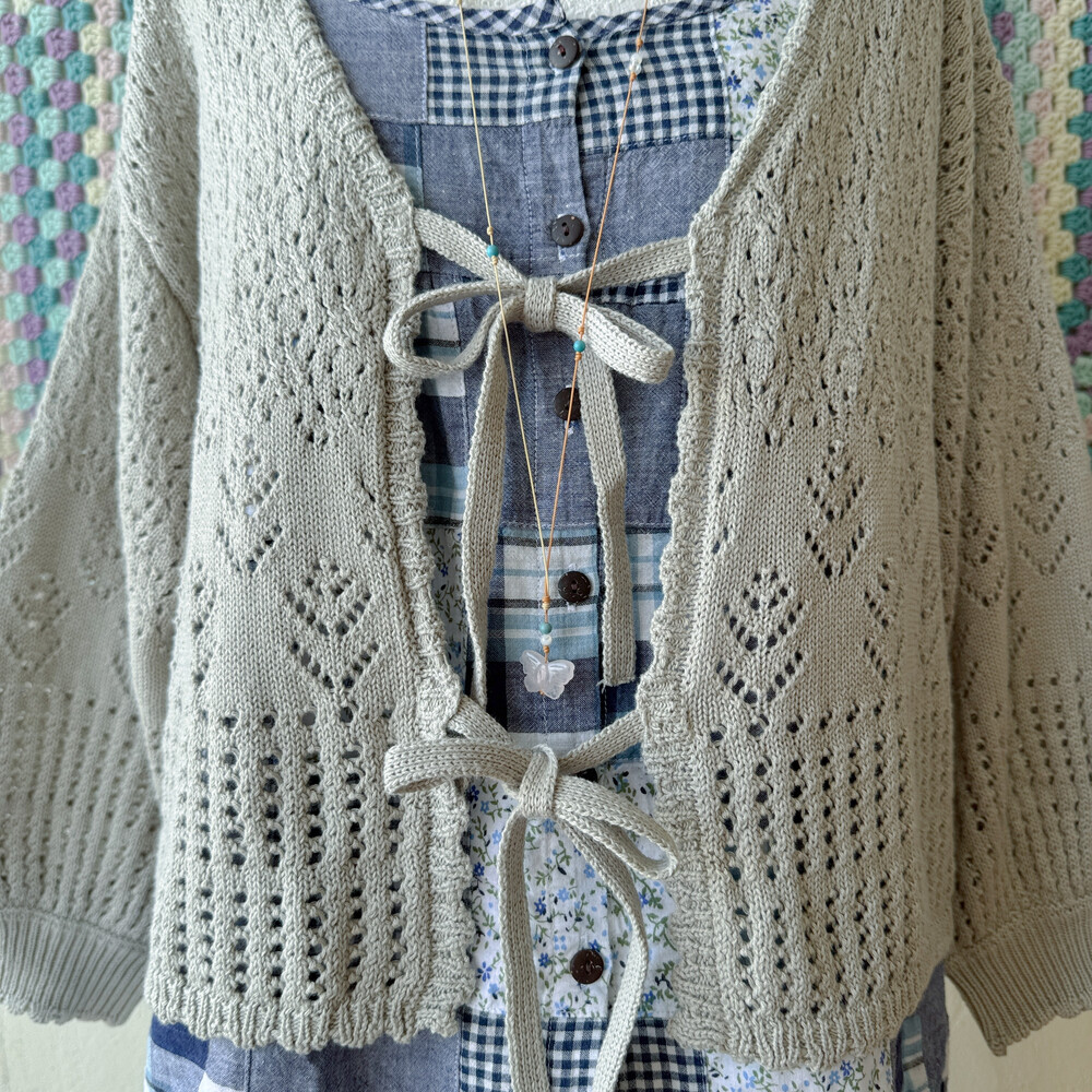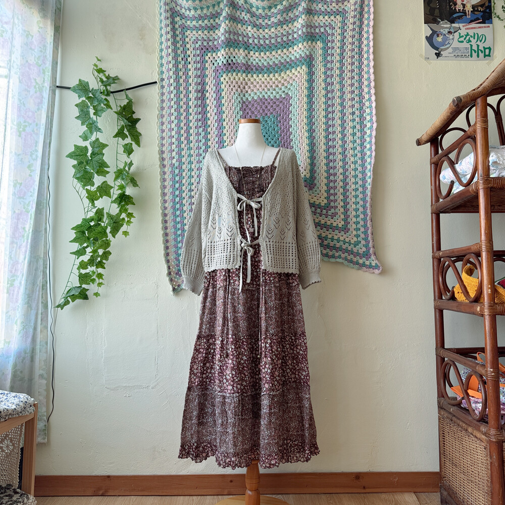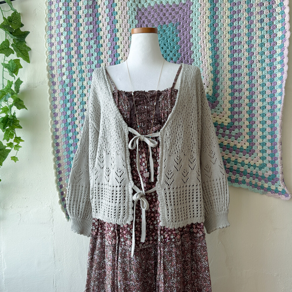 연카키 색감의 펀칭 크로셰 가디건이에요