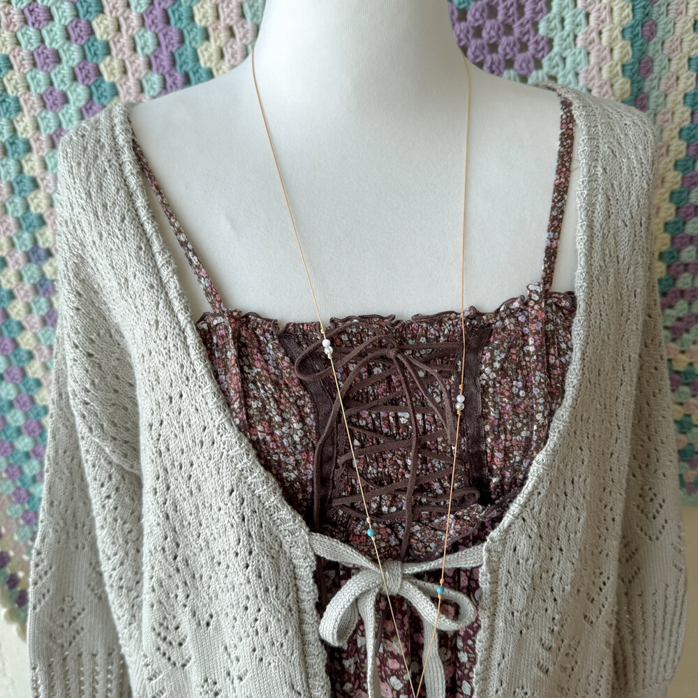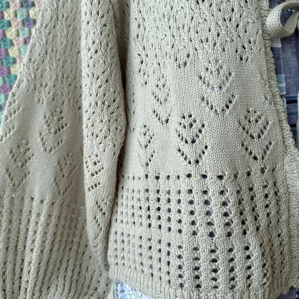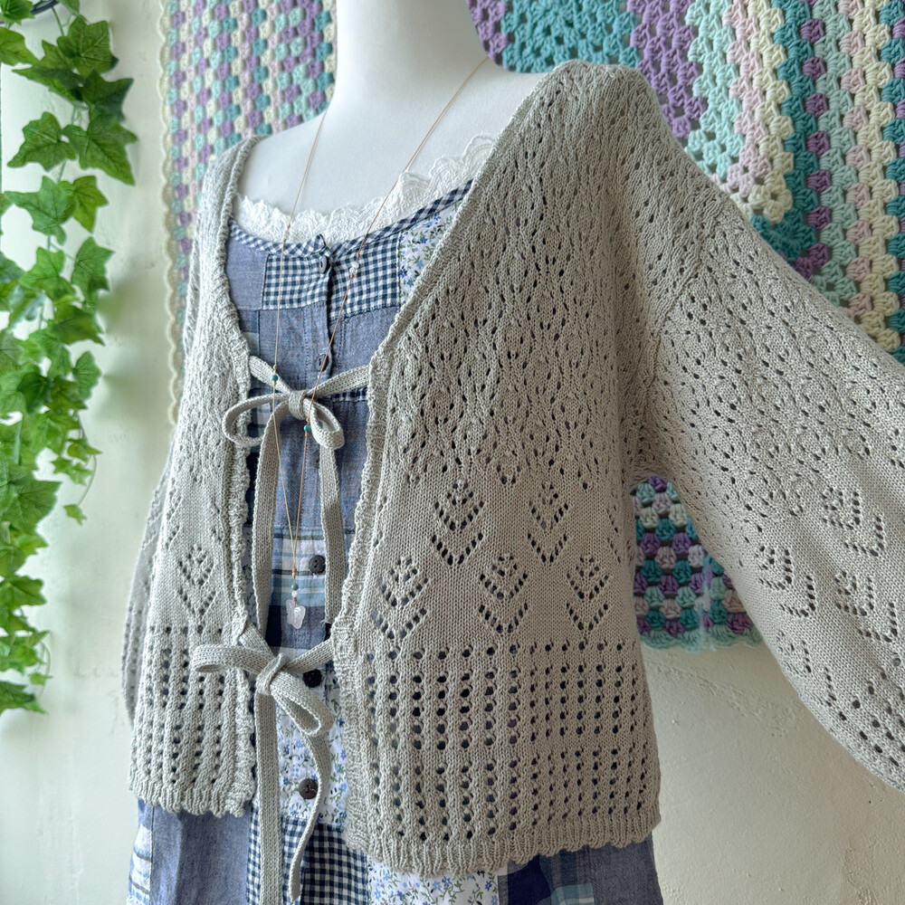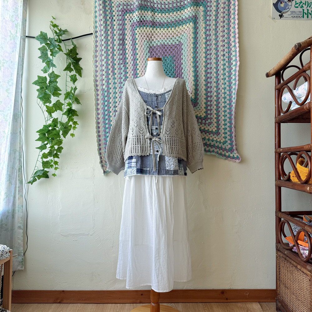 연카키 색감의 펀칭 크로셰 가디건이에요