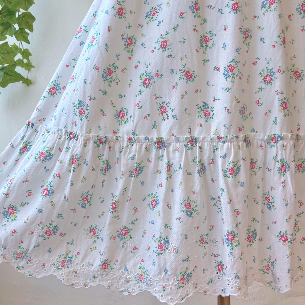 blue&pink flower hemline punching ops