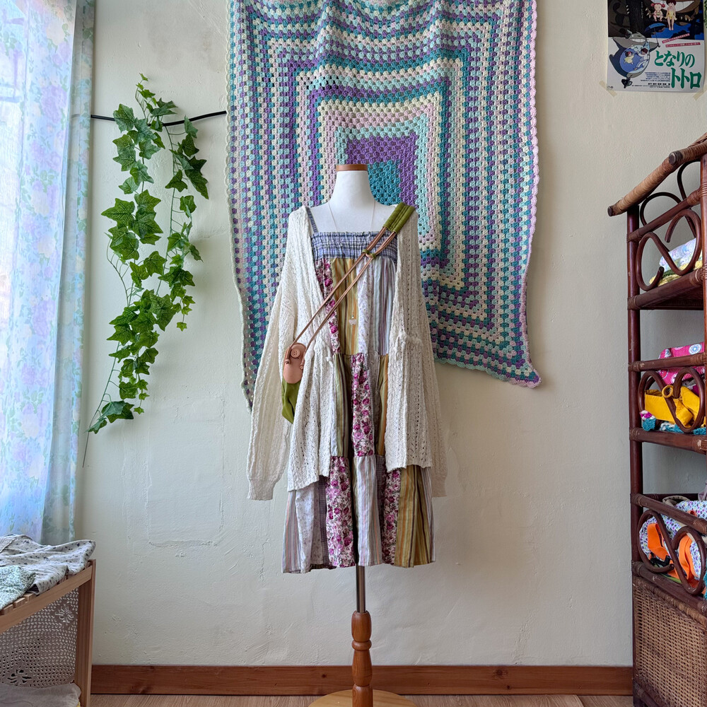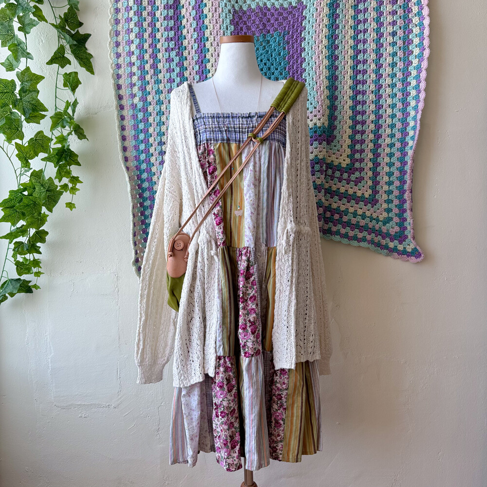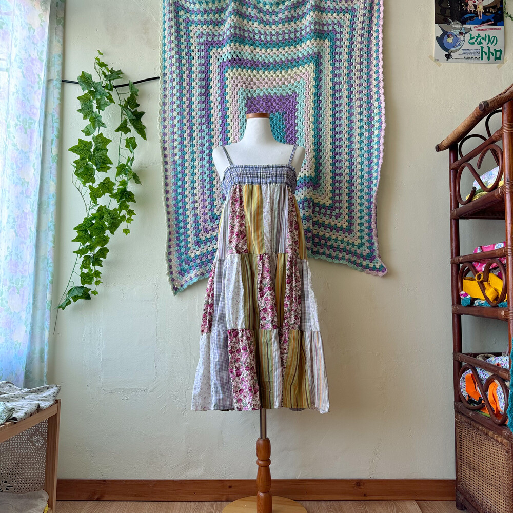 모리모리한 분위기의 패치워크 코튼 끈원피스예요