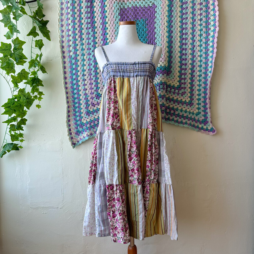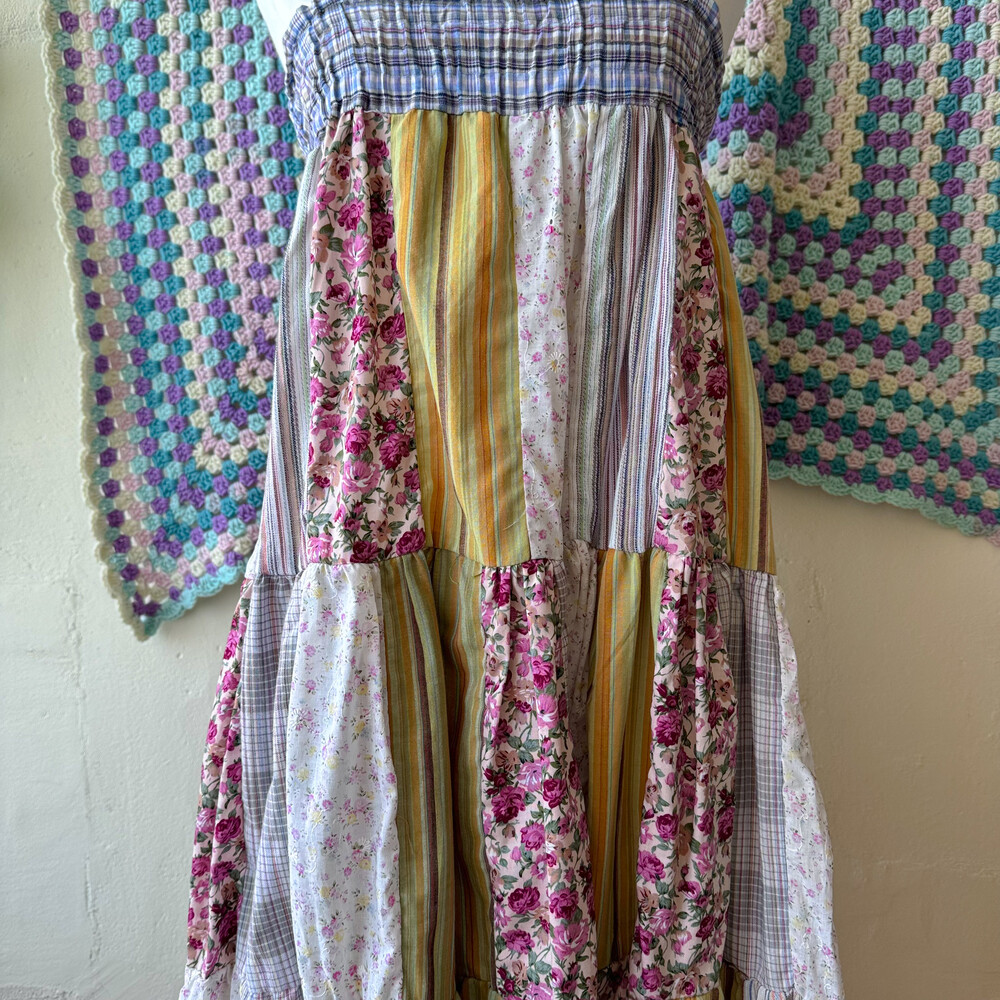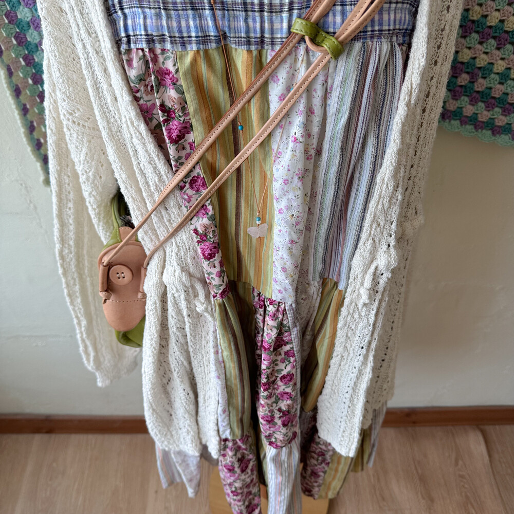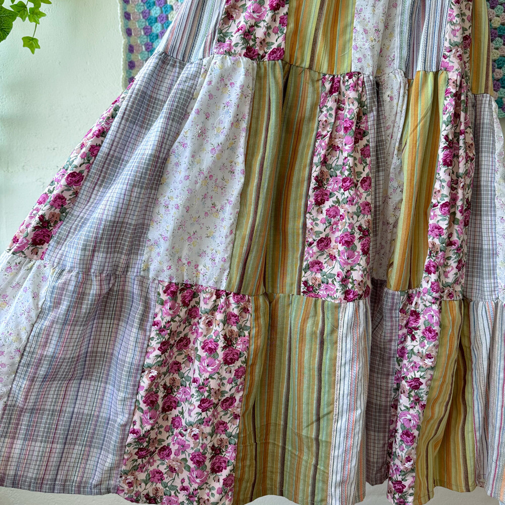 모리모리한 분위기의 패치워크 코튼 끈원피스예요