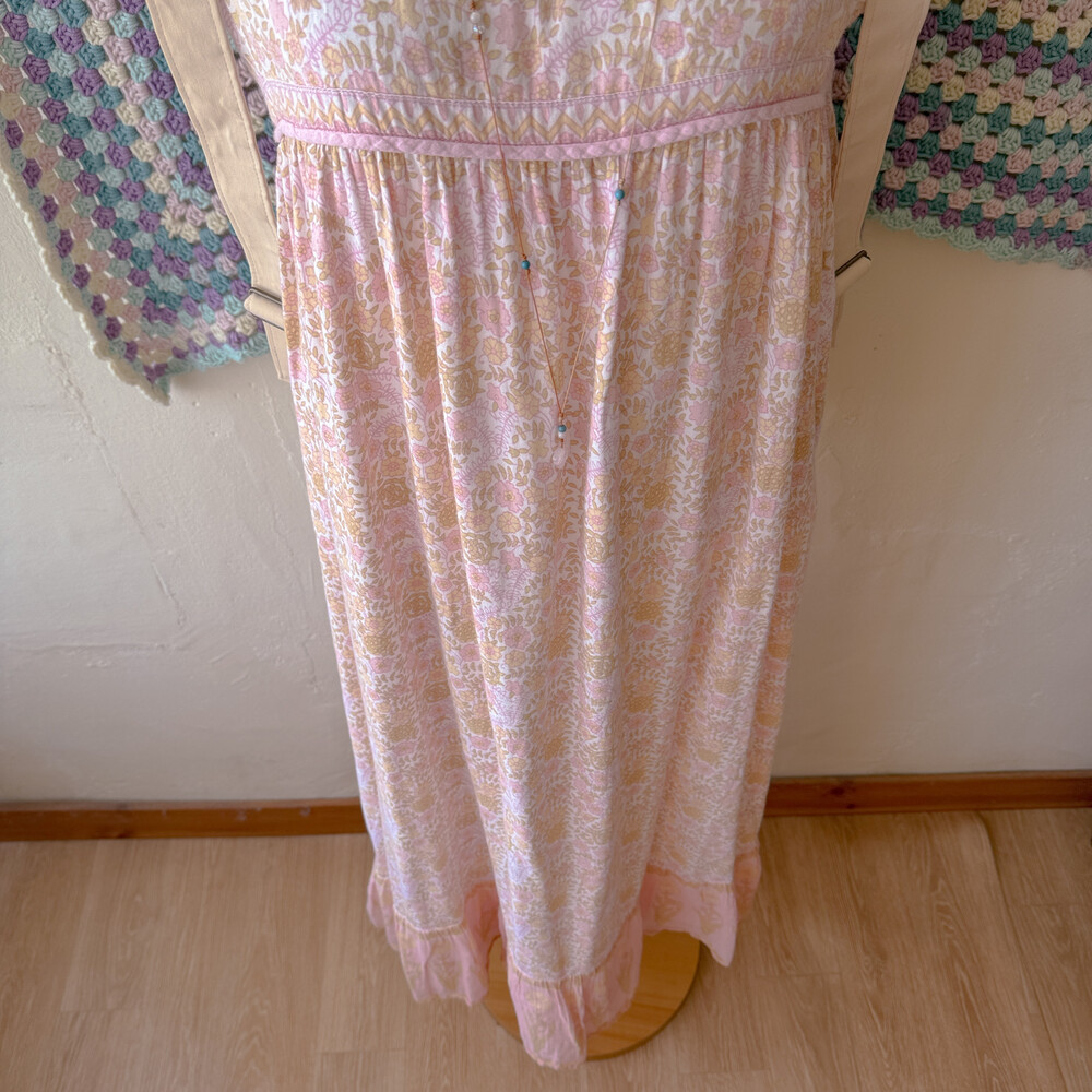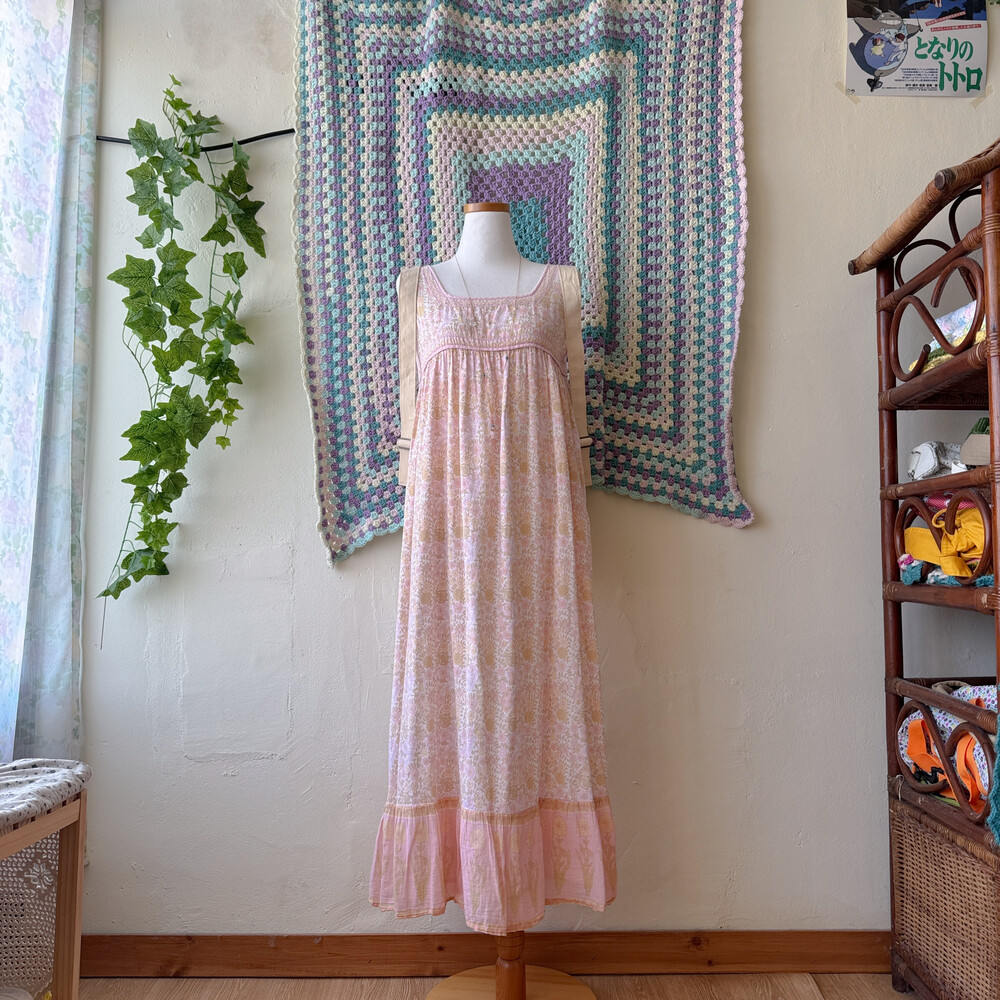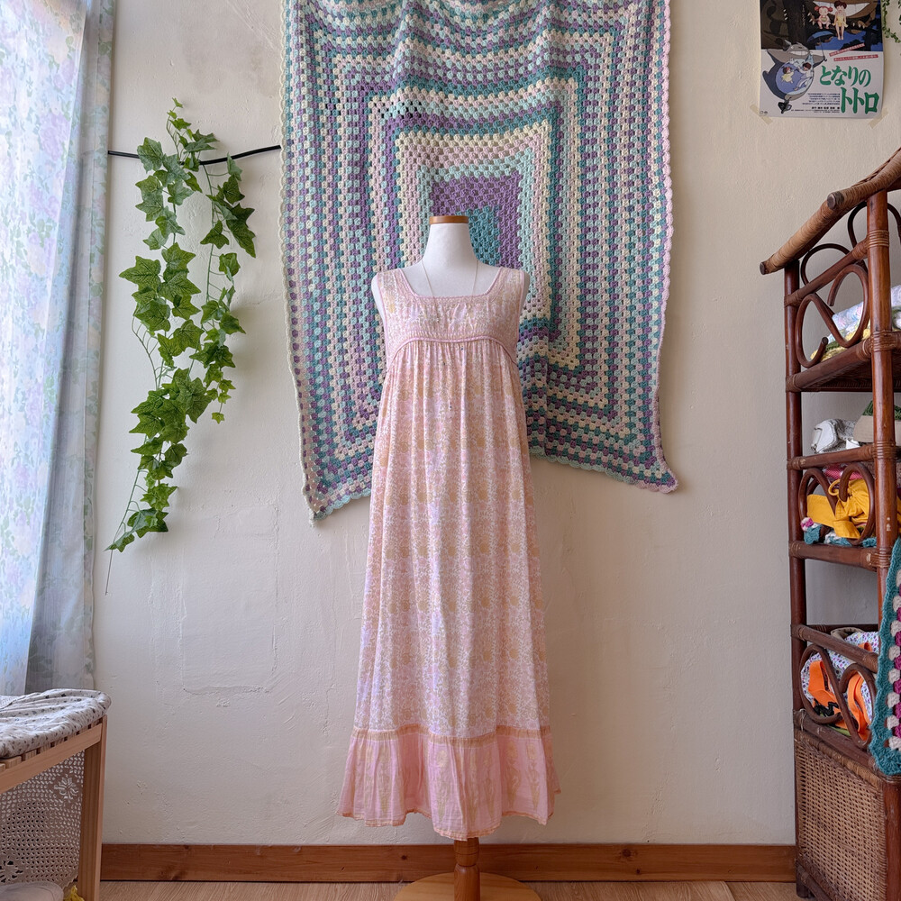 핑크 색감의 민소매 꽃무늬 롱원피스예요