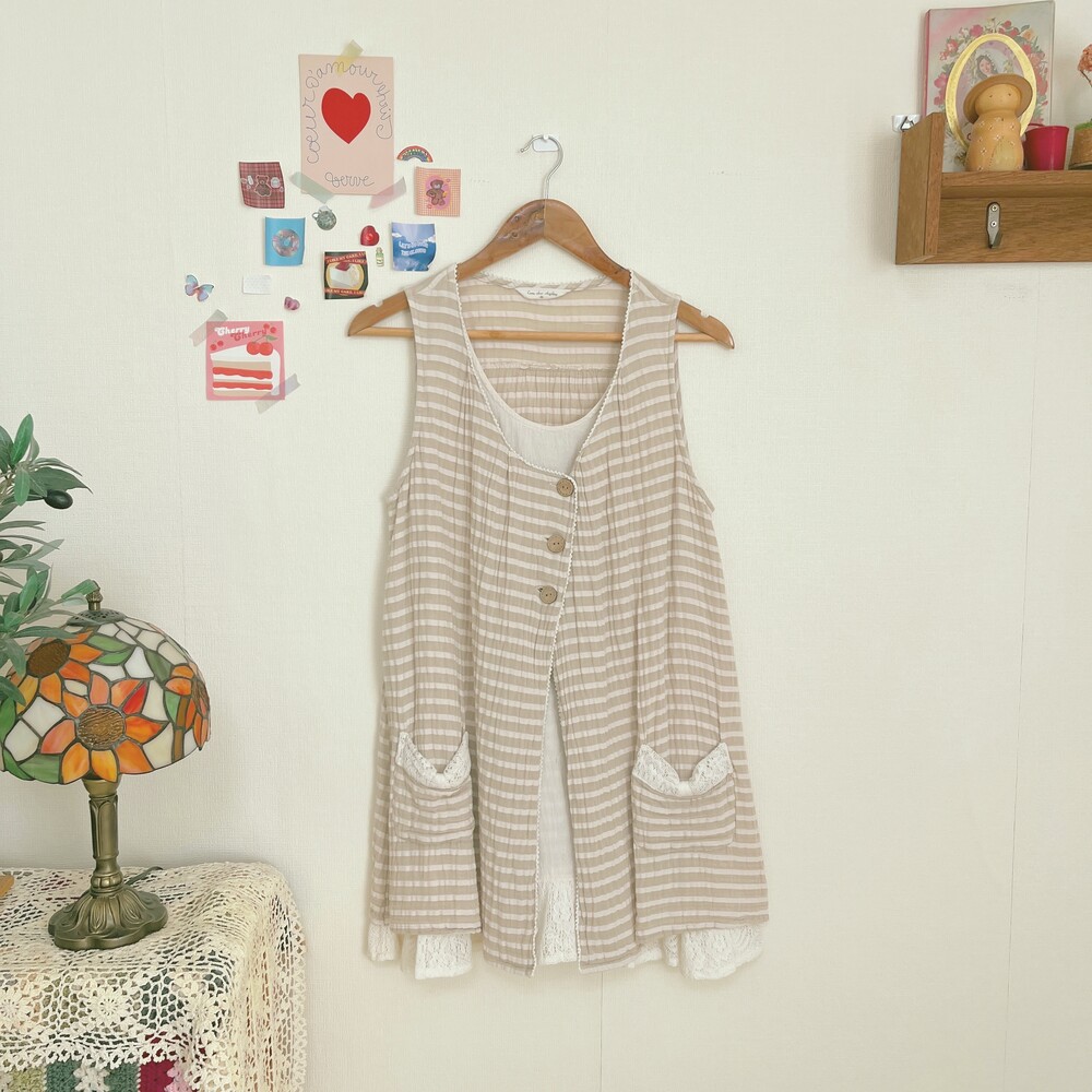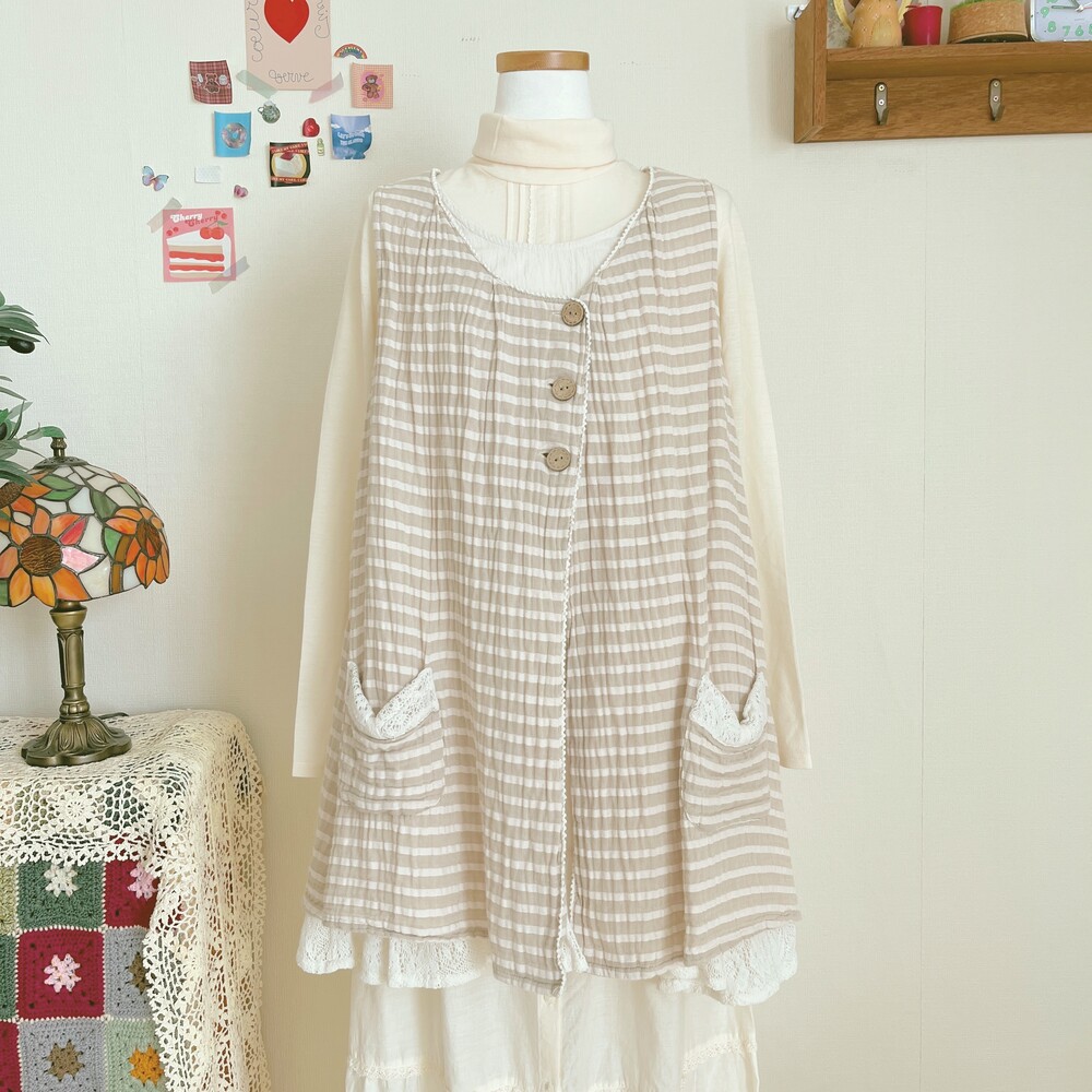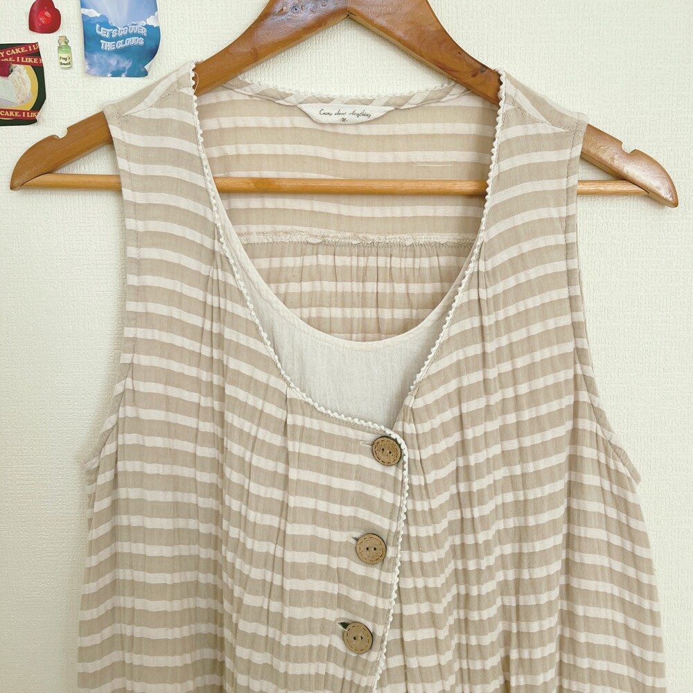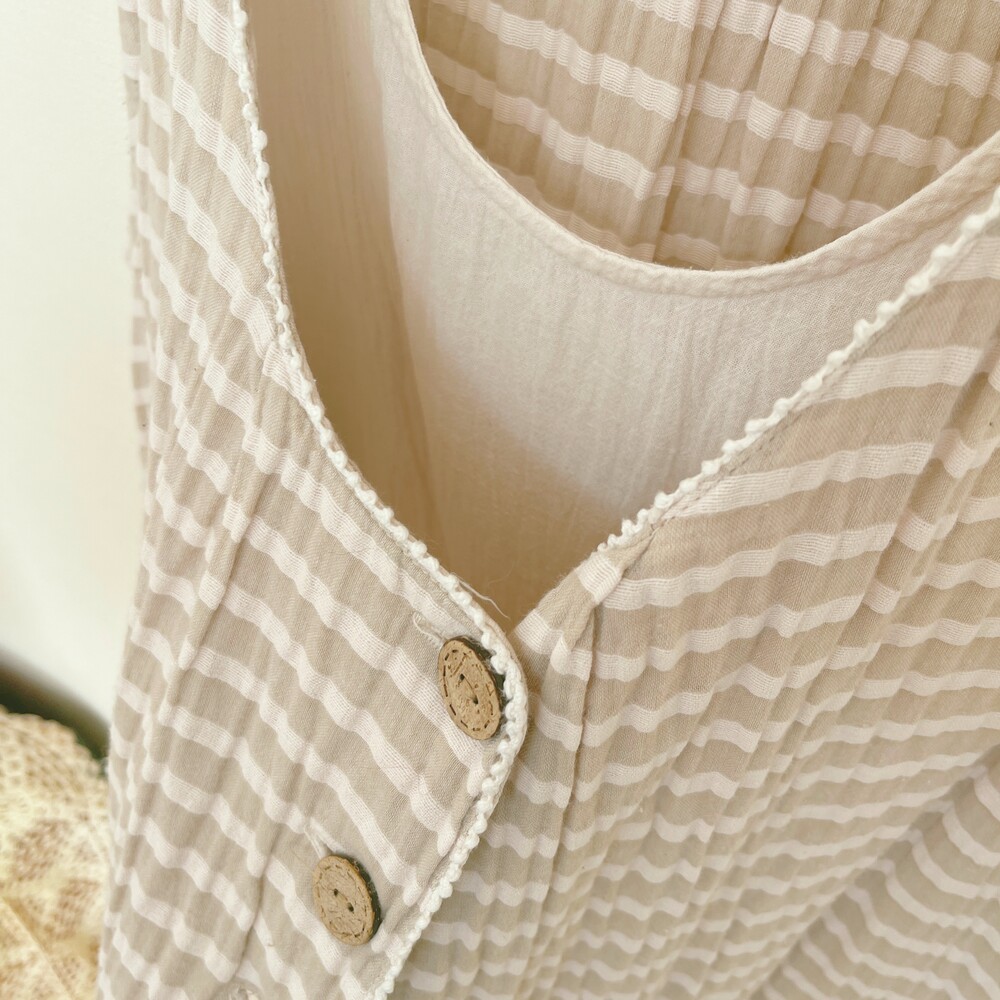 light beige stripe wood button layered tunic