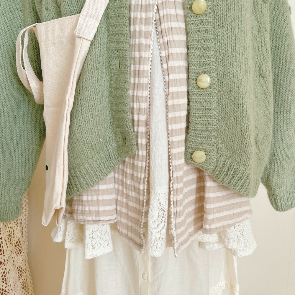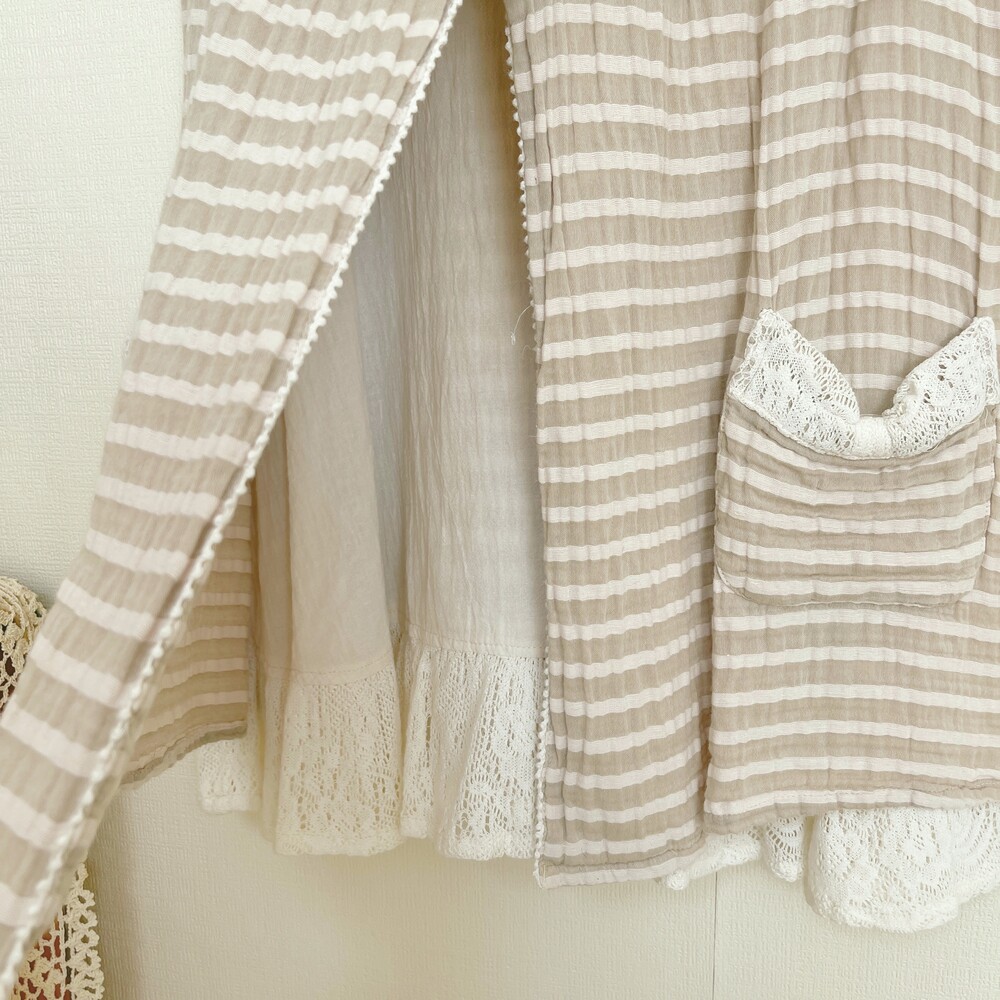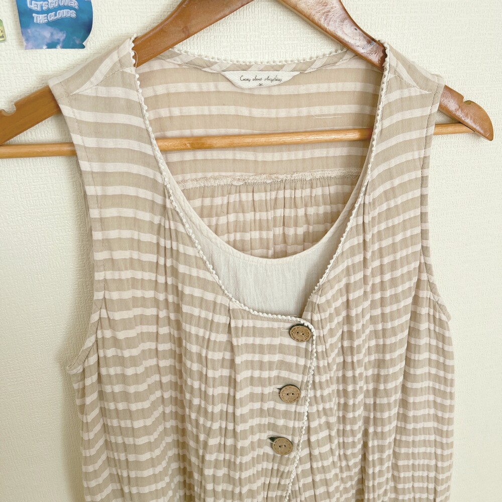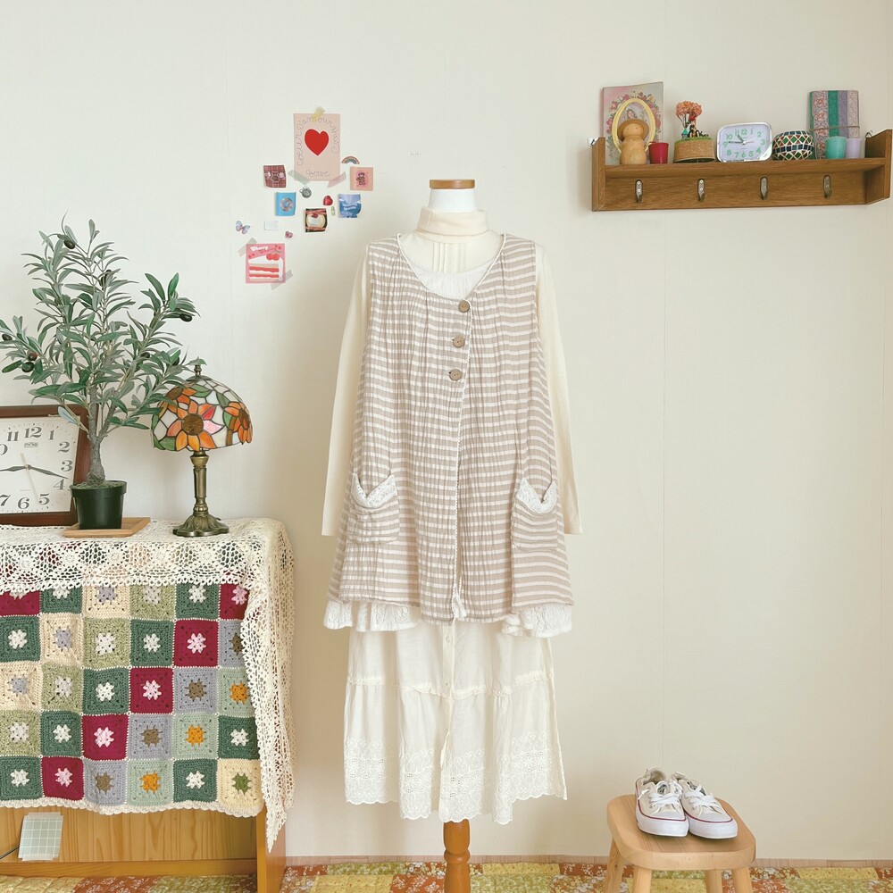 light beige stripe wood button layered tunic