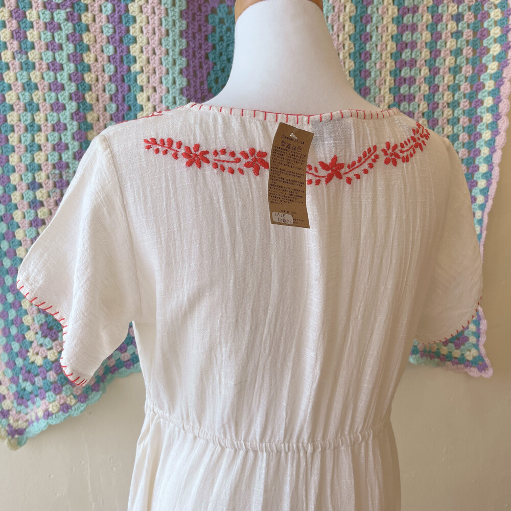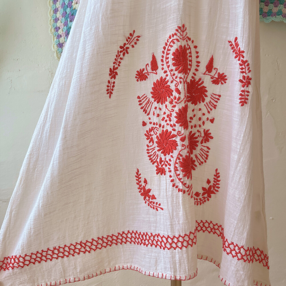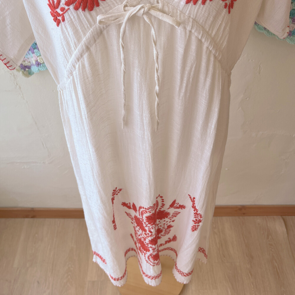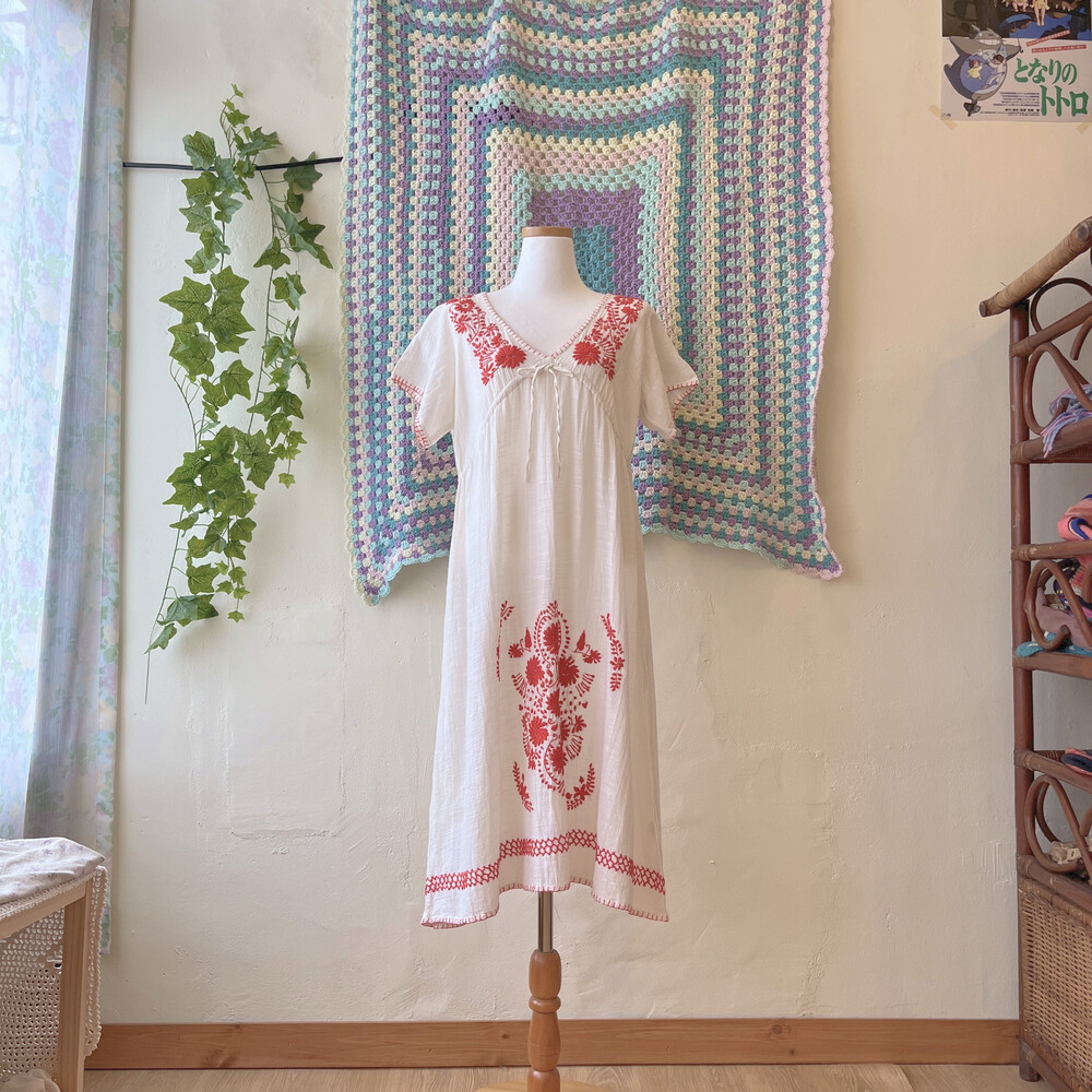 레드 플라워 자수 포인트의 코튼 원피스예요
