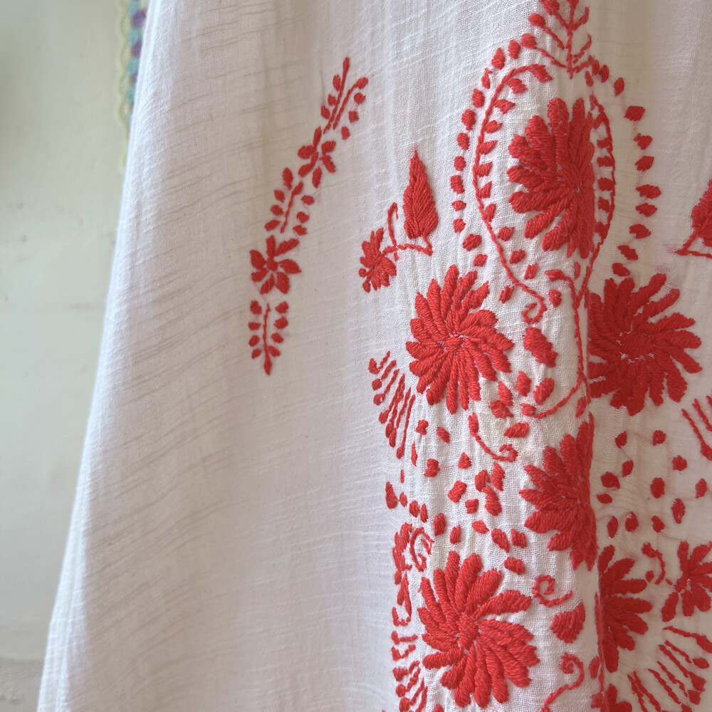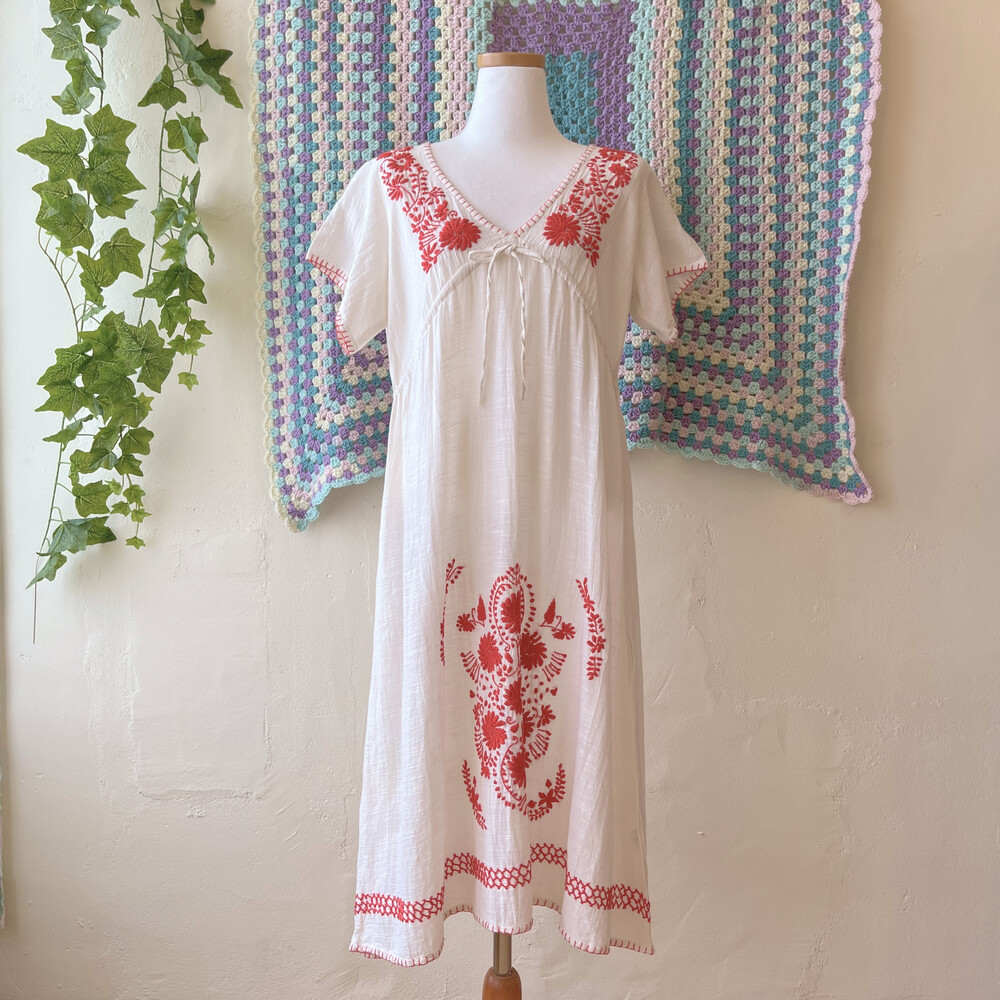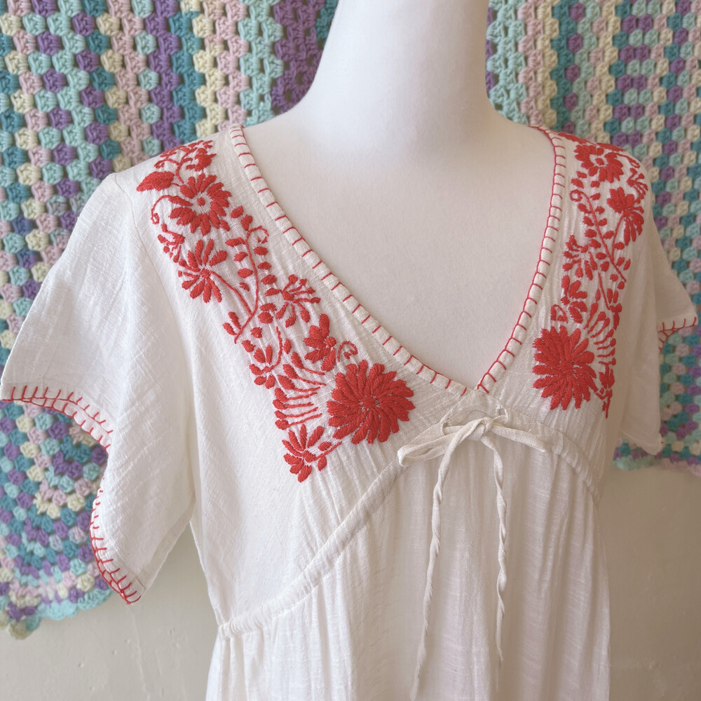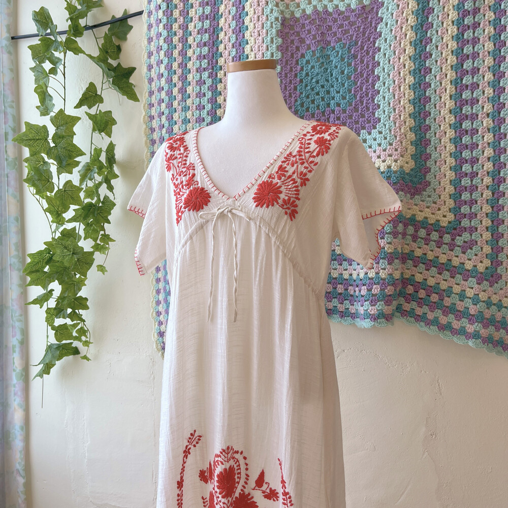 레드 플라워 자수 포인트의 코튼 원피스예요