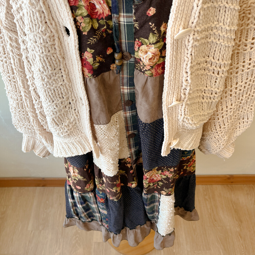 코튼 소재가 베이스구요, 코듀로이 등의 겨울느낌 텍스처 패치들이