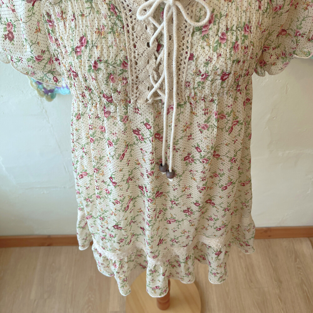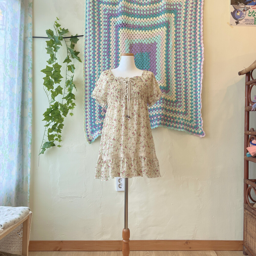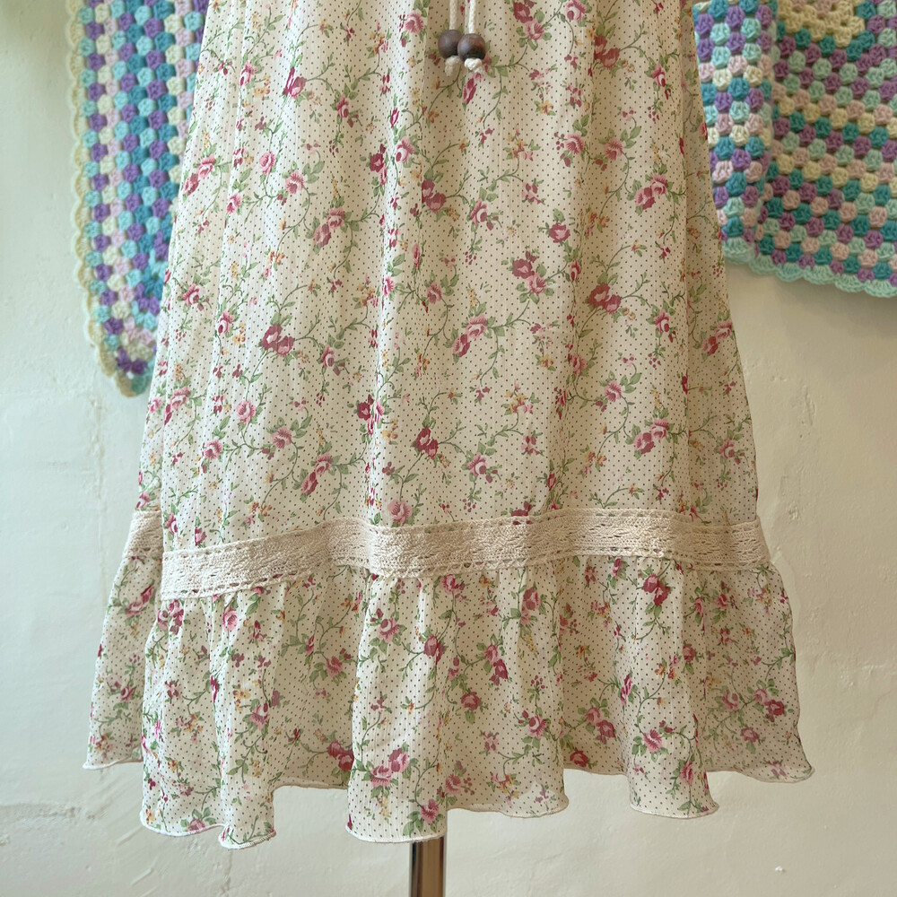 beige flower&eyelet chiffon mini ops