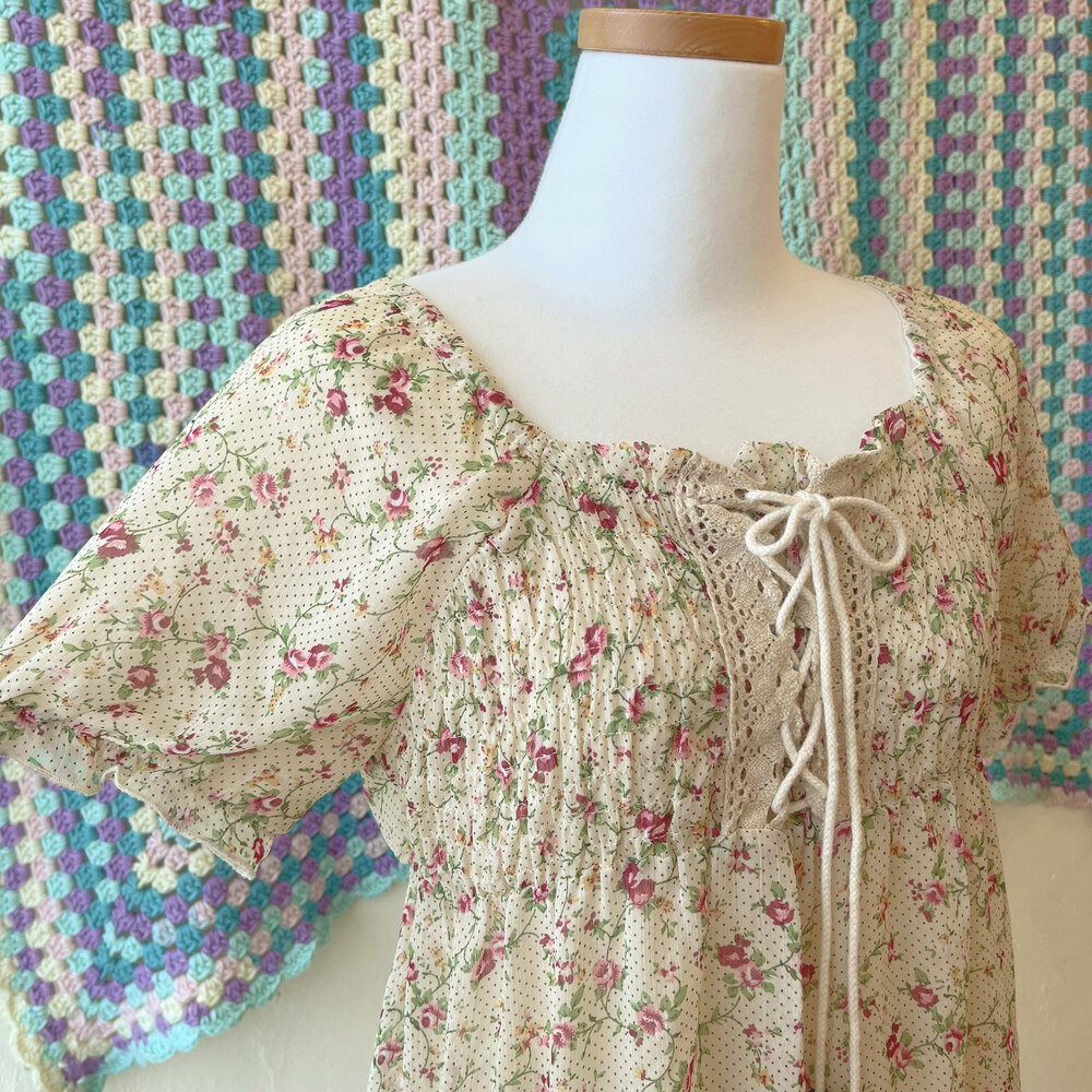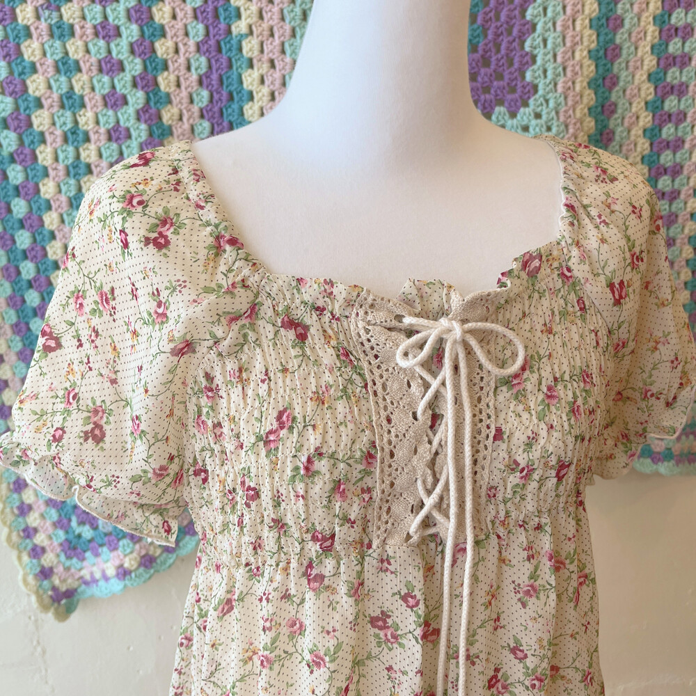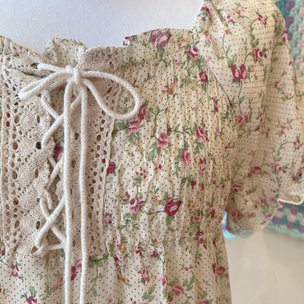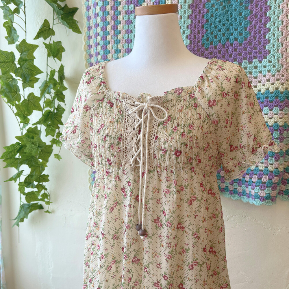 beige flower&eyelet chiffon mini ops