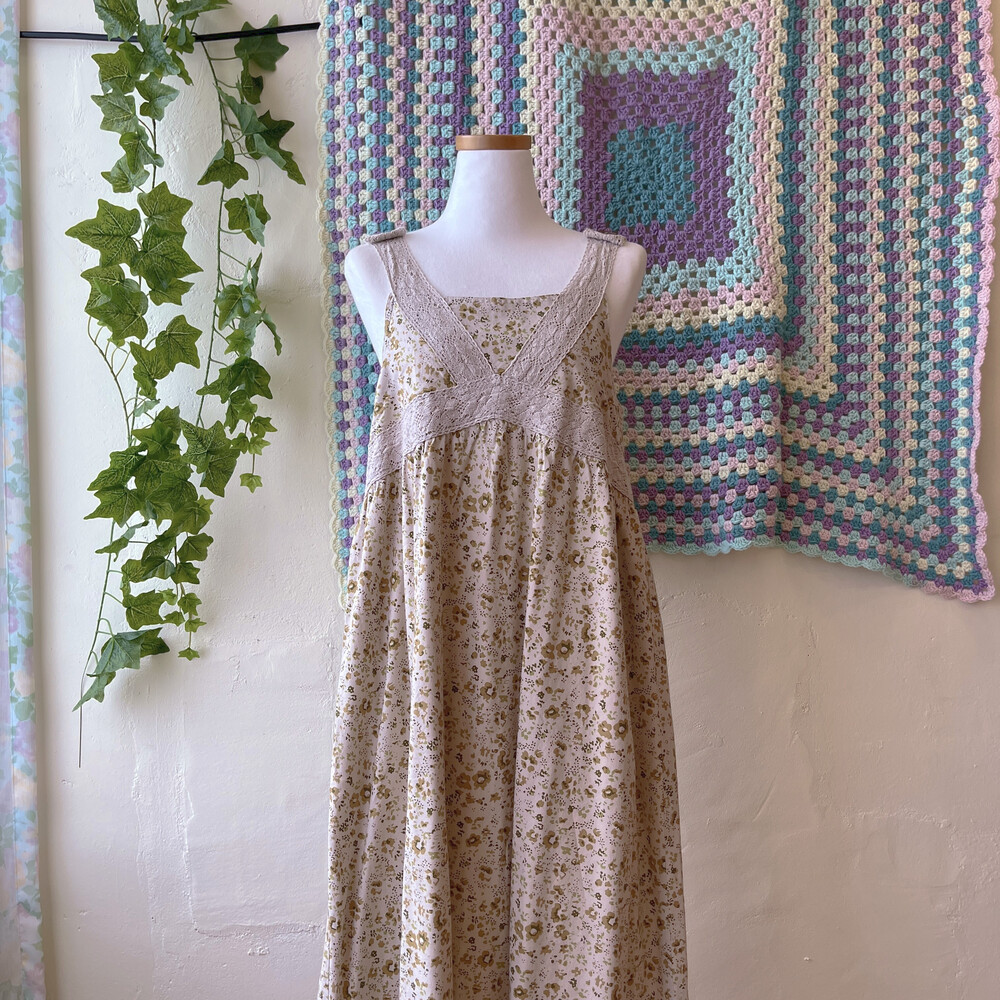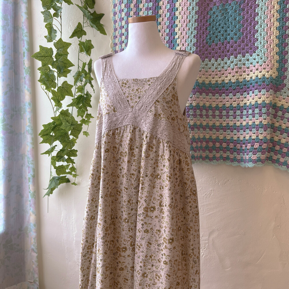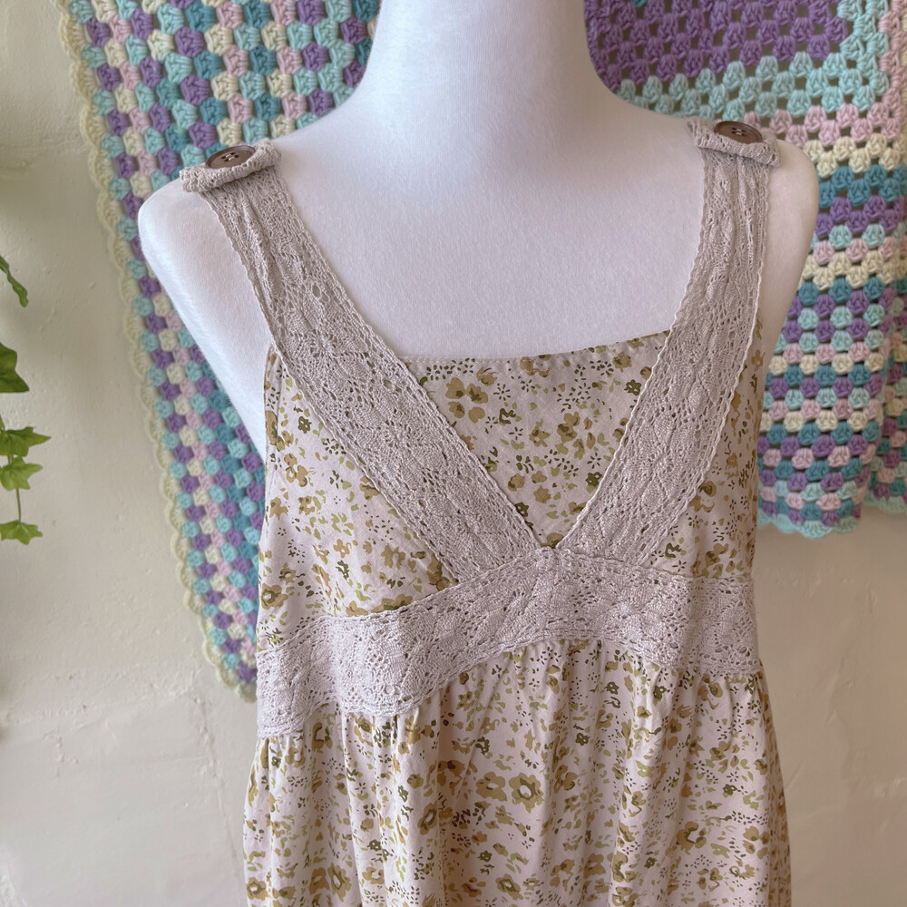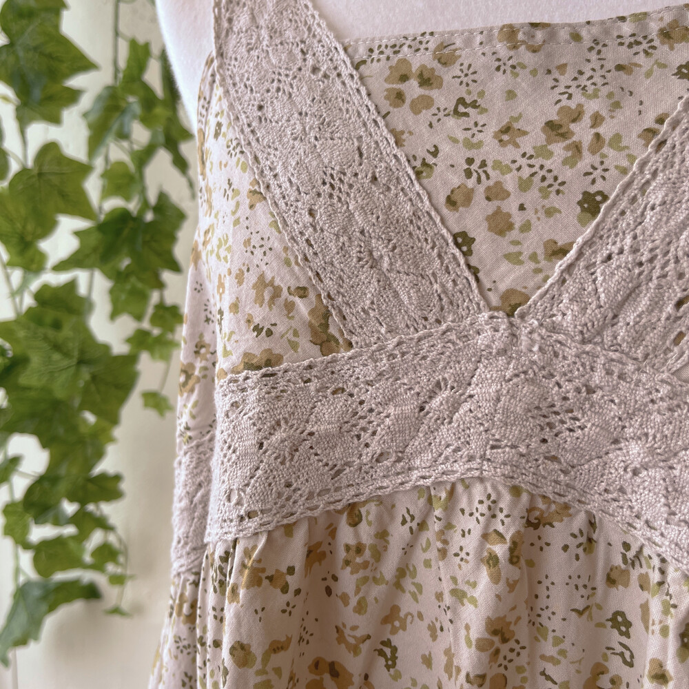 khaki flower lace band&button ops