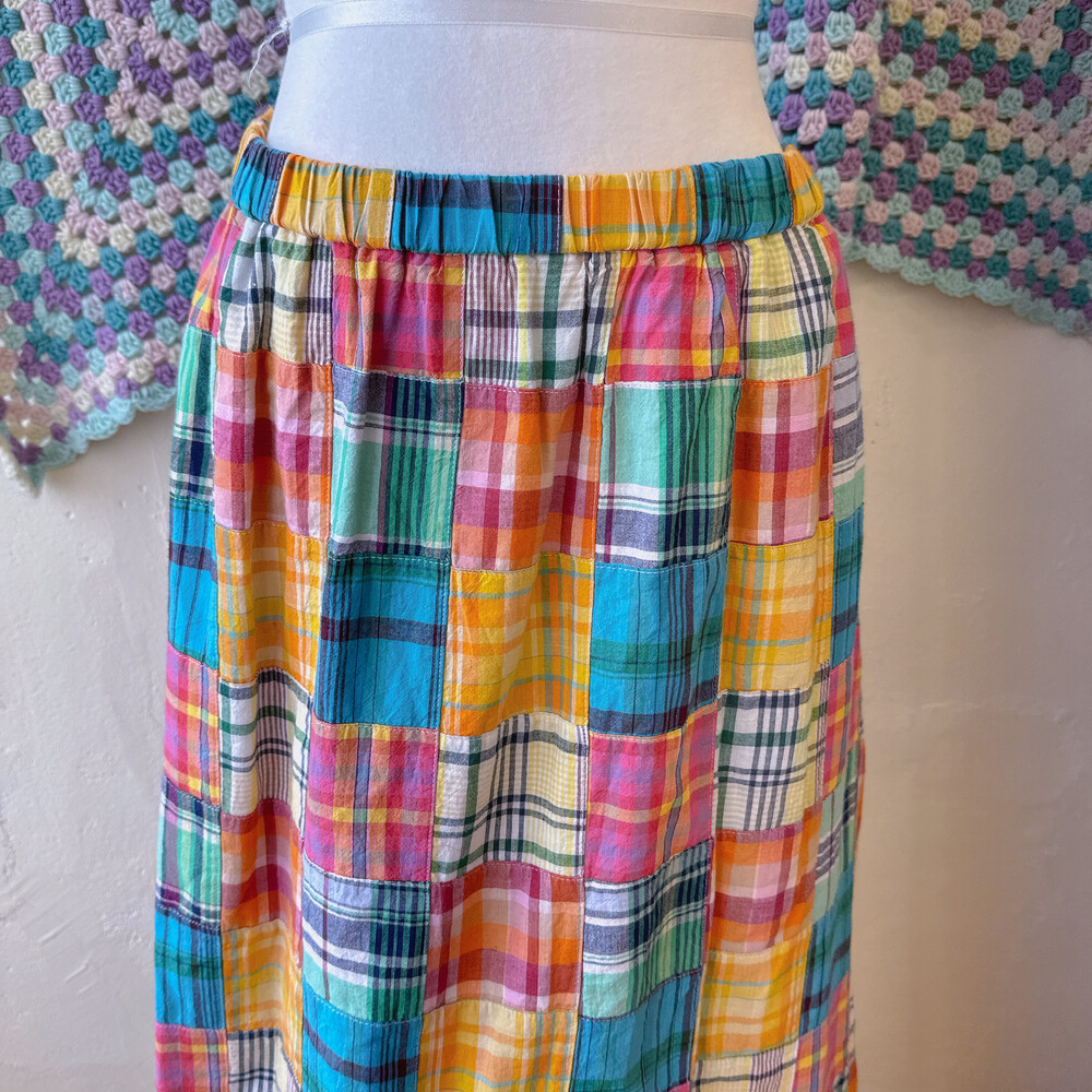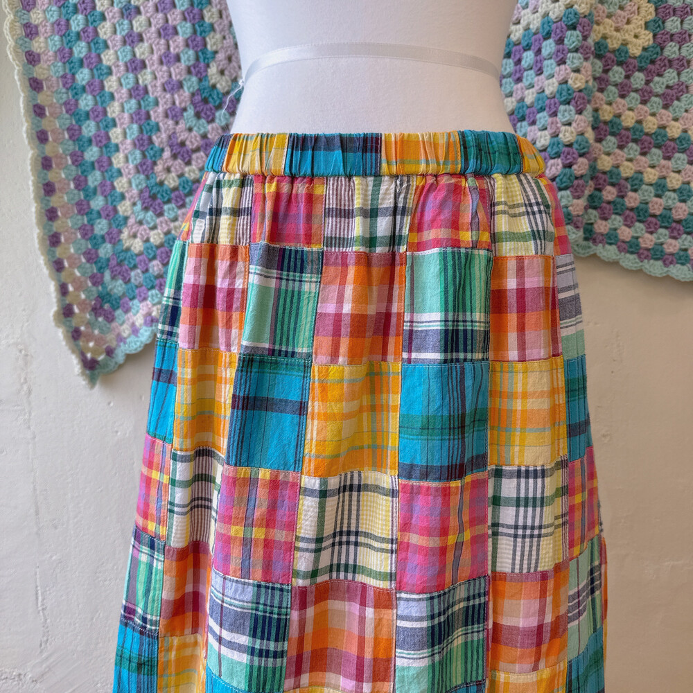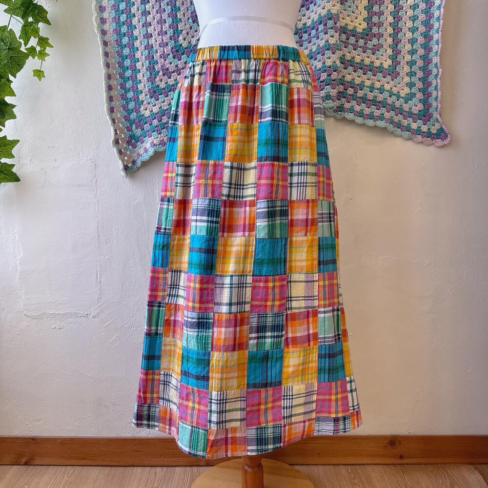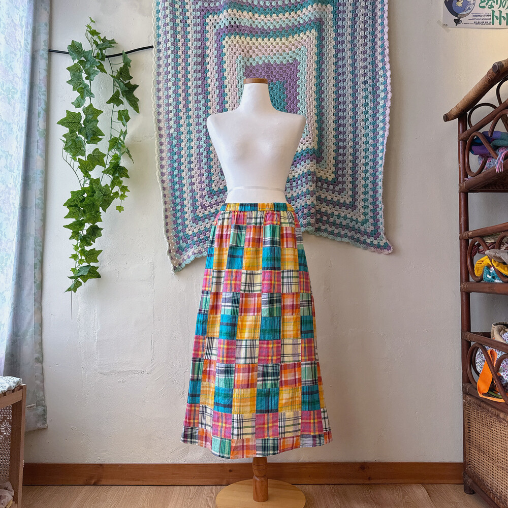 체크 패턴의 패치워크 롱스커트예요