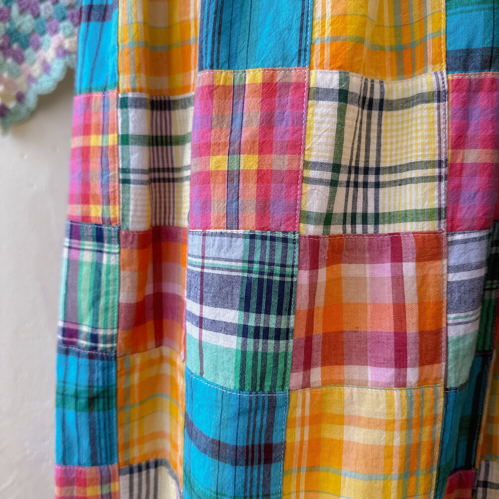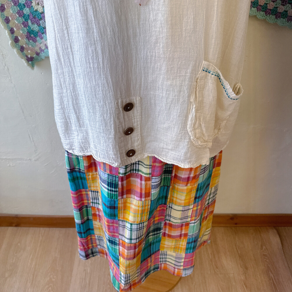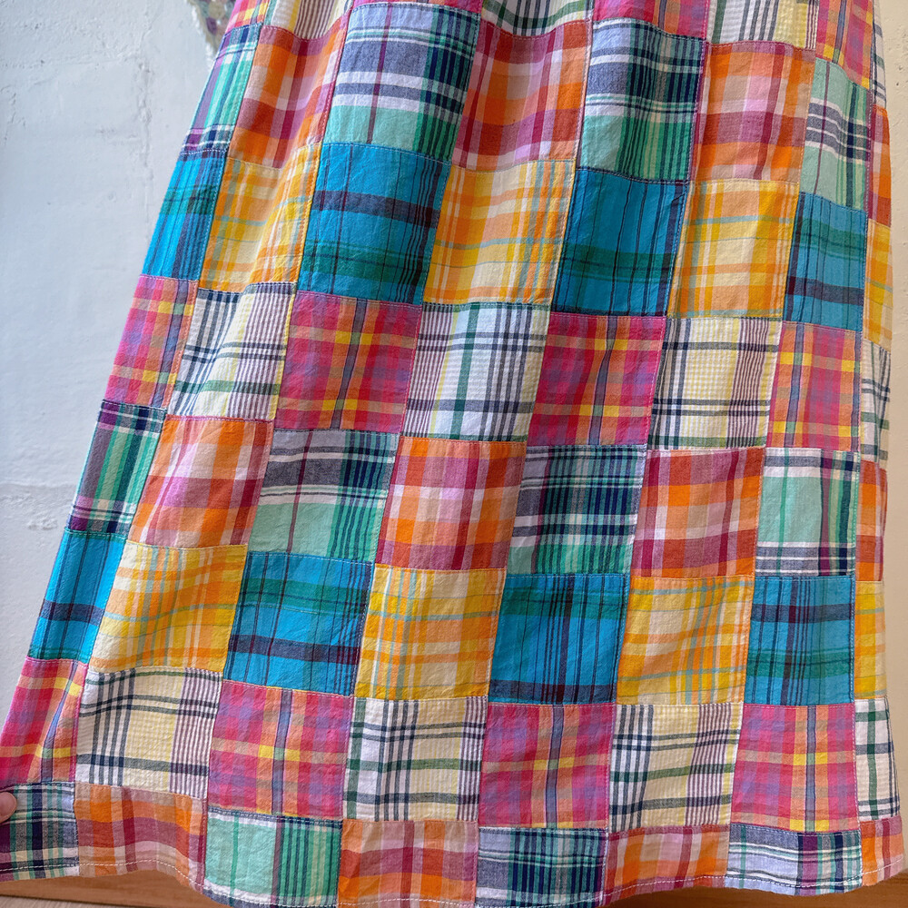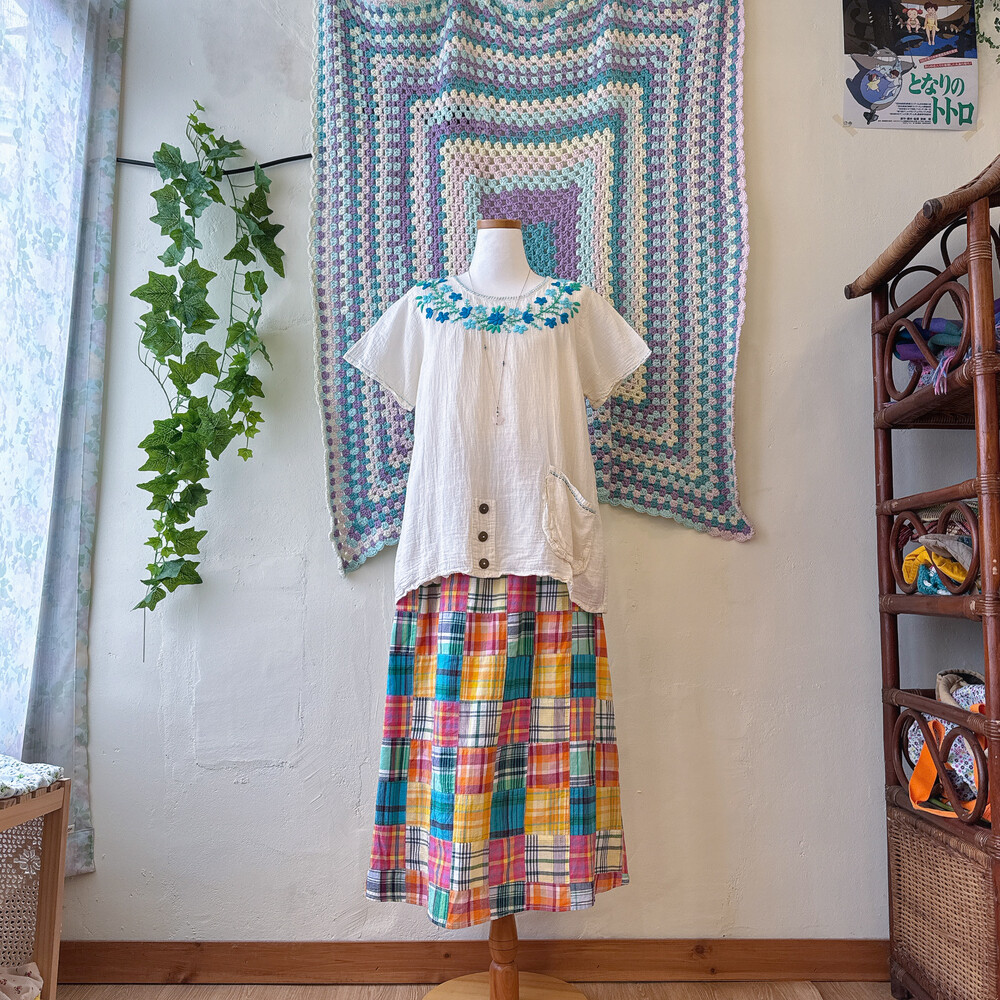 체크 패턴의 패치워크 롱스커트예요