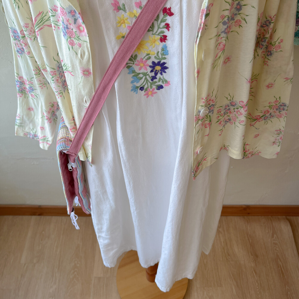 화이트나 아이보리 색감의 롱원피스 위에 걸쳐입기에도 좋아요:)