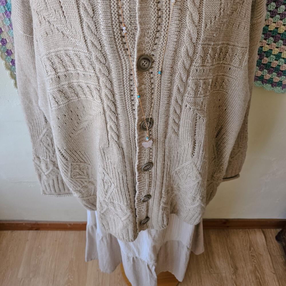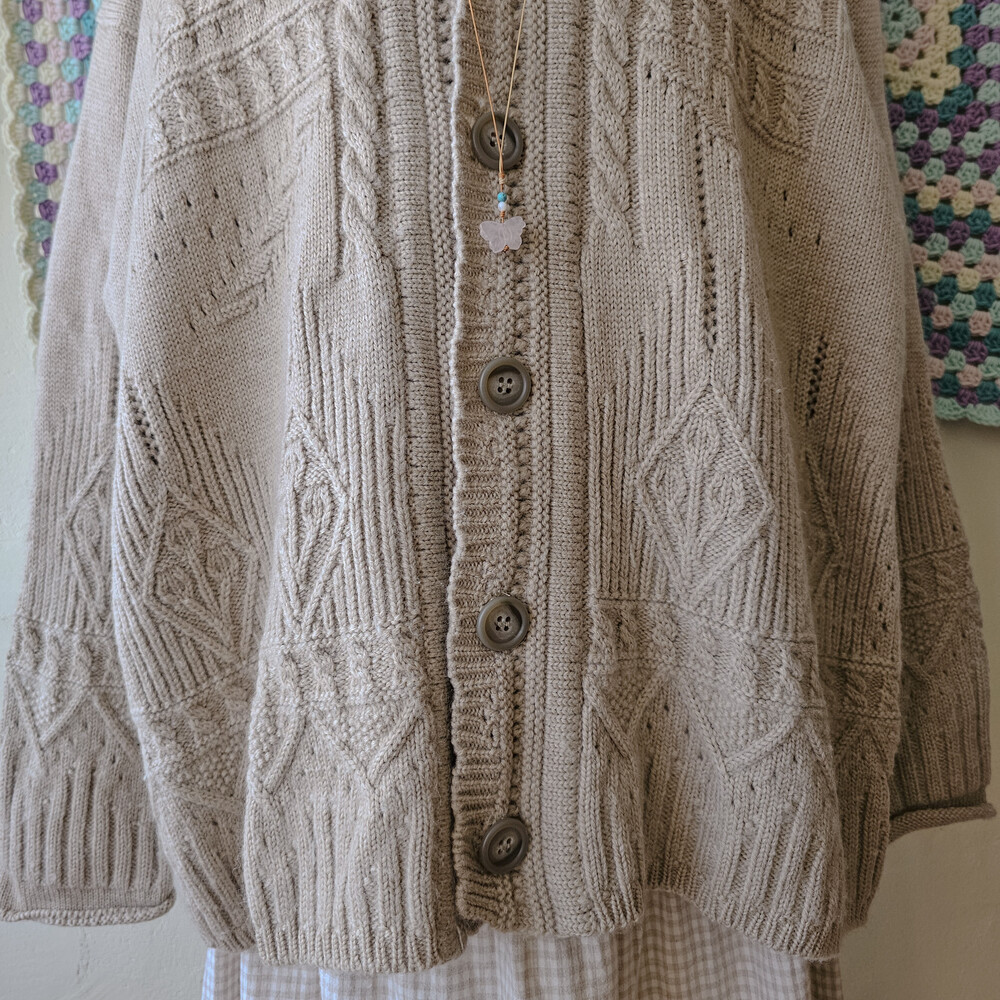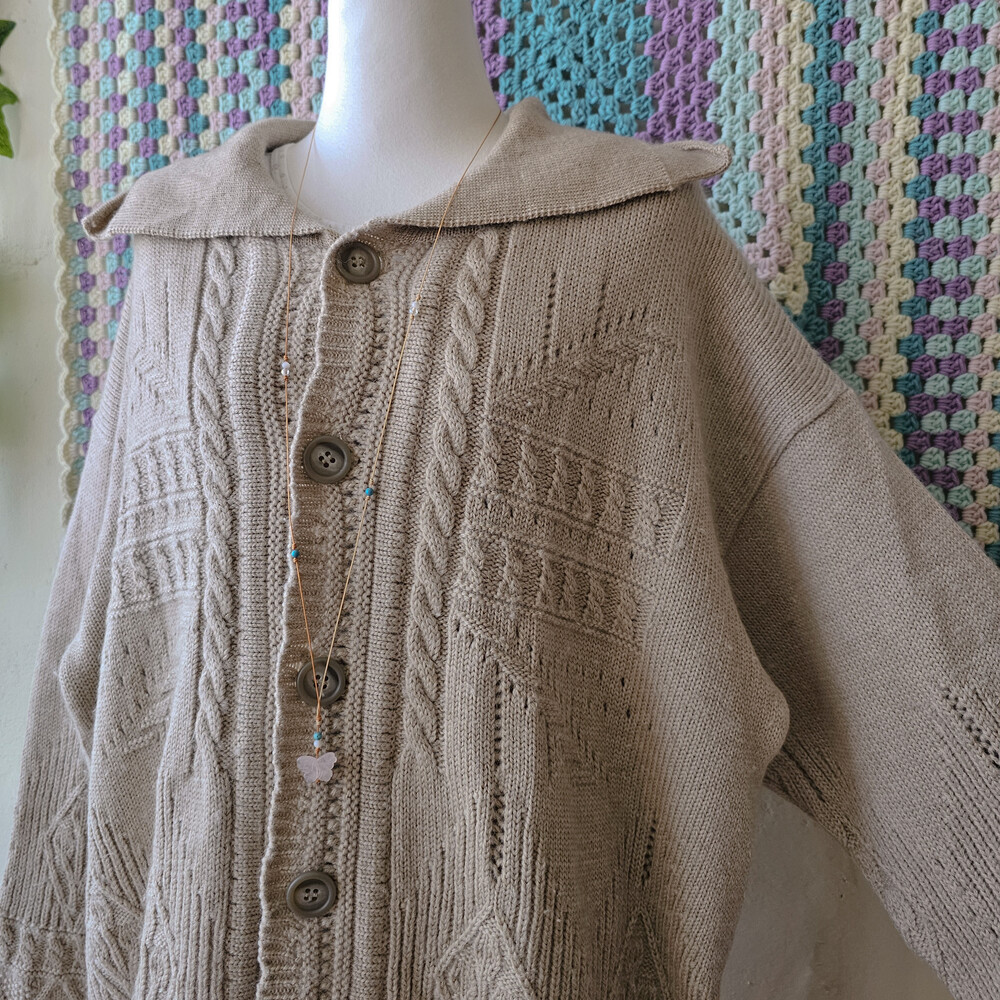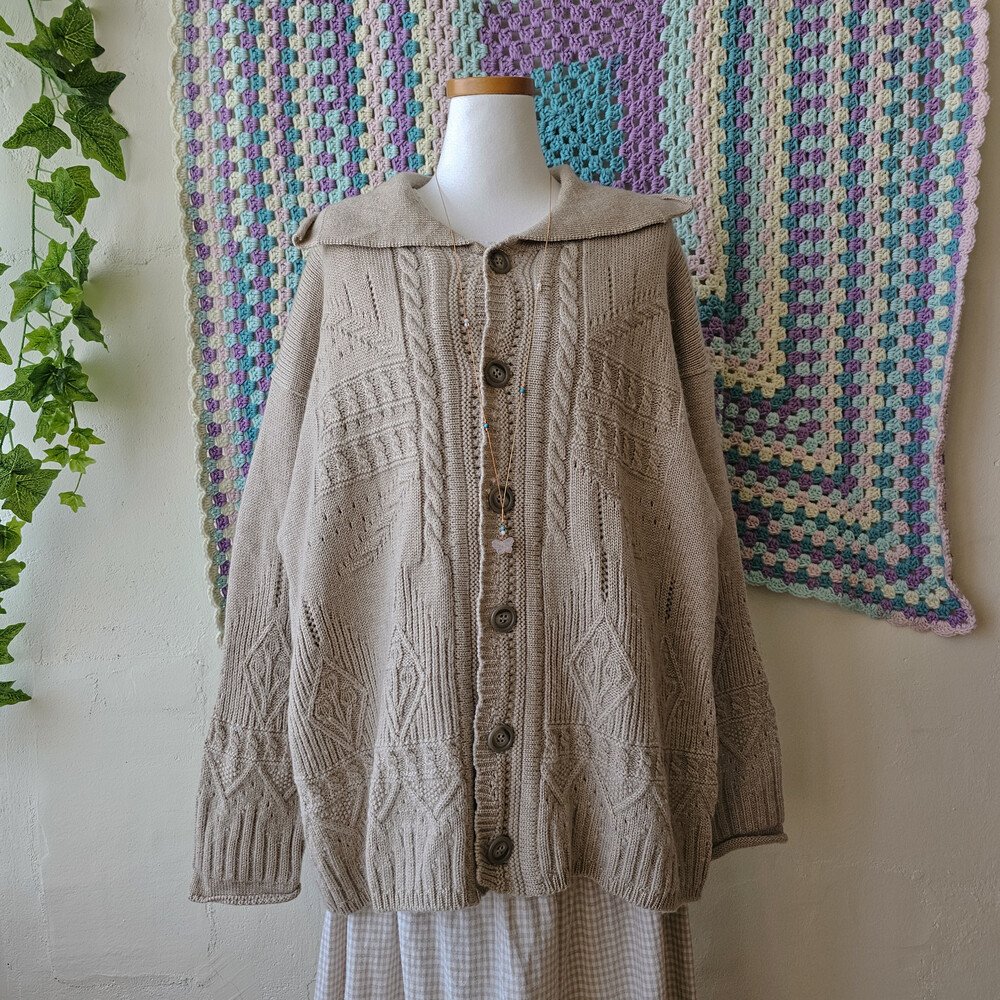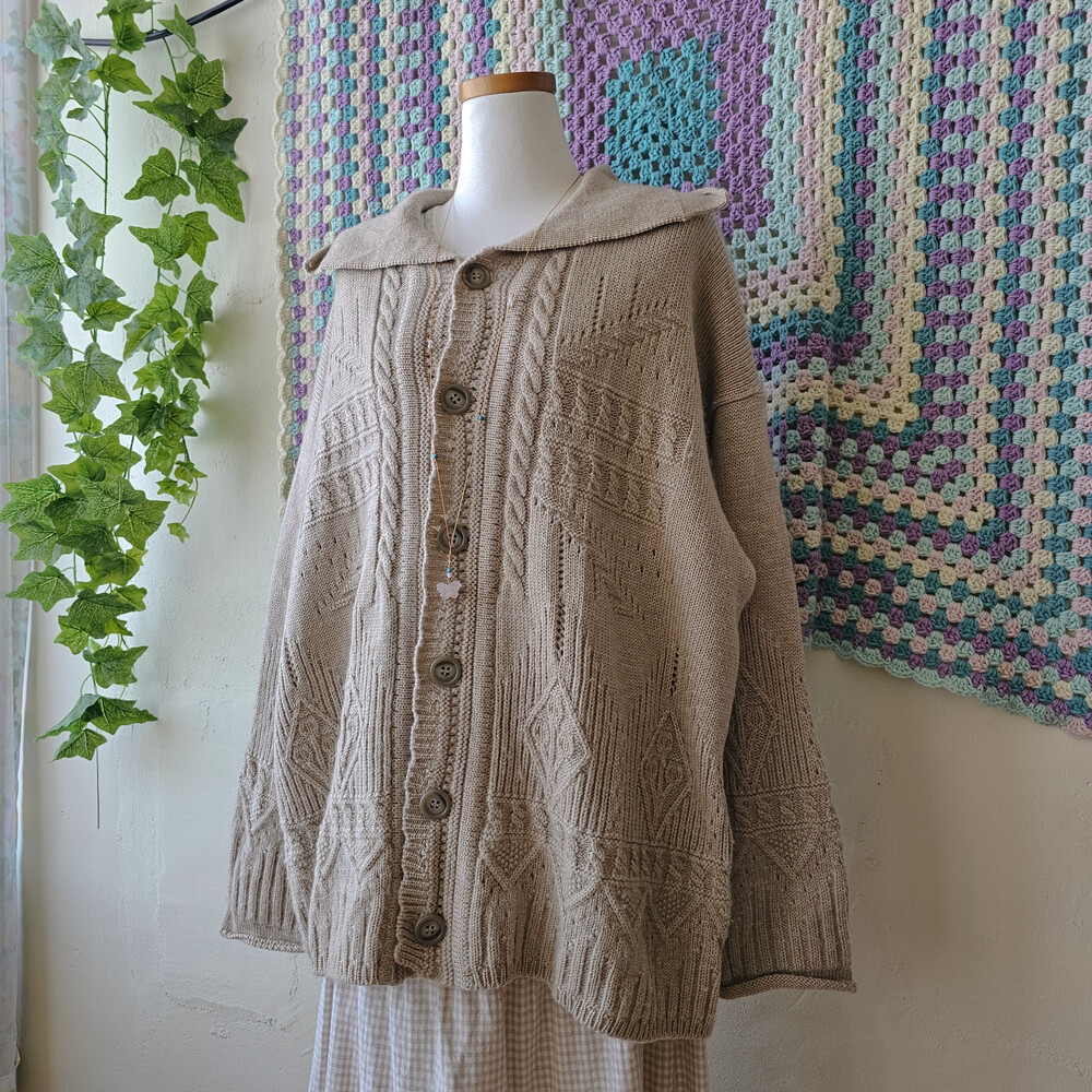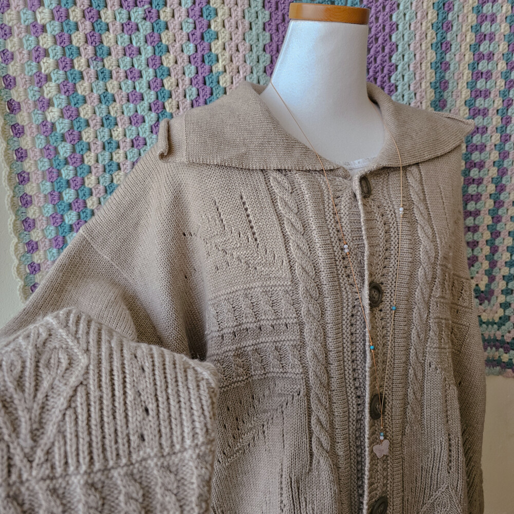 베이지 색감의 카라 오버사이즈 가디건이에요