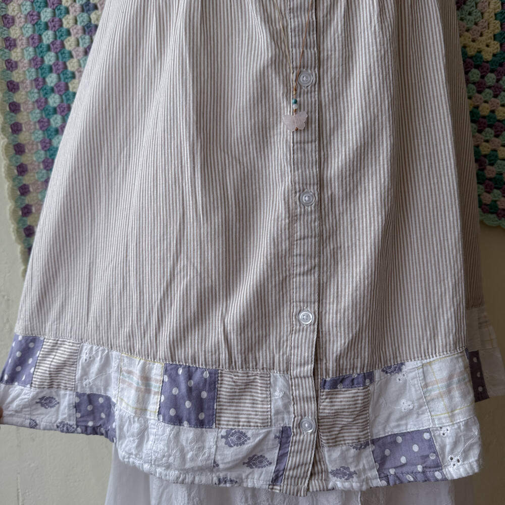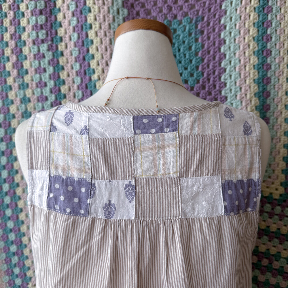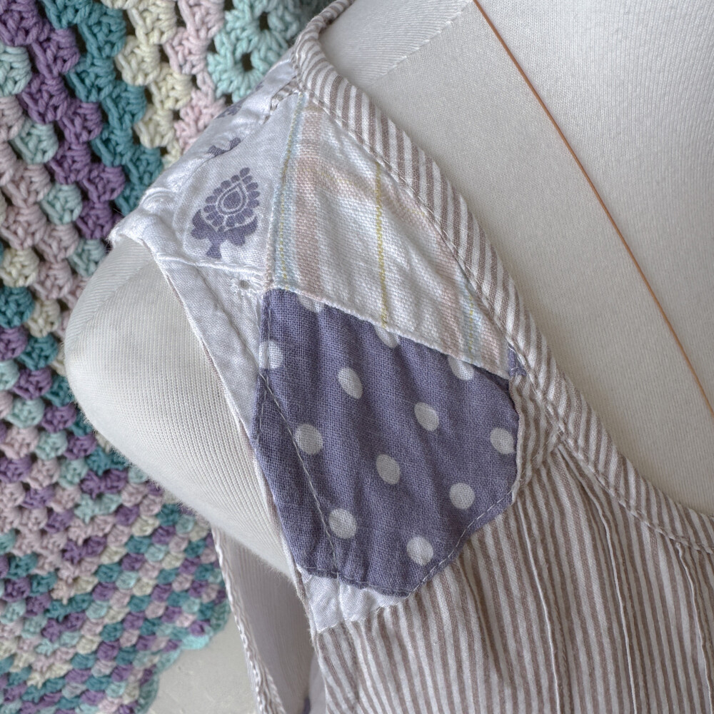 어깨, 등, 밑단에 패치워크 디자인으로 되어 있는