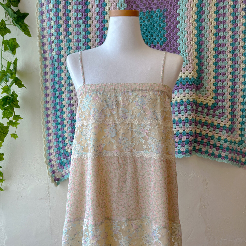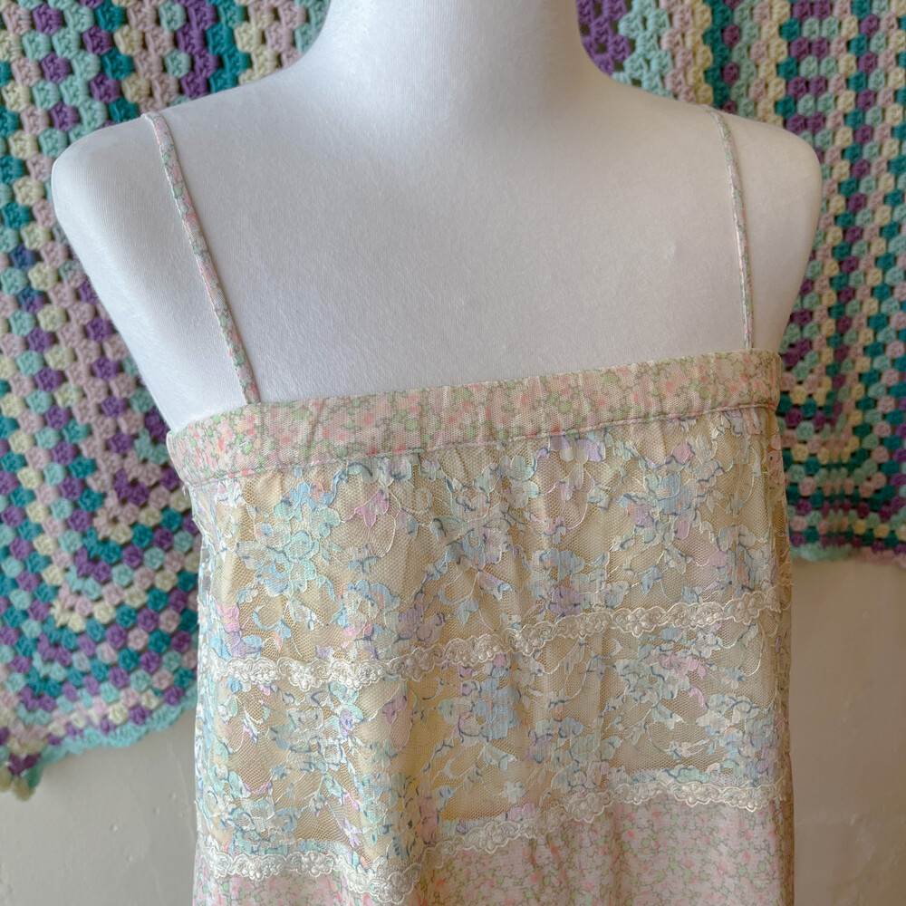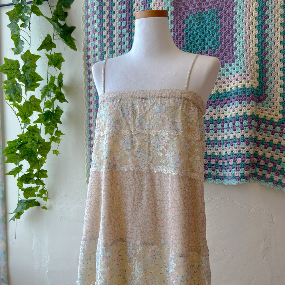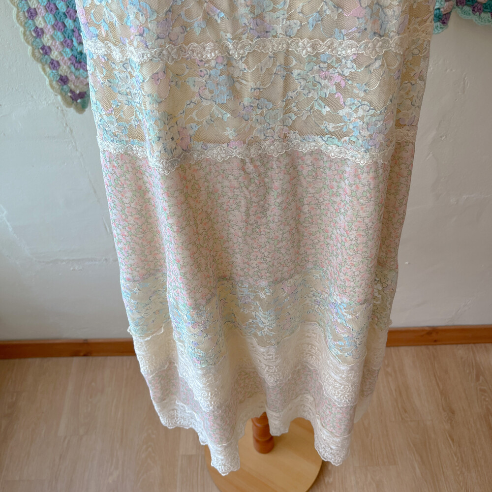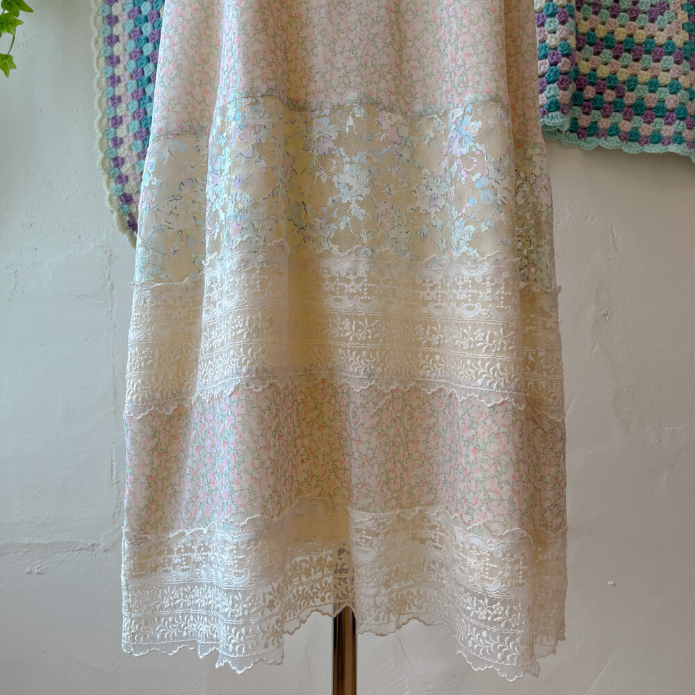 파스텔 색감의 레이스와 복숭아색감 꽃무늬가 조합된