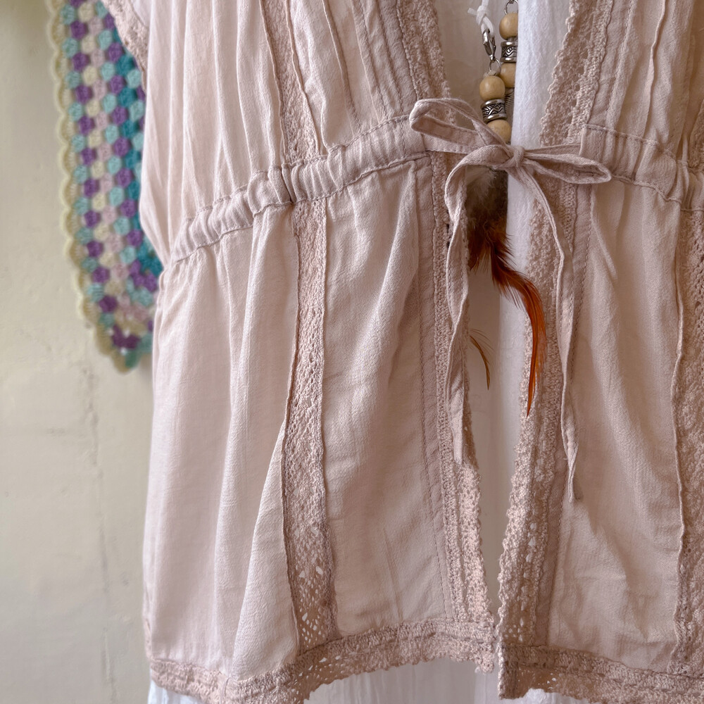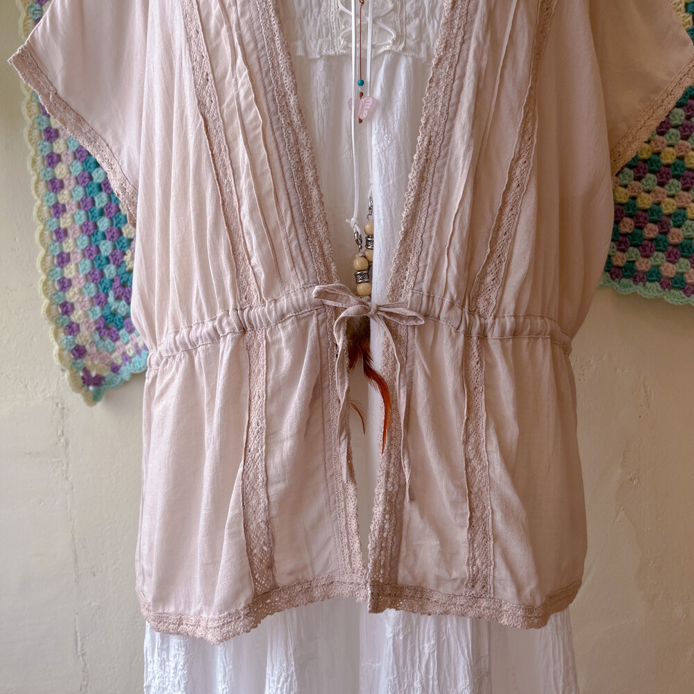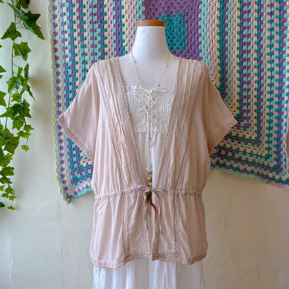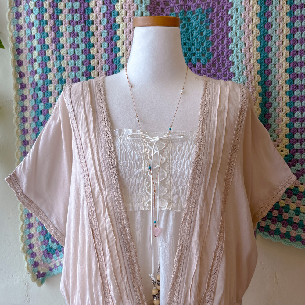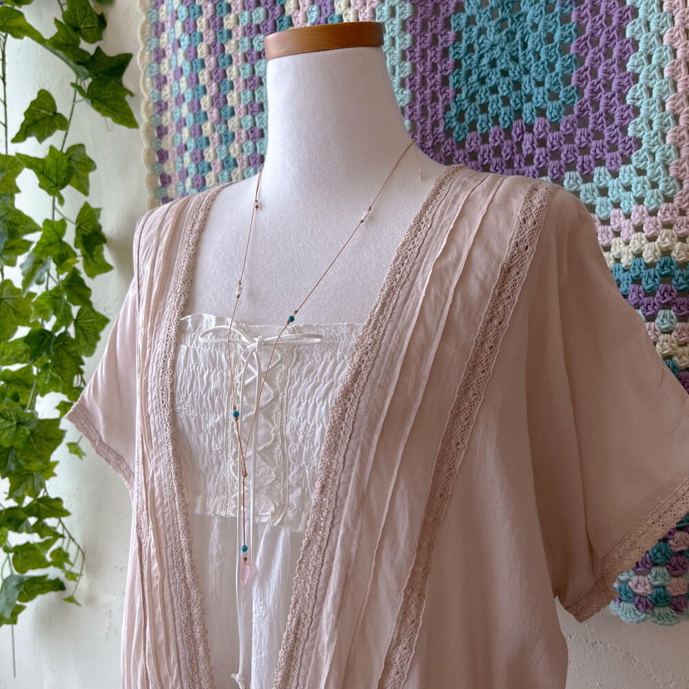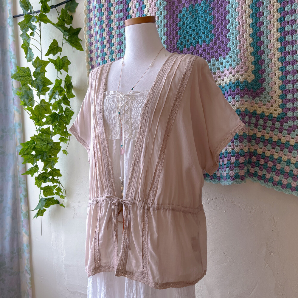 뮤트한 핑크 색감의 코튼 가디건이에요