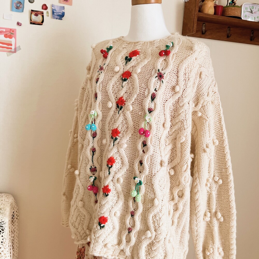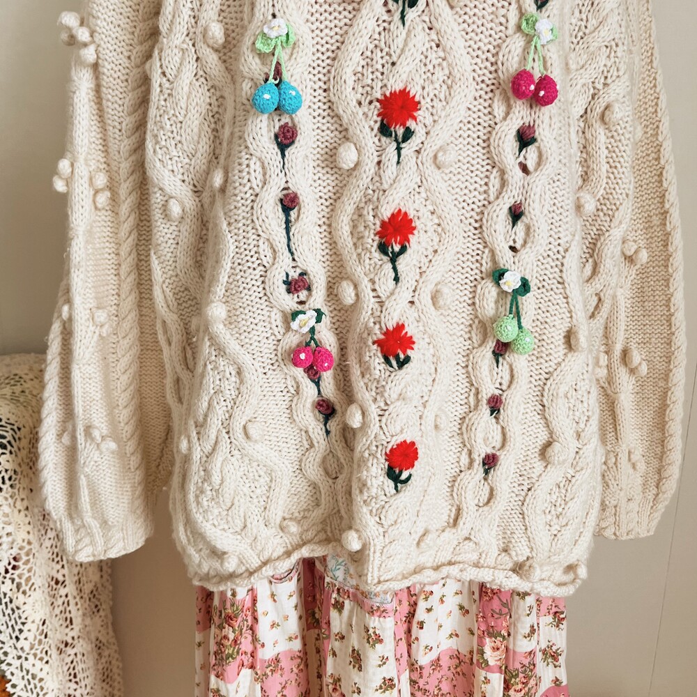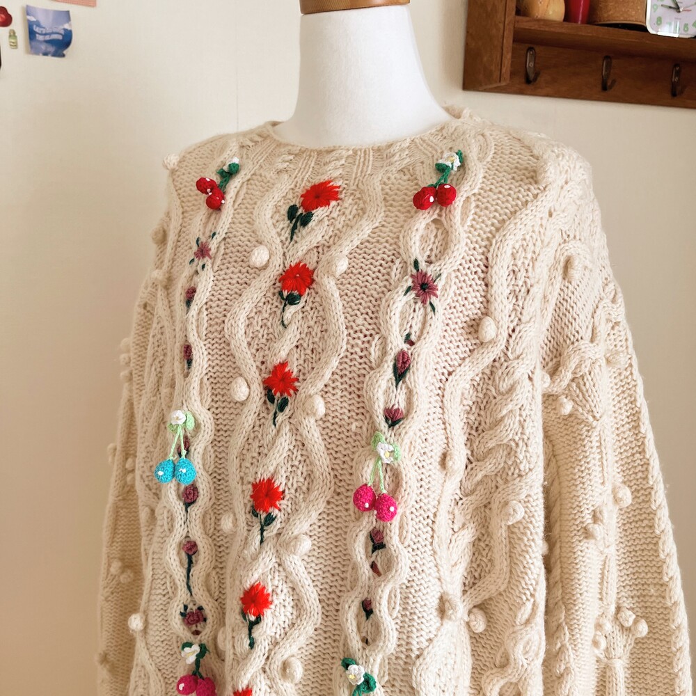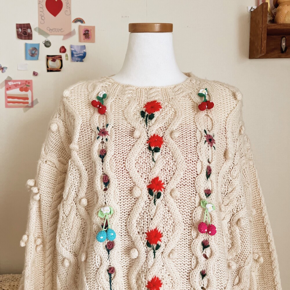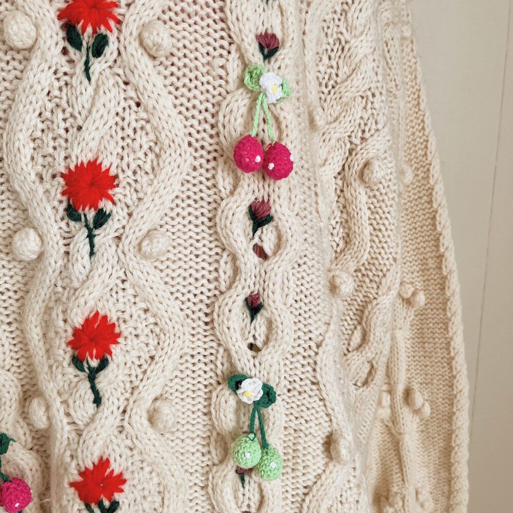 pompom&strawberry motive cable knit