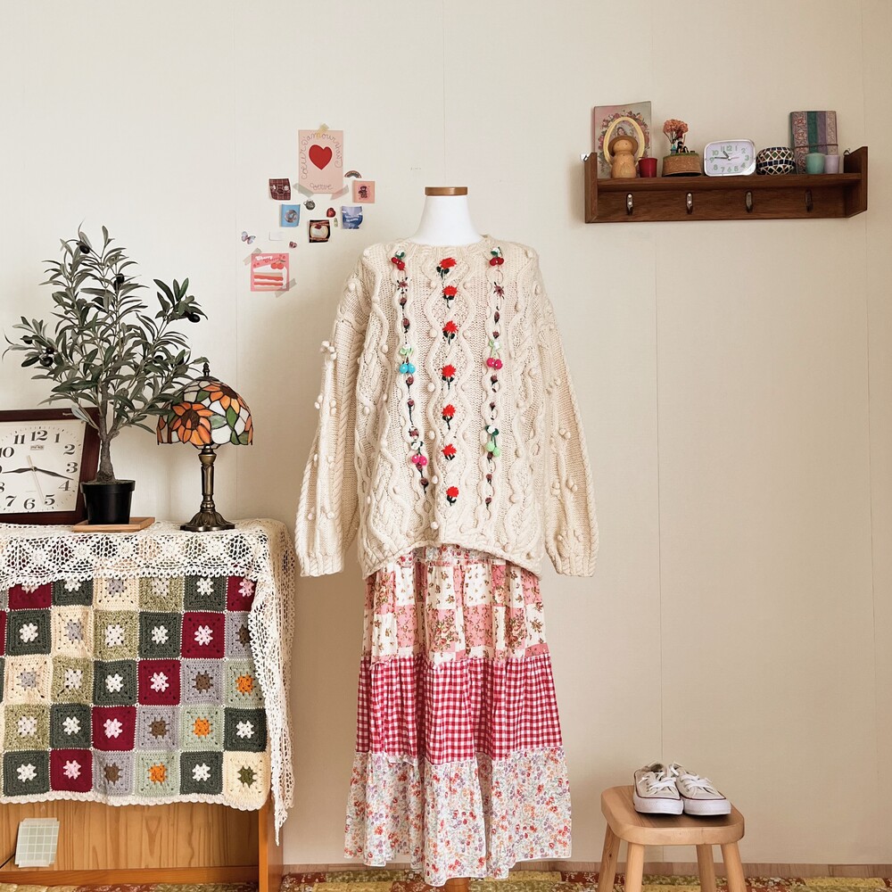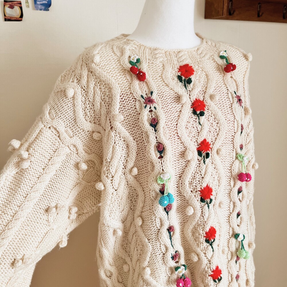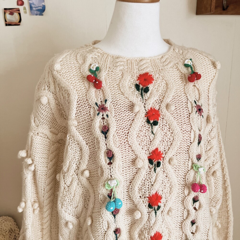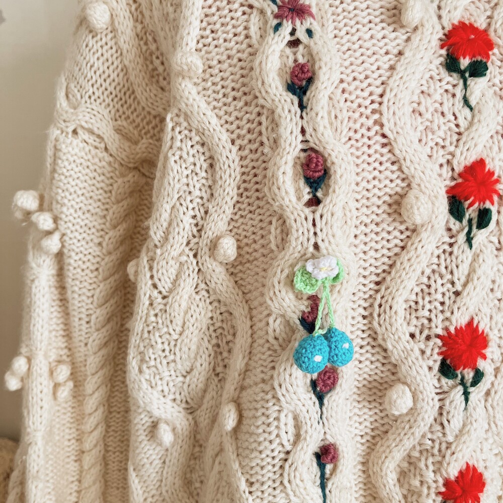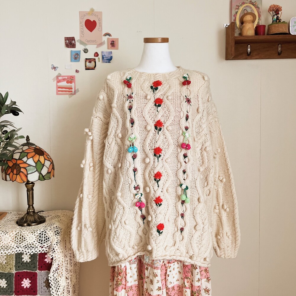 pompom&strawberry motive cable knit