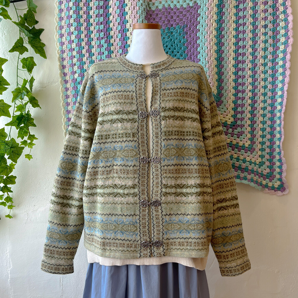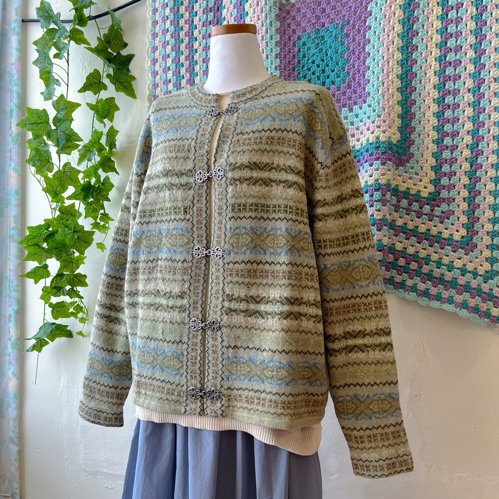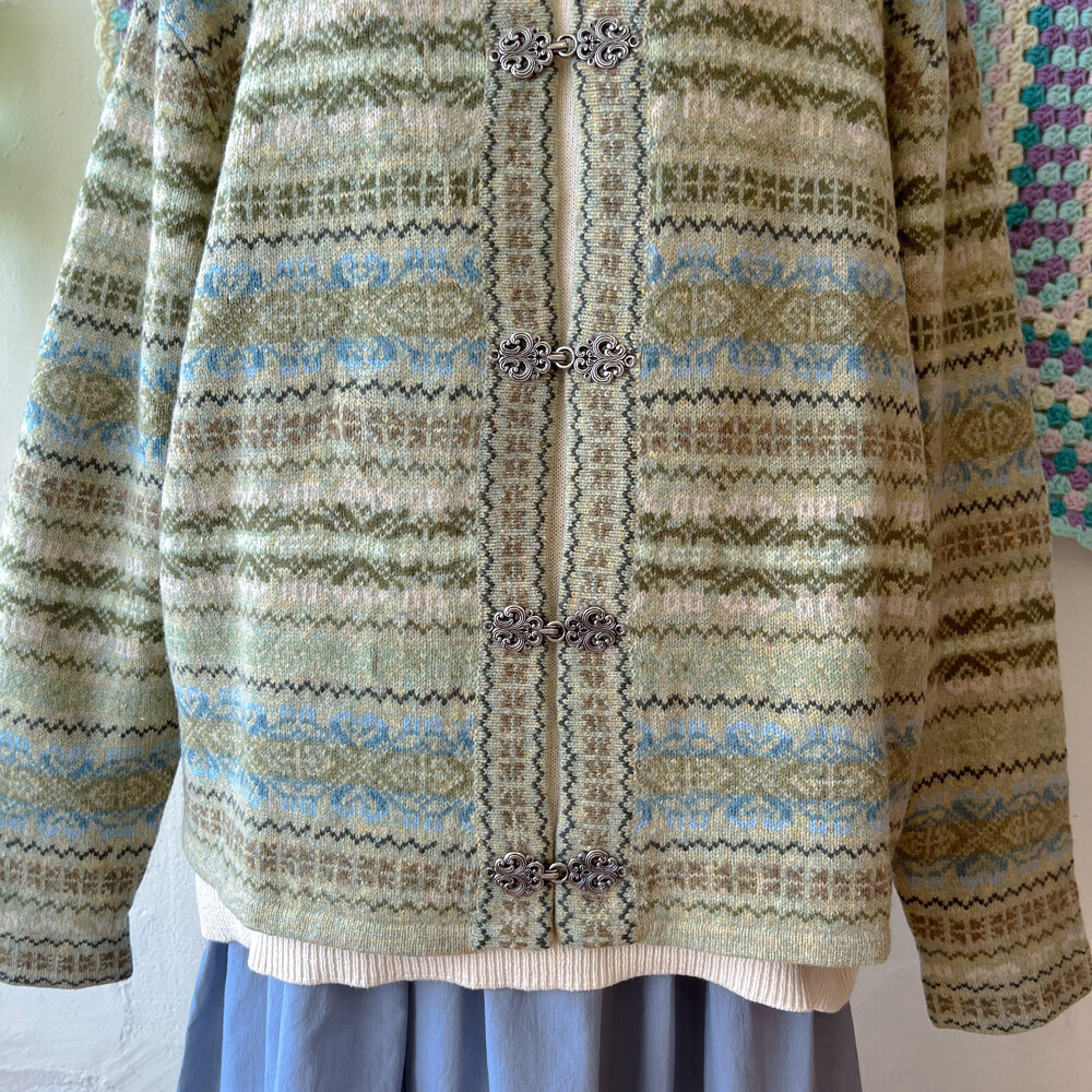 그리너리한 색감의 노르딕 가디건이에요