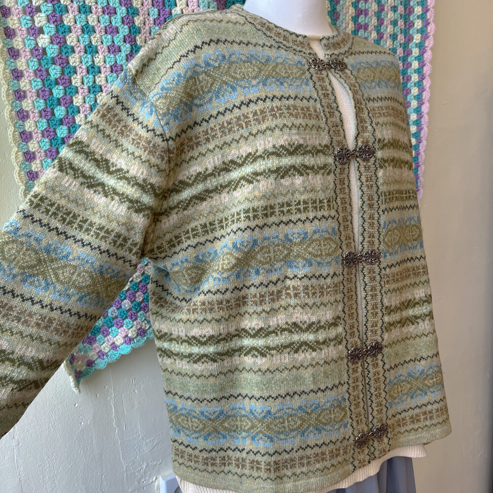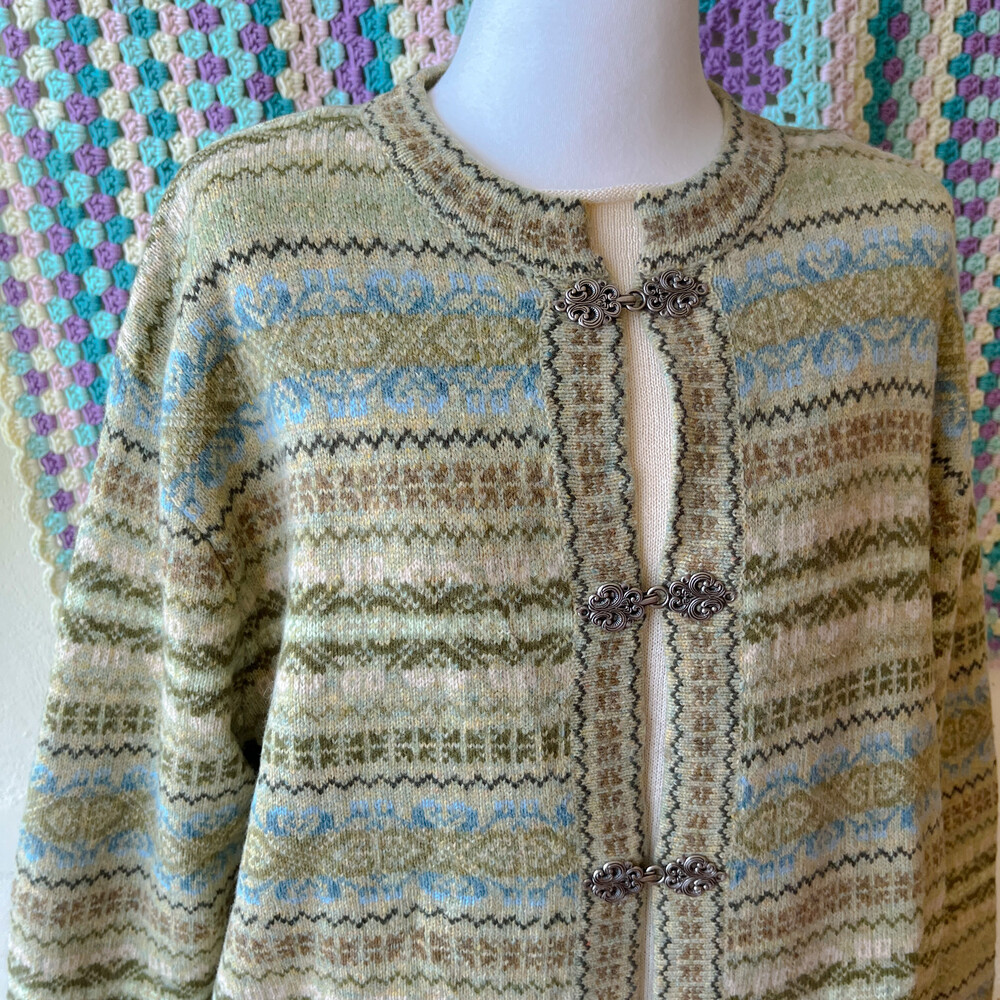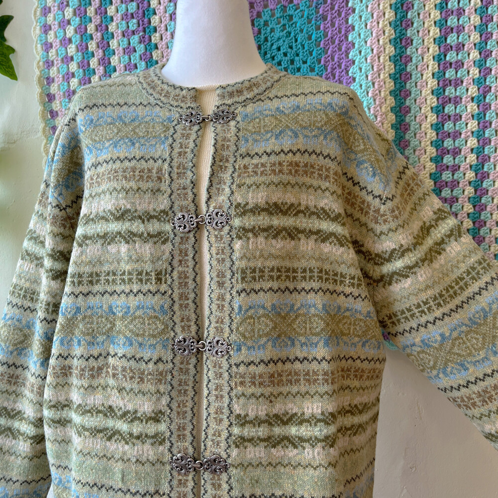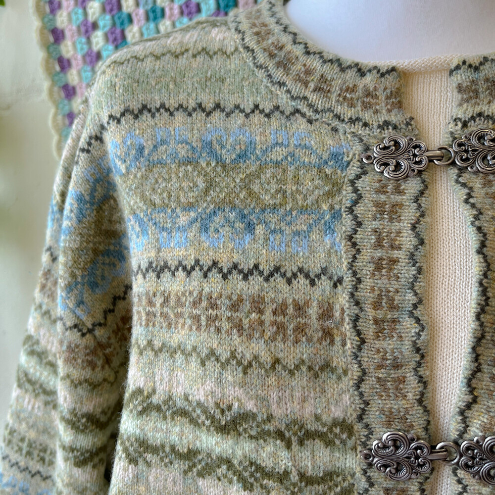 그리너리한 색감의 노르딕 가디건이에요