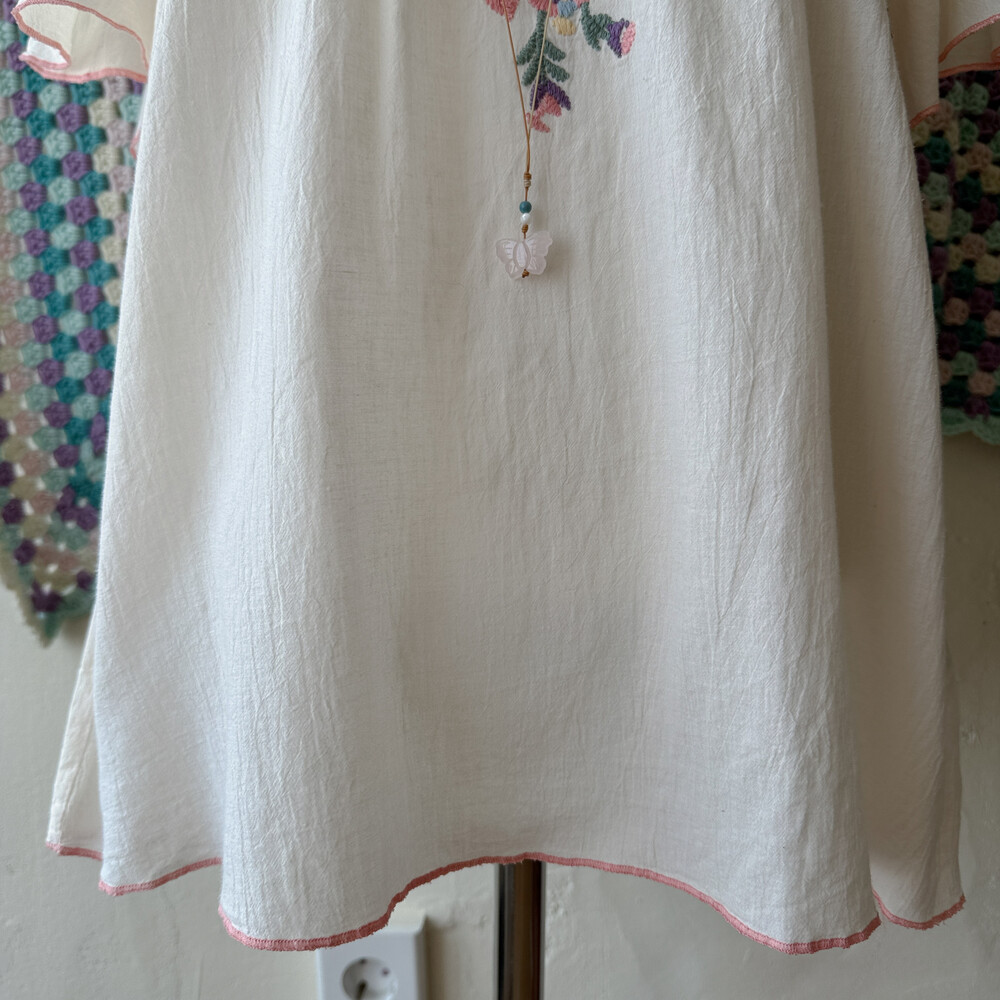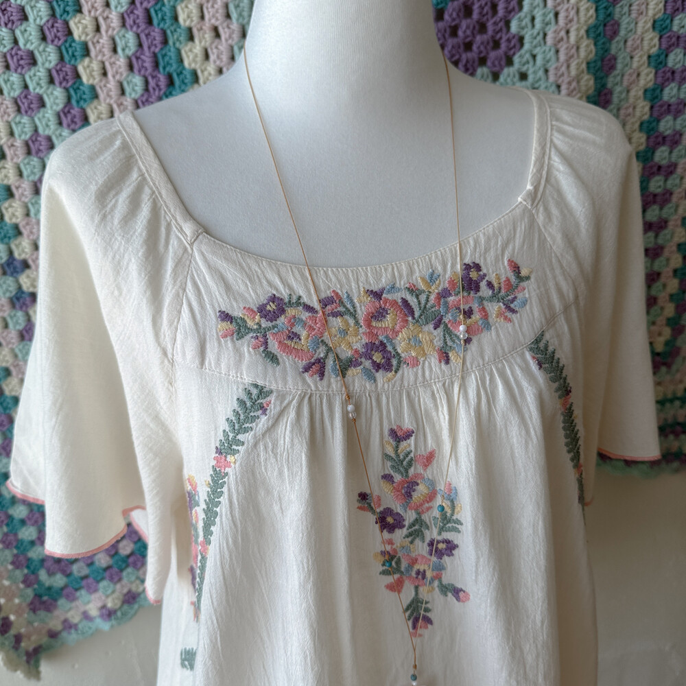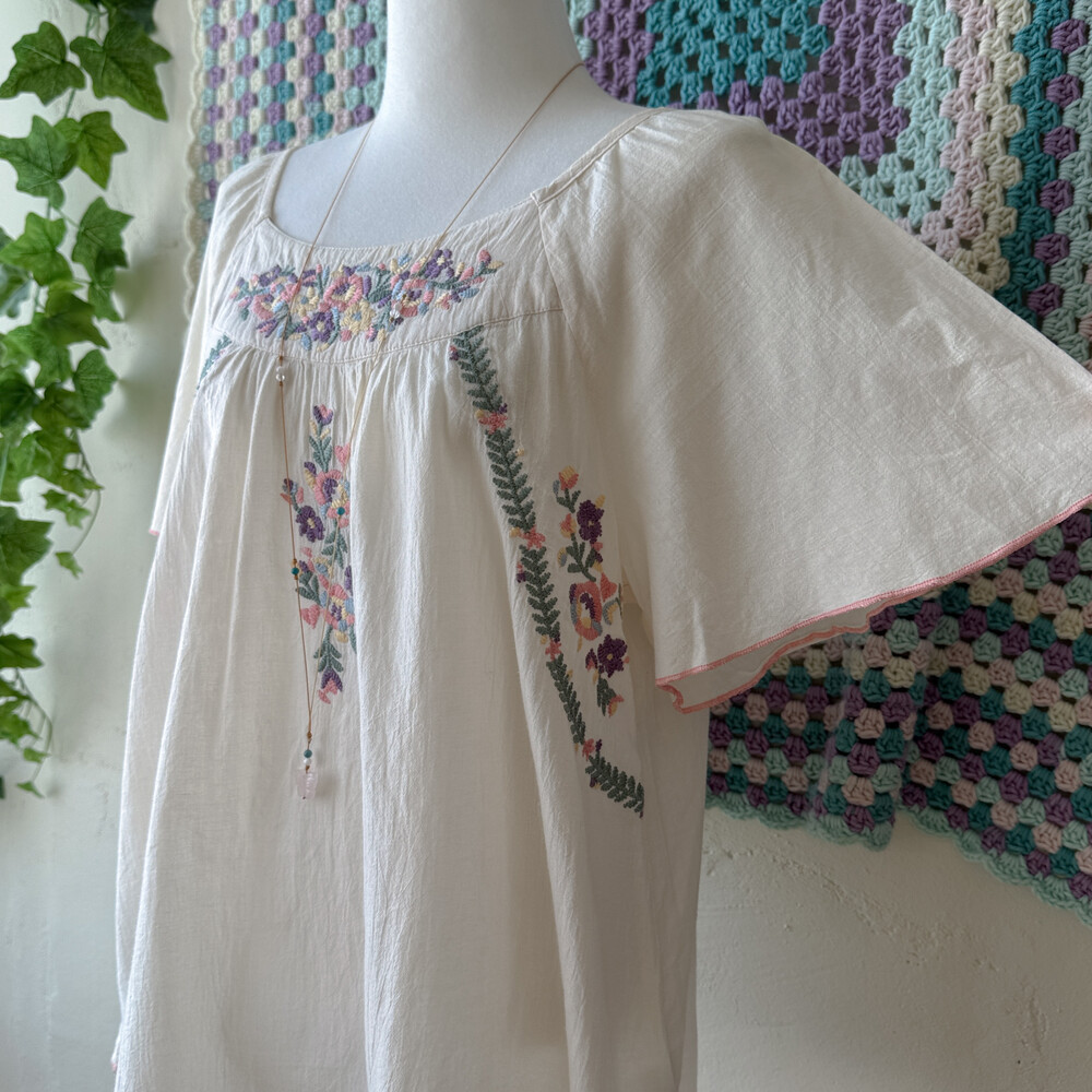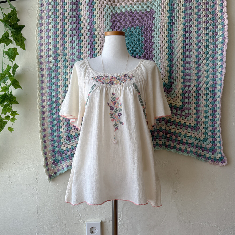아이보리 색감의 자수 반소매 블라우스예요