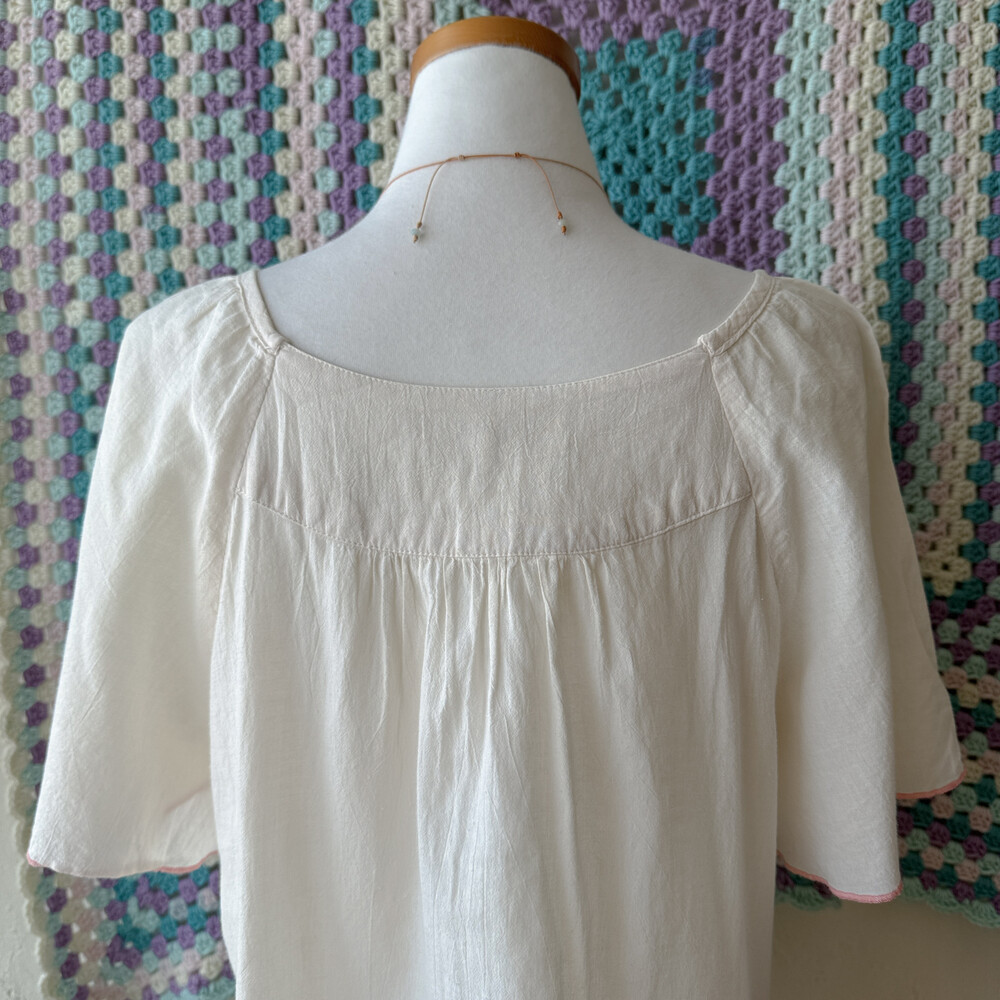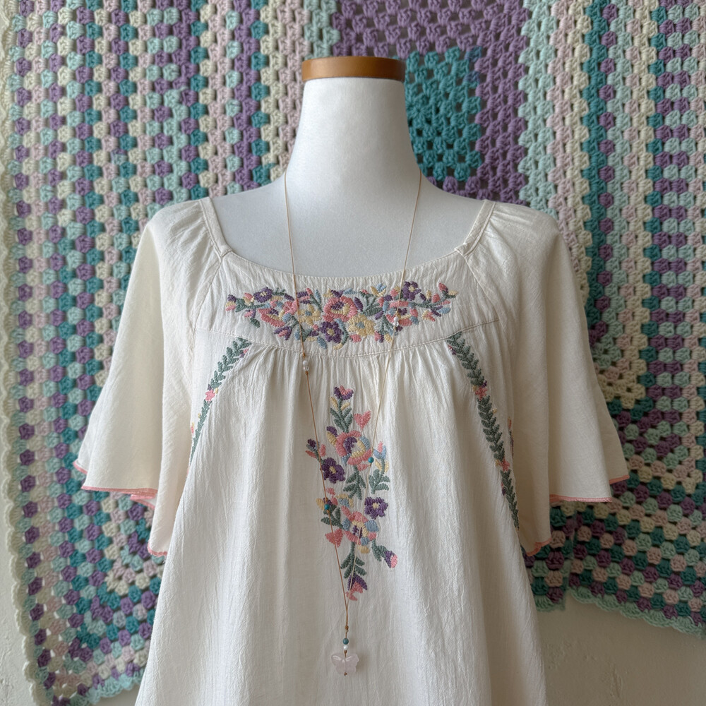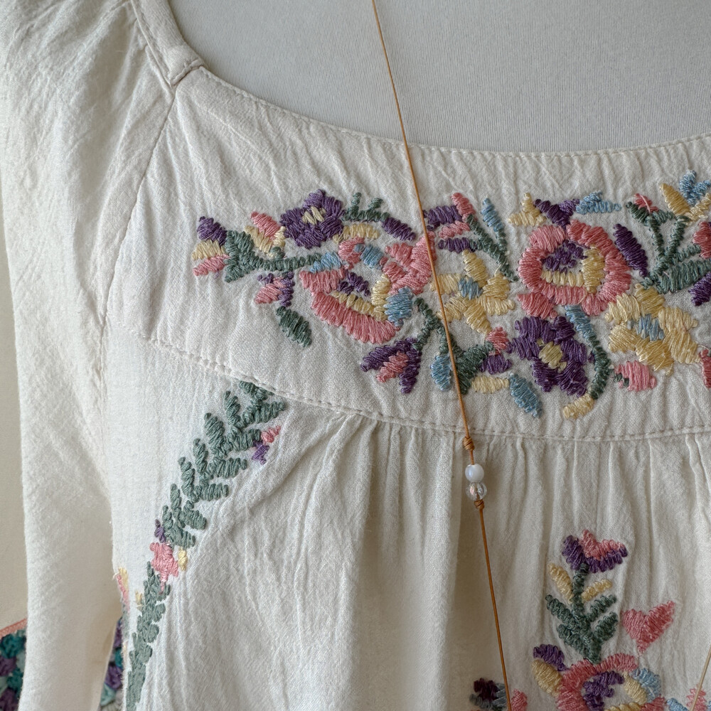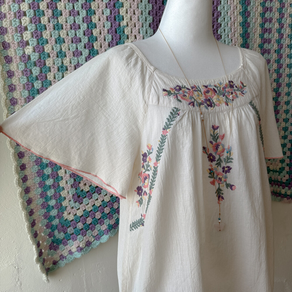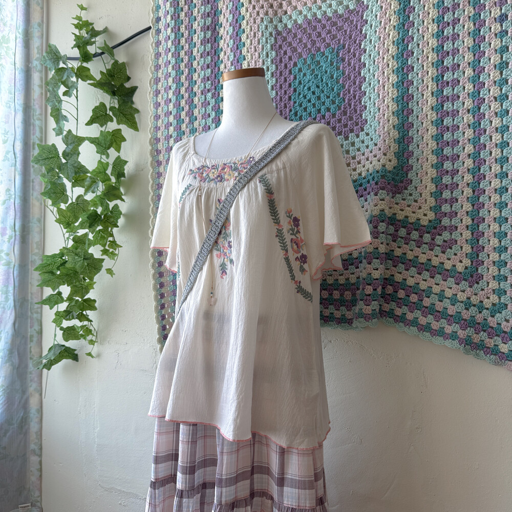 아이보리 색감의 자수 반소매 블라우스예요
