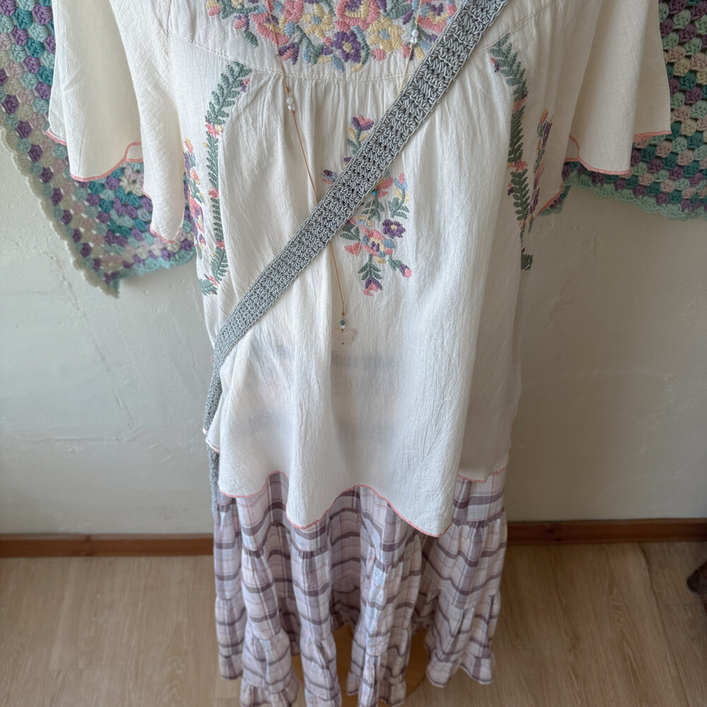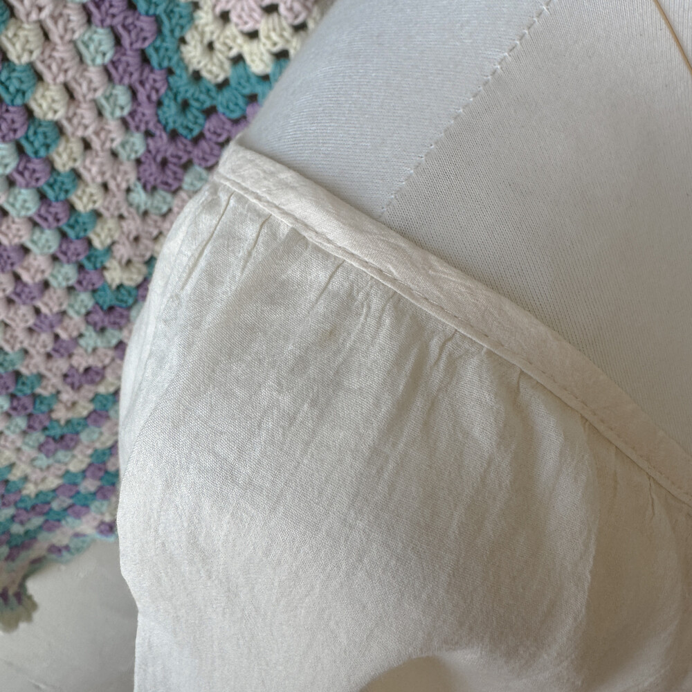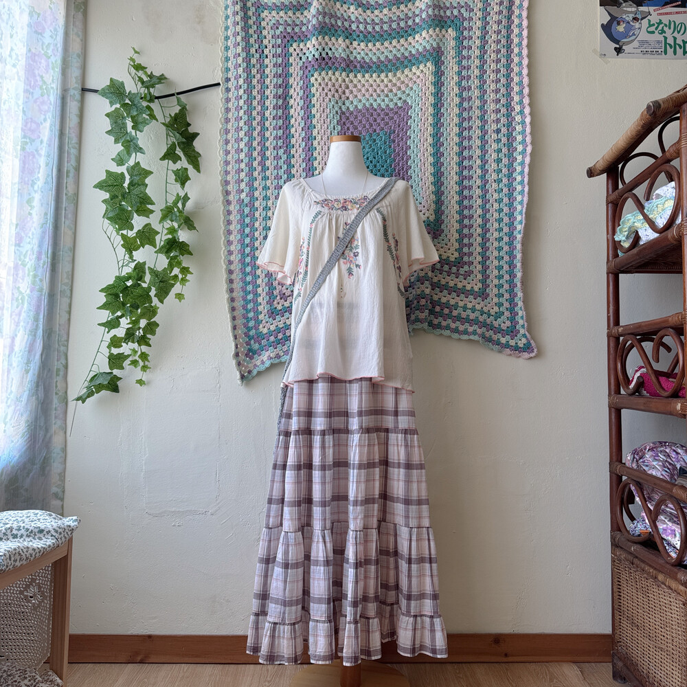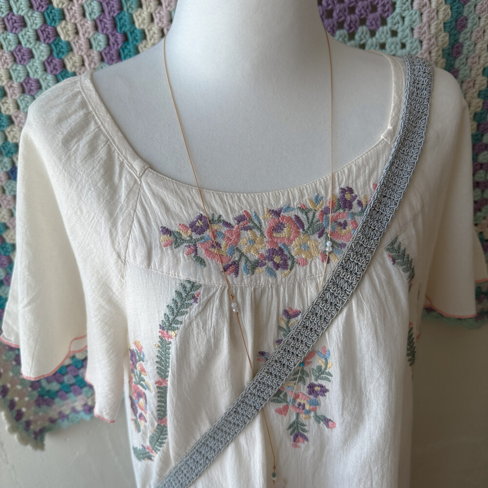 아이보리 색감의 자수 반소매 블라우스예요