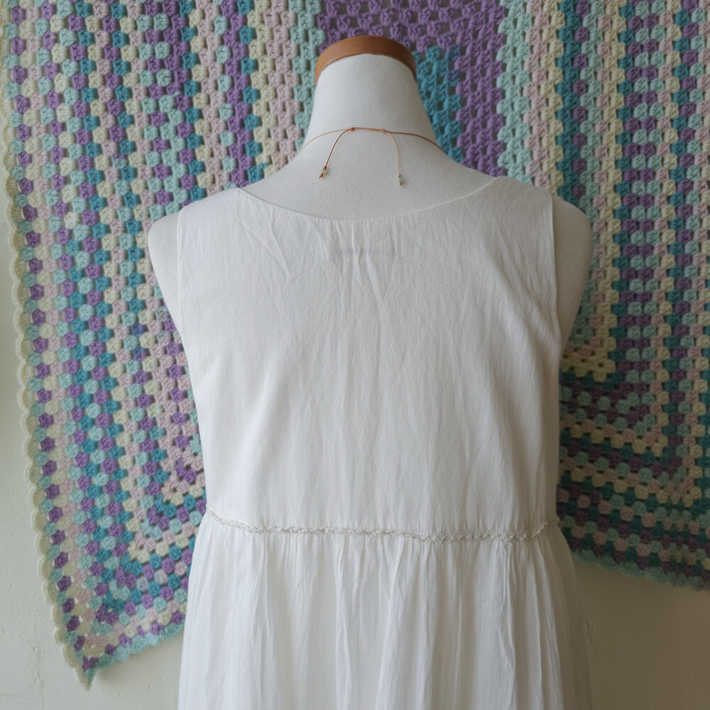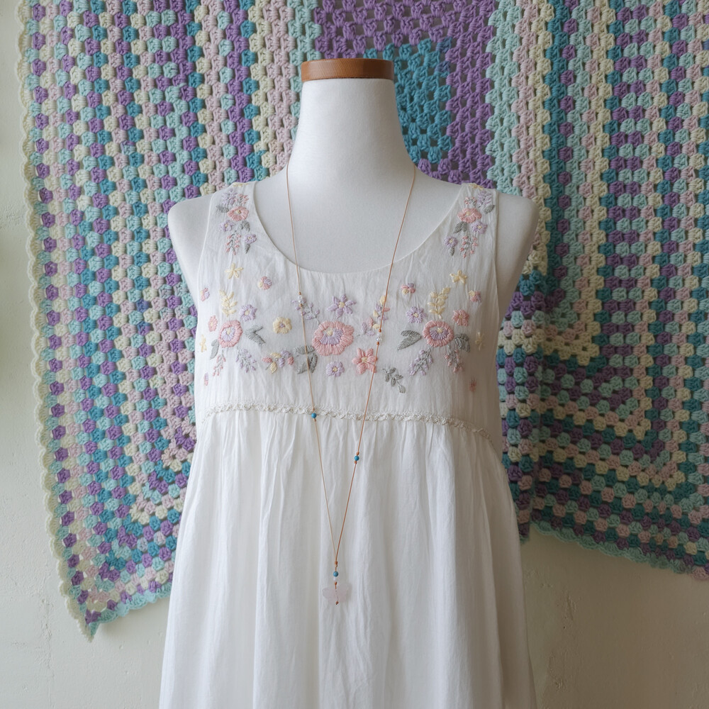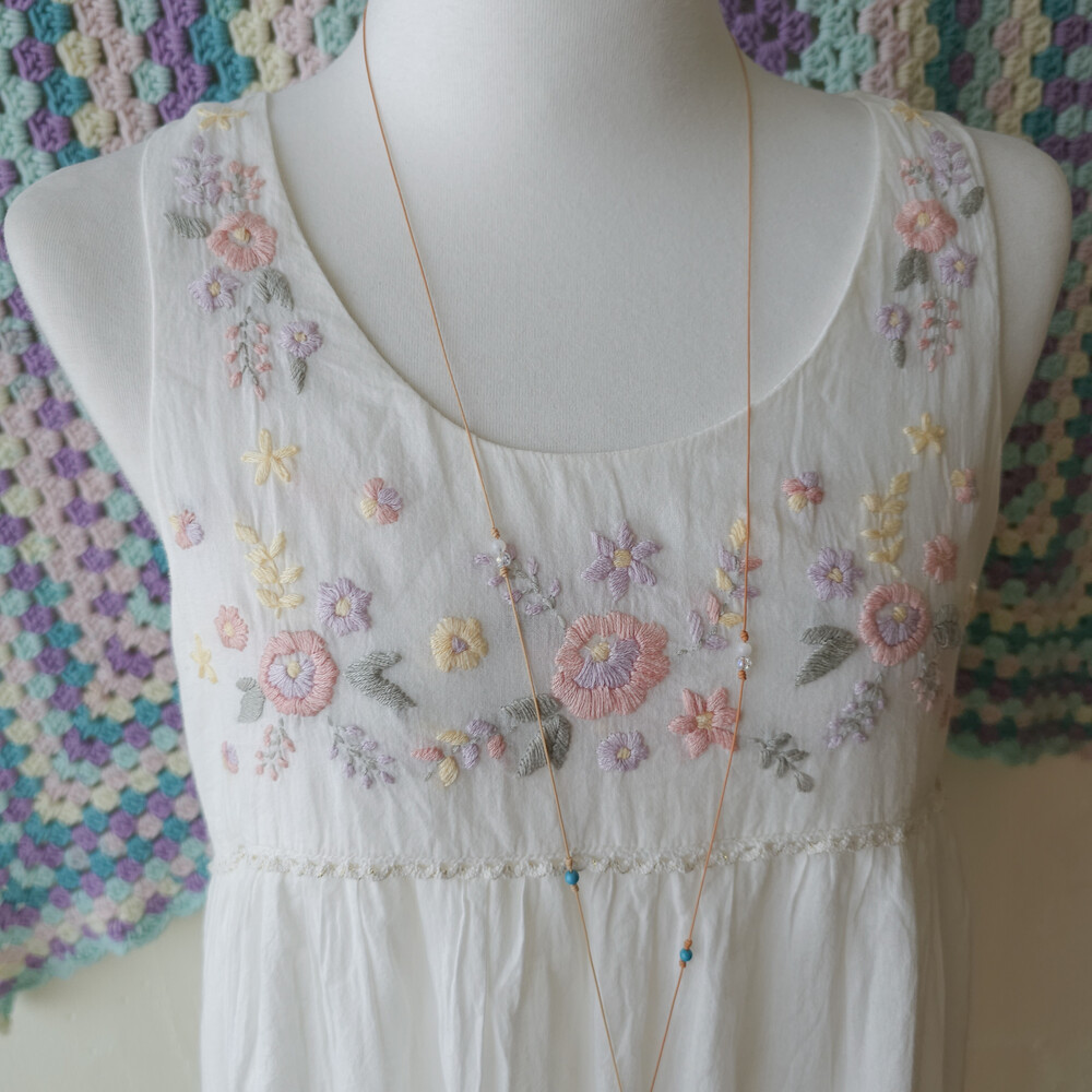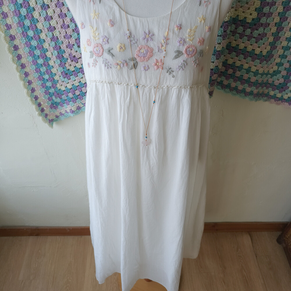 파스텔 자수 포인트의 민소매 롱원피스예요