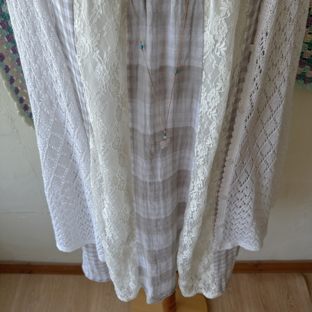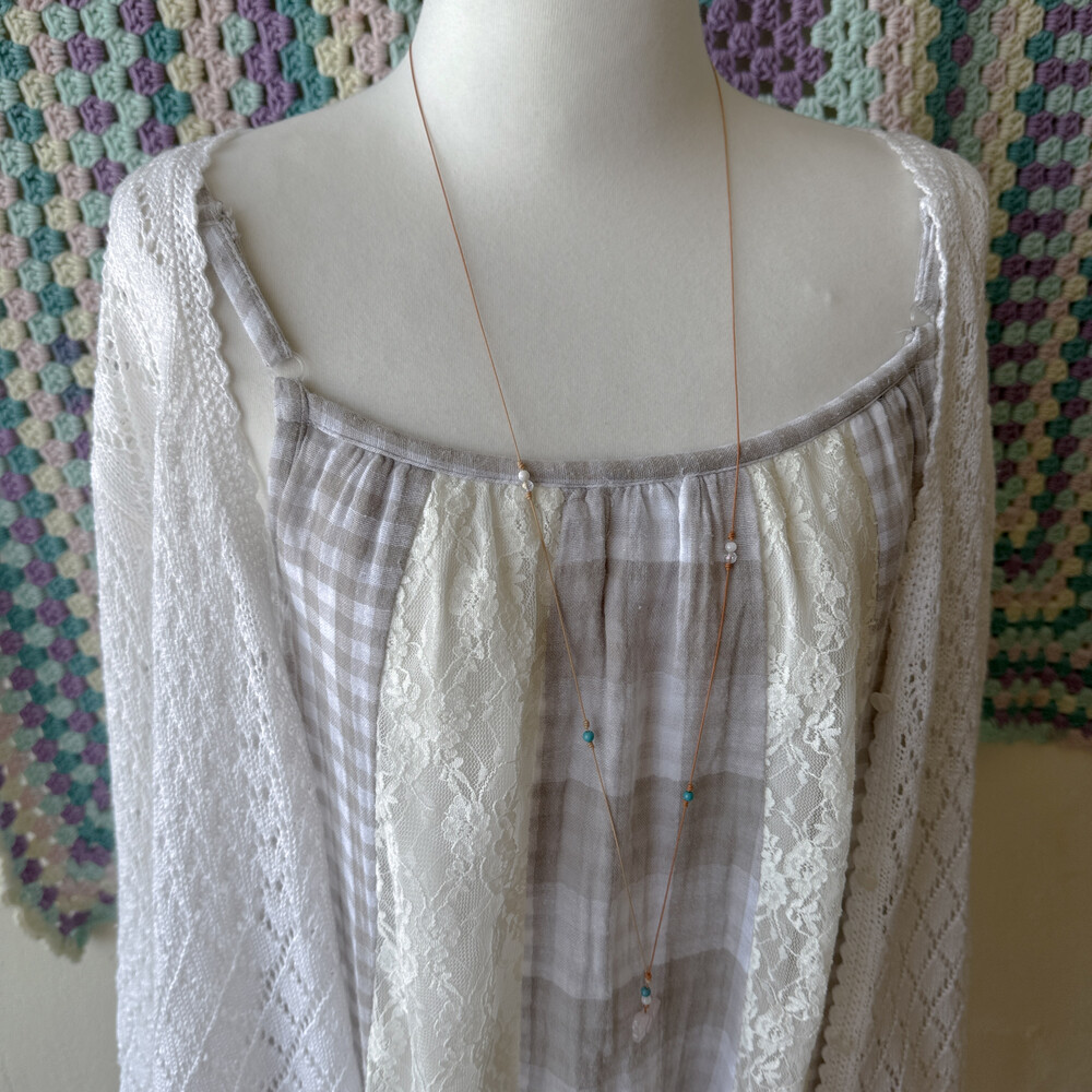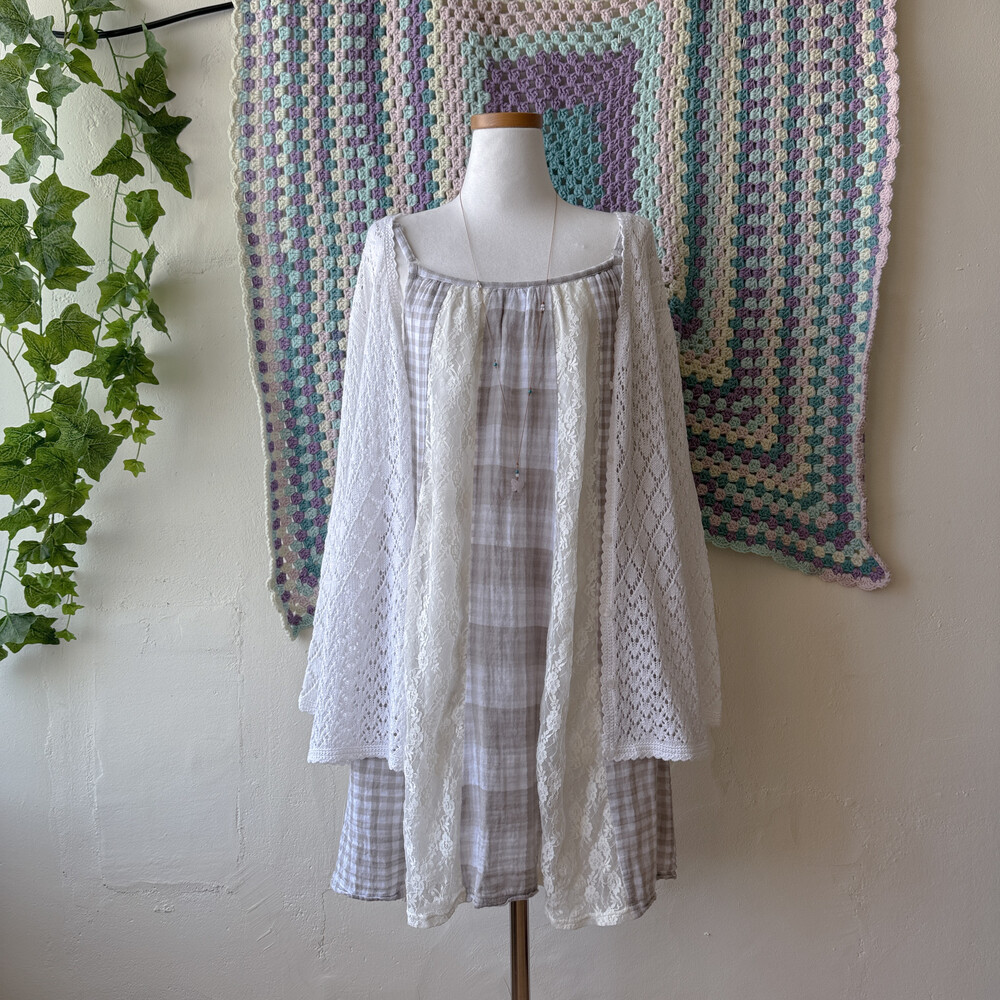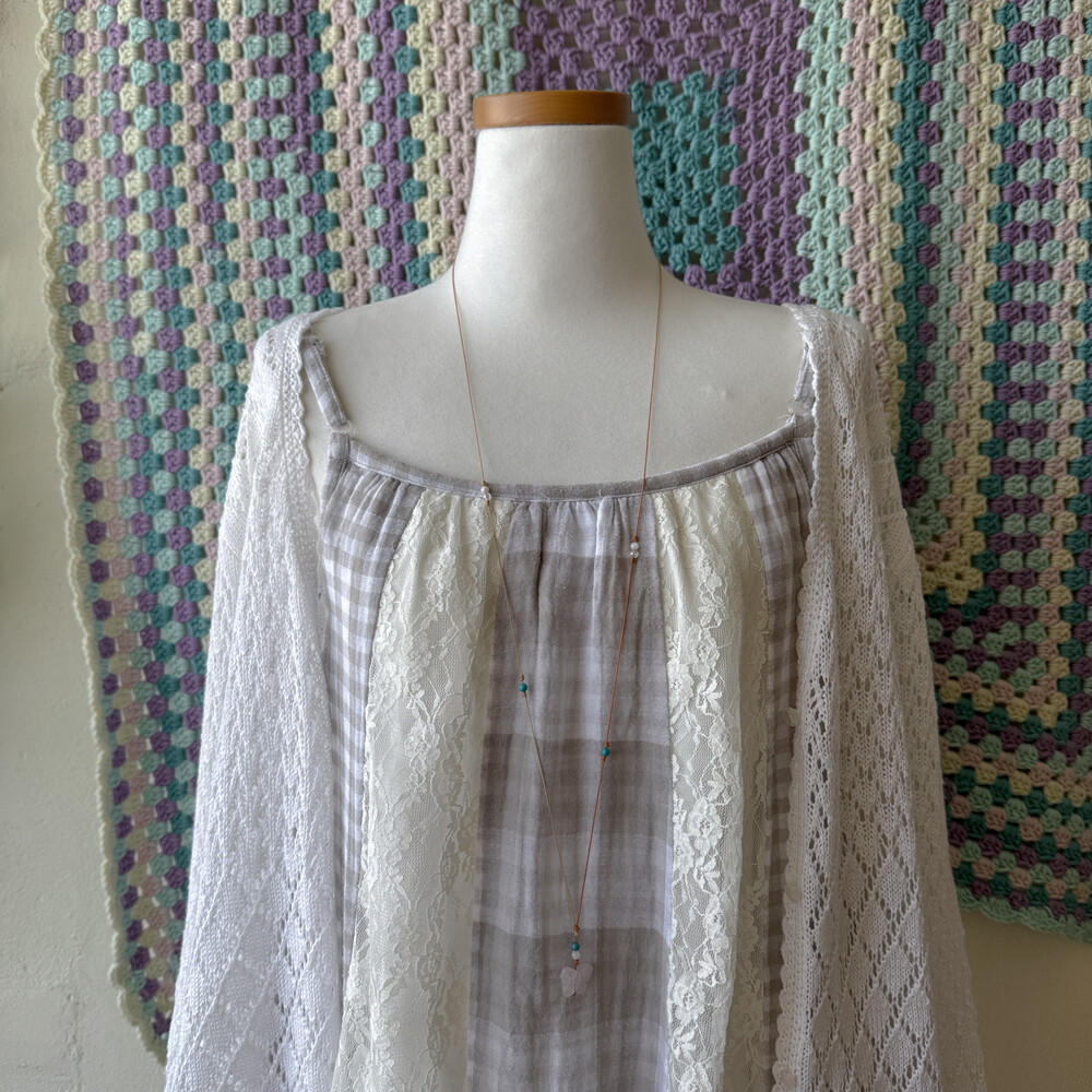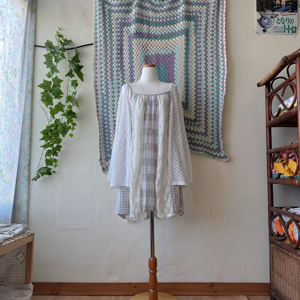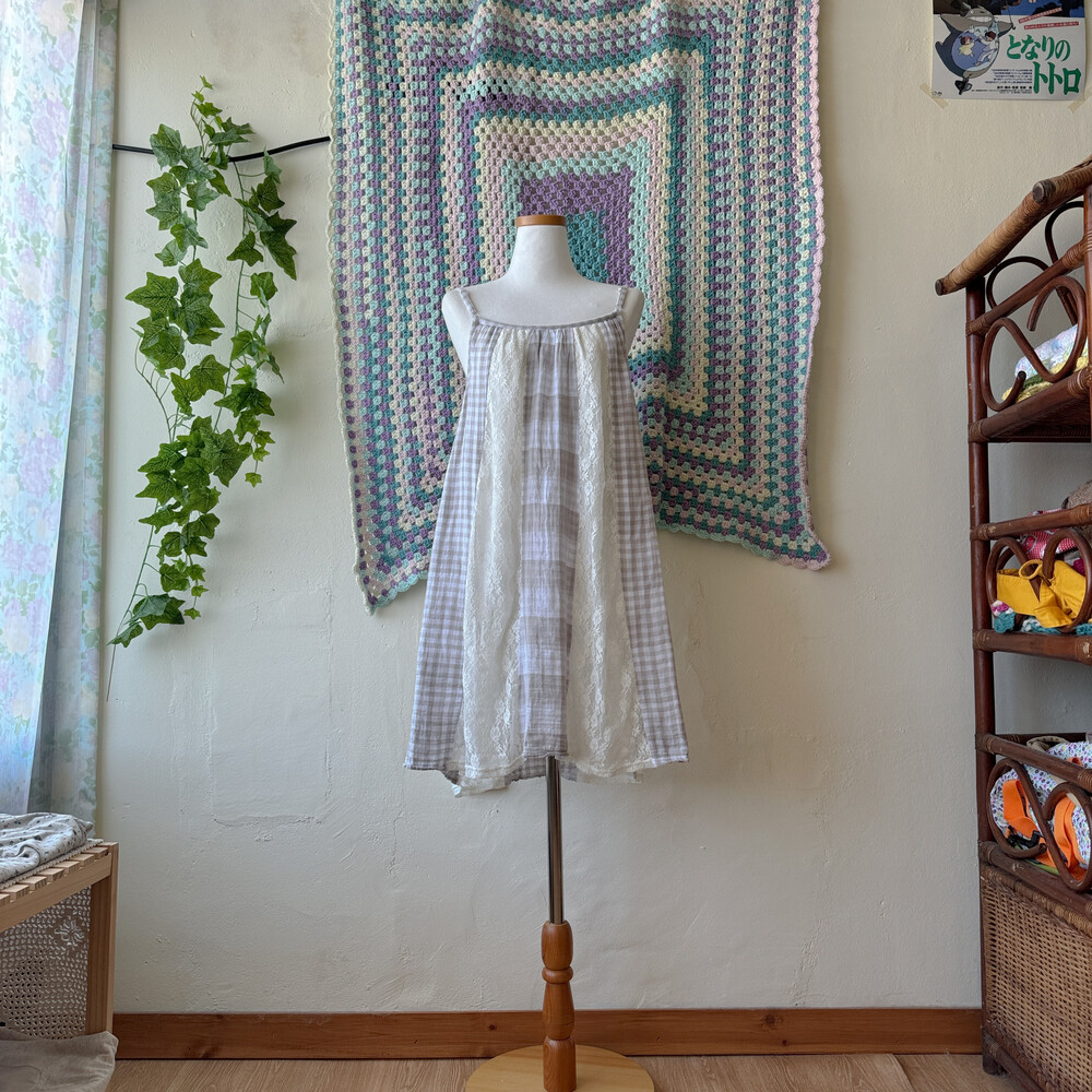 체크 부분은 코튼 소재고, 레이스는 나일론 폴리 혼방 소재예요