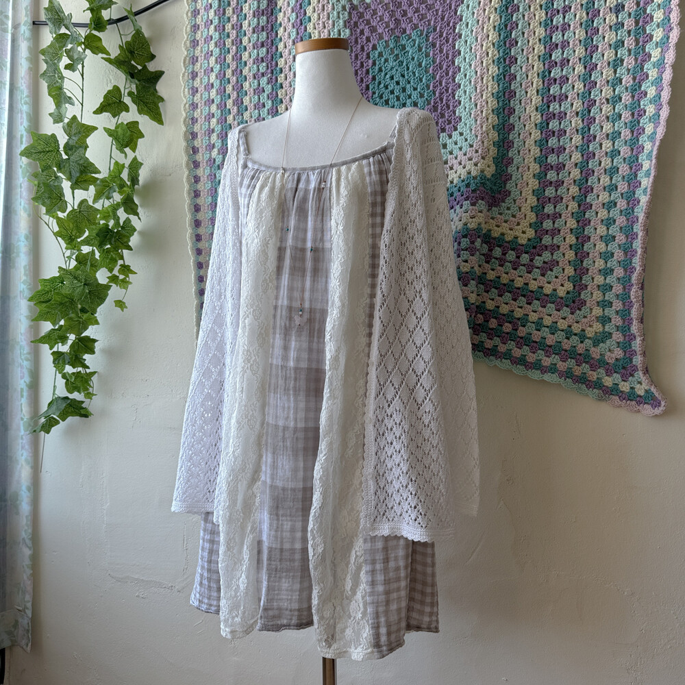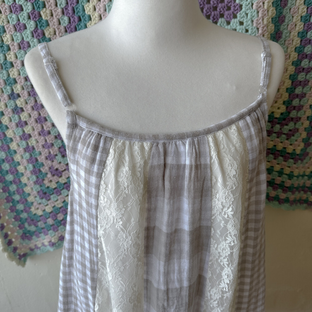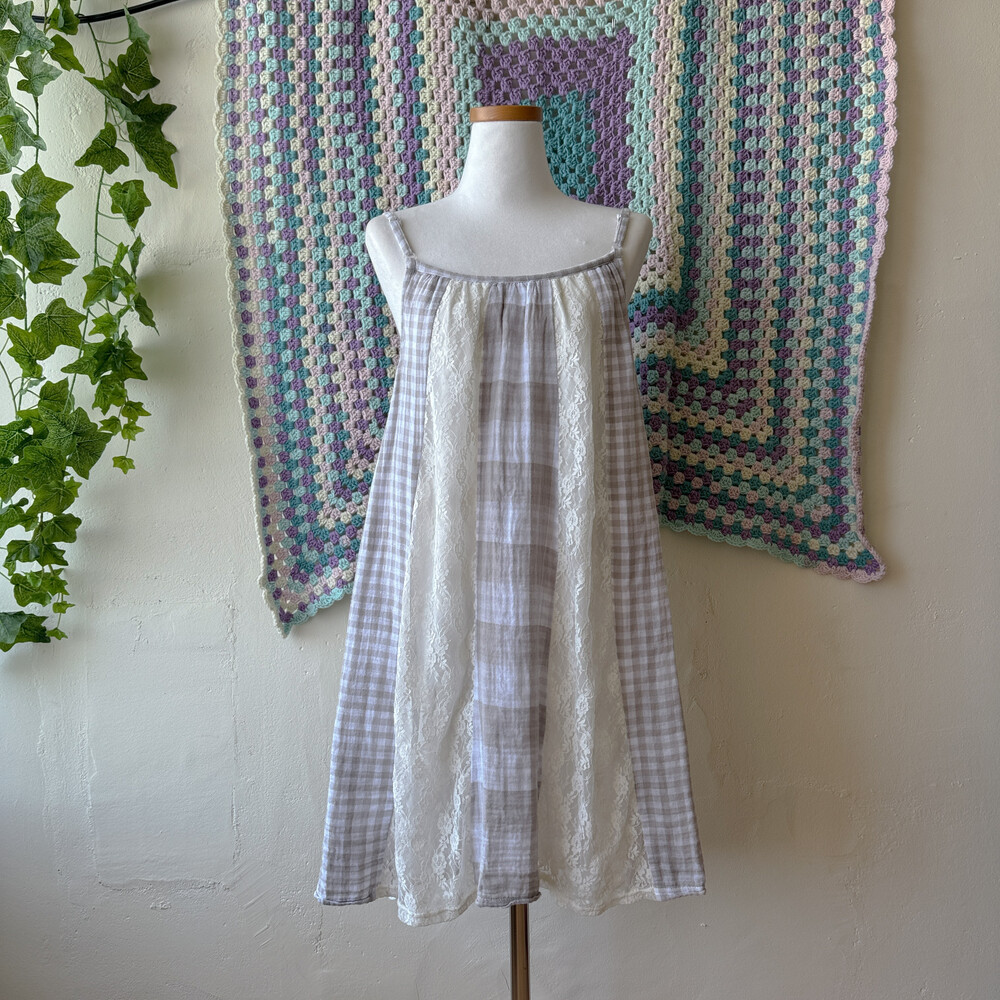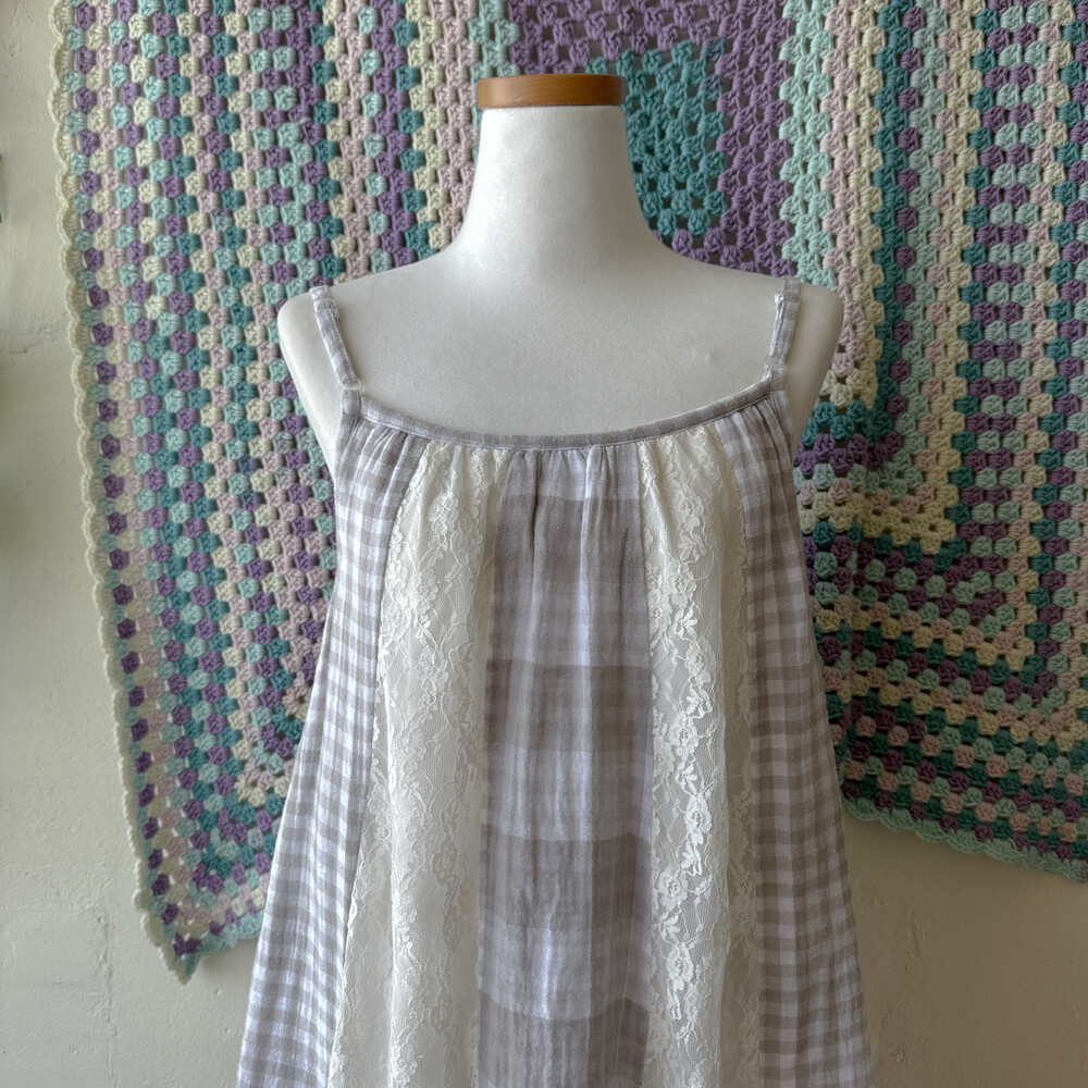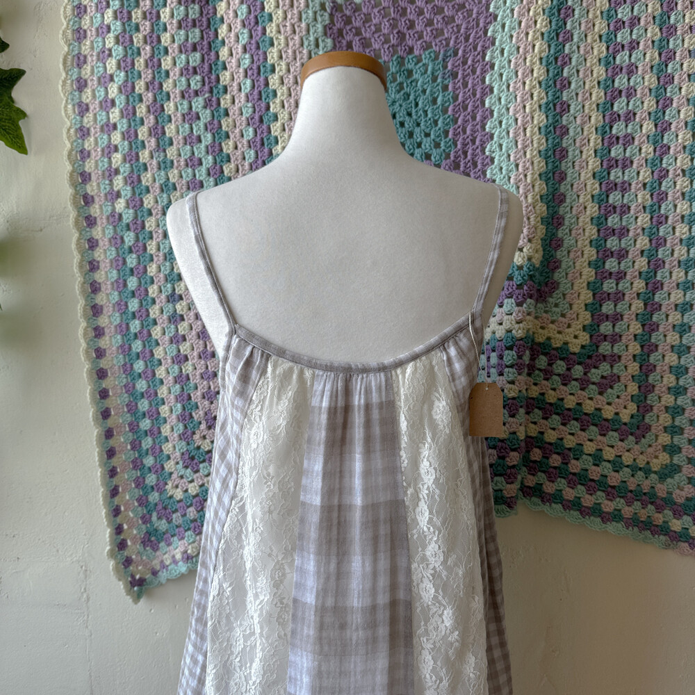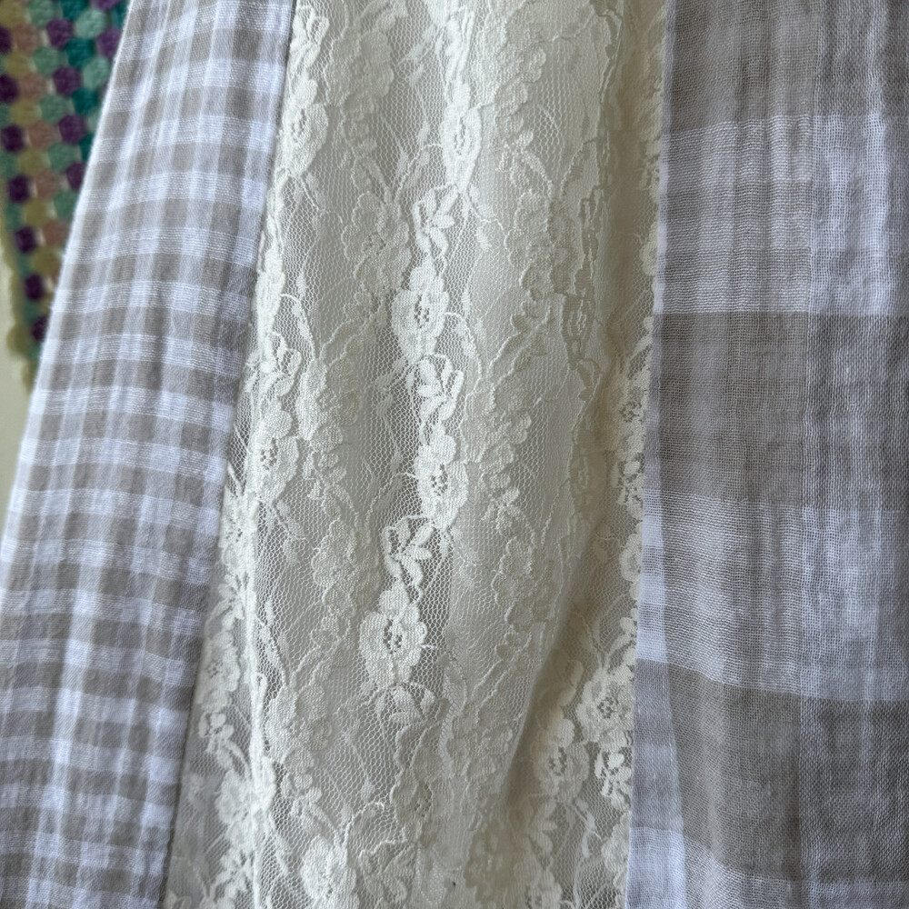 gray check vertical lace patch ops