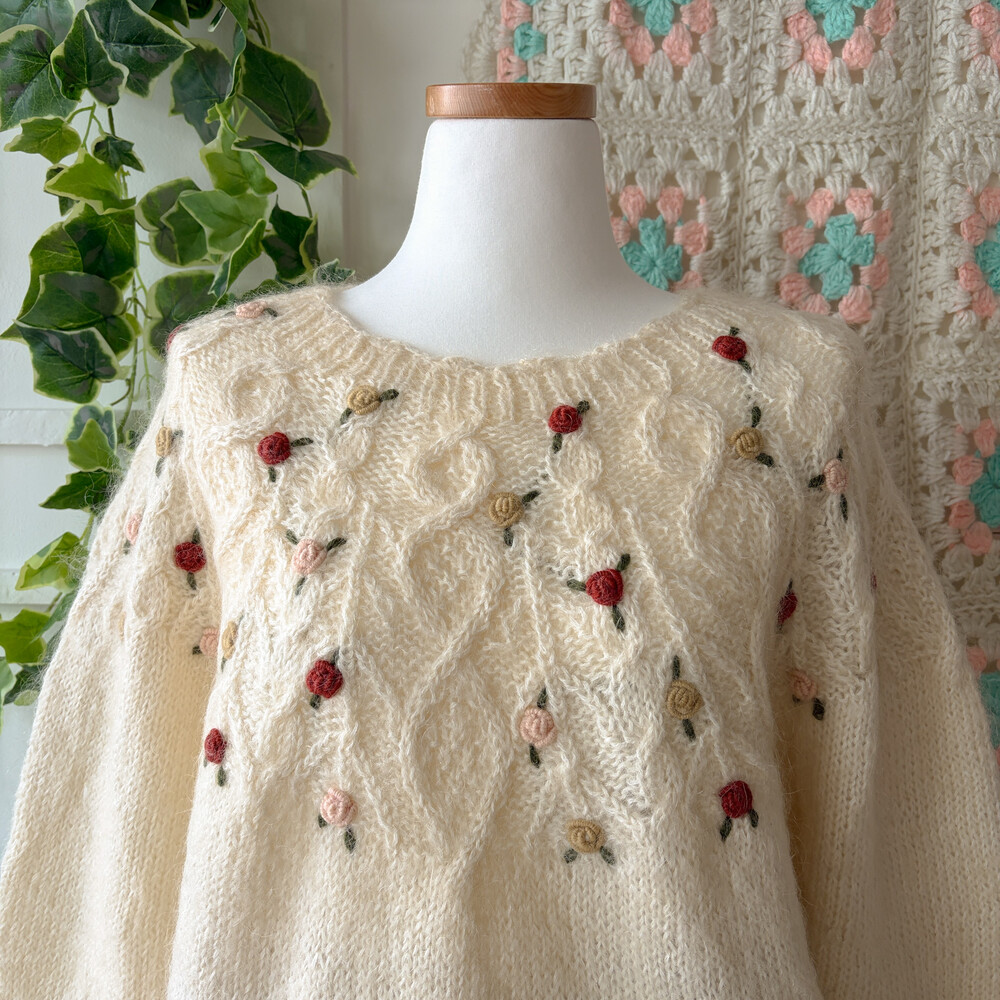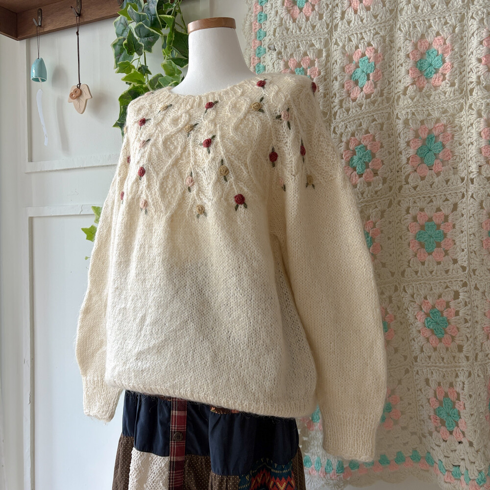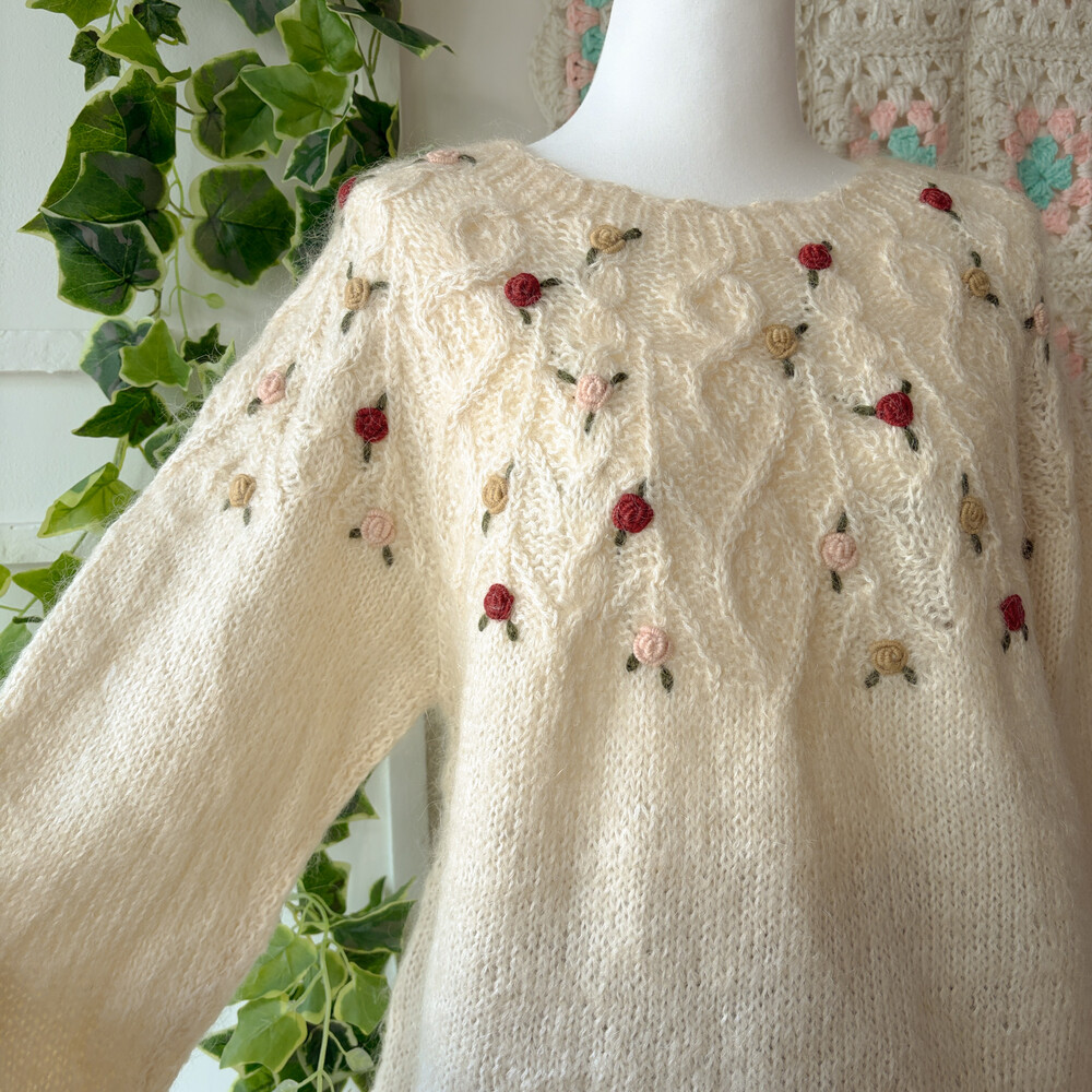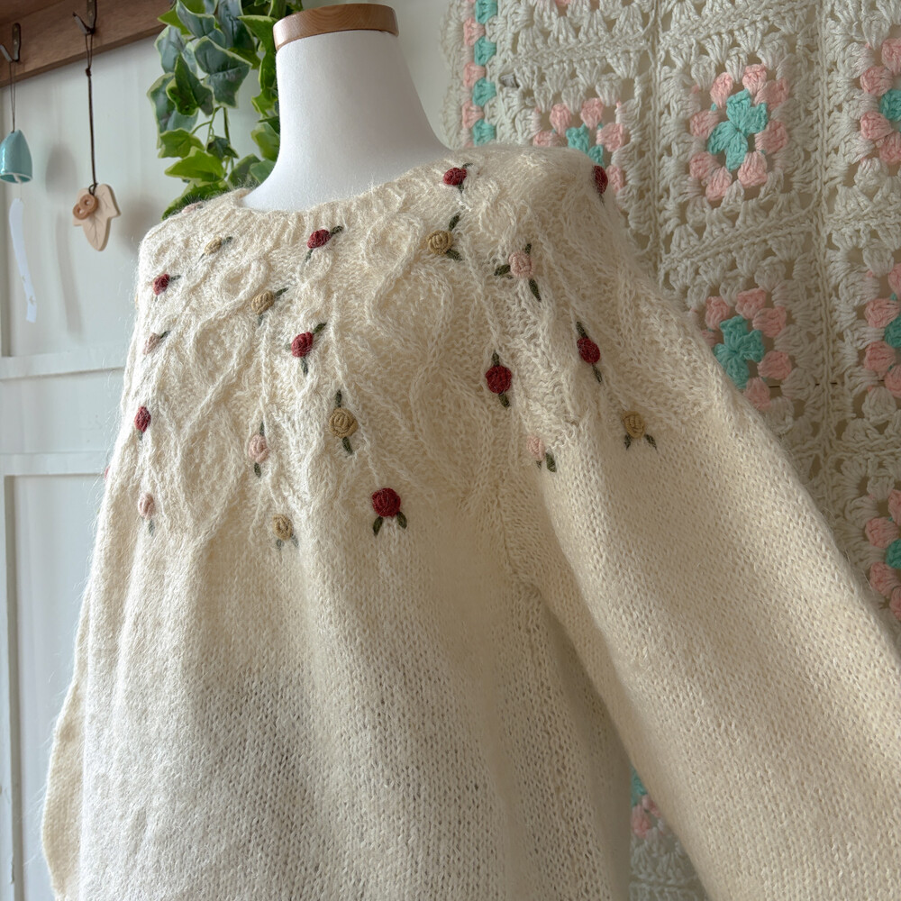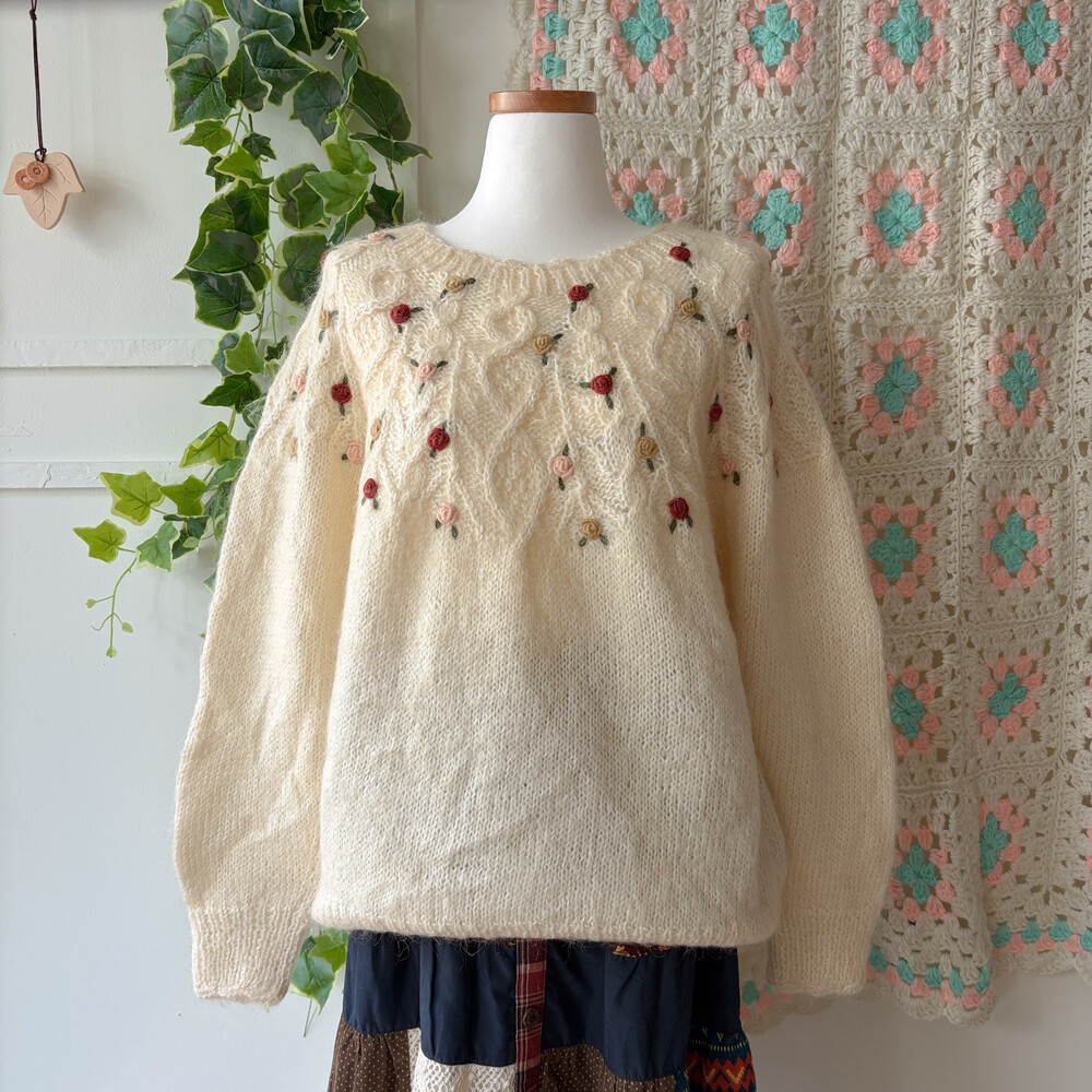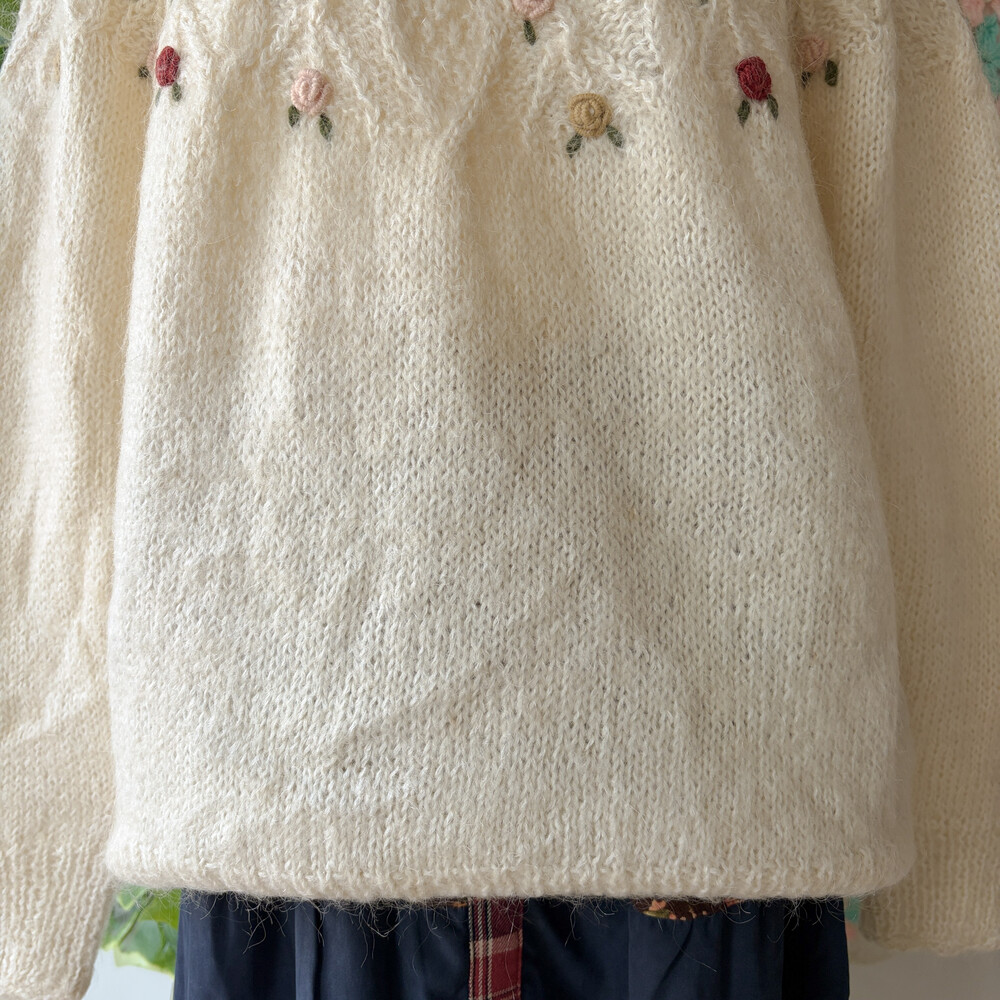 아이보리 색감의 프랑스자수 포인트 니트예요