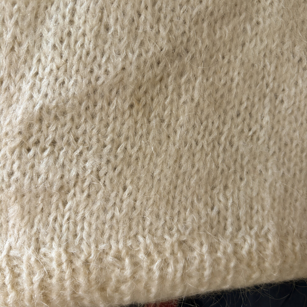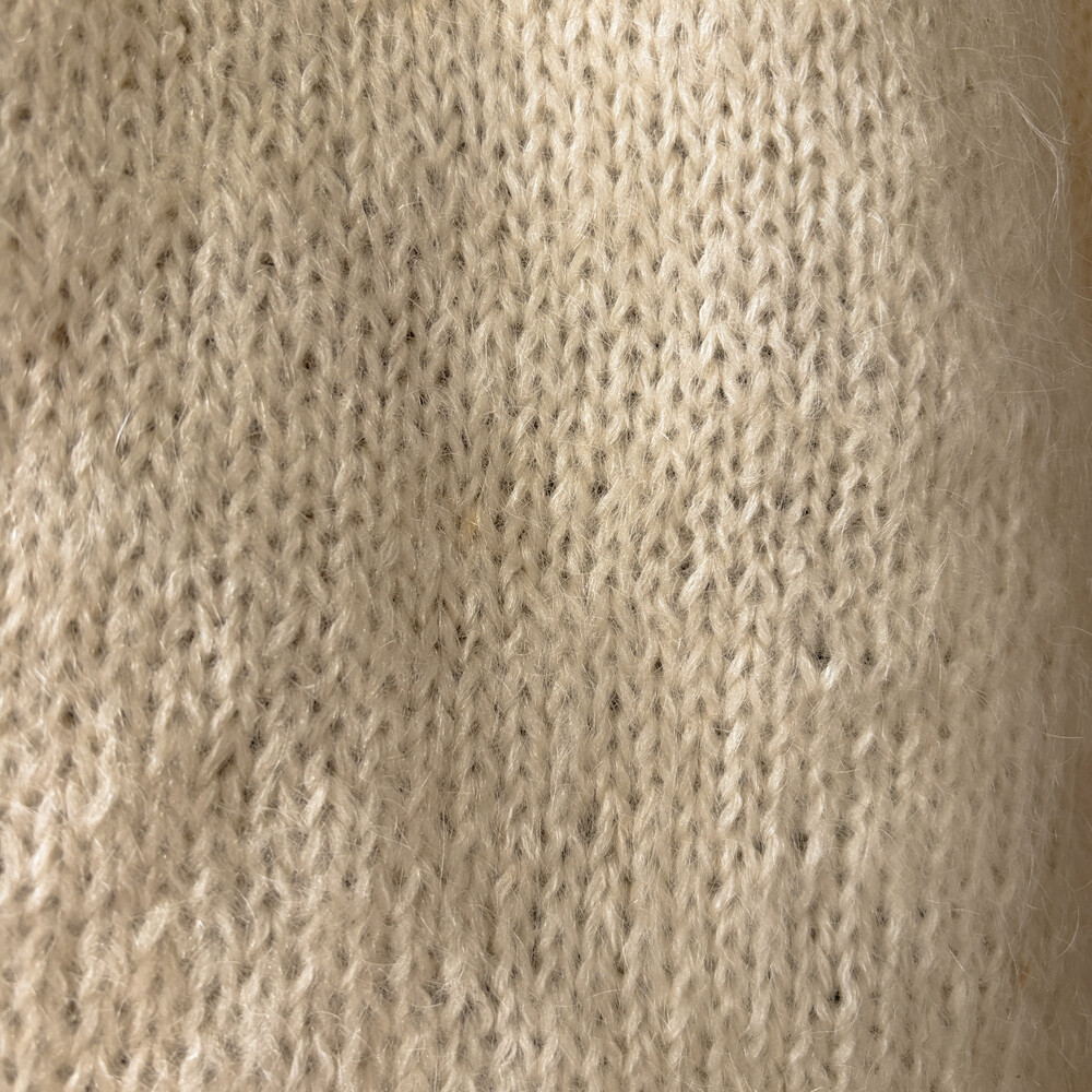 울50 아크릴50 혼방 소재고, 모헤어 같은 느낌의 헤어감 있는 부드러운 소재예요