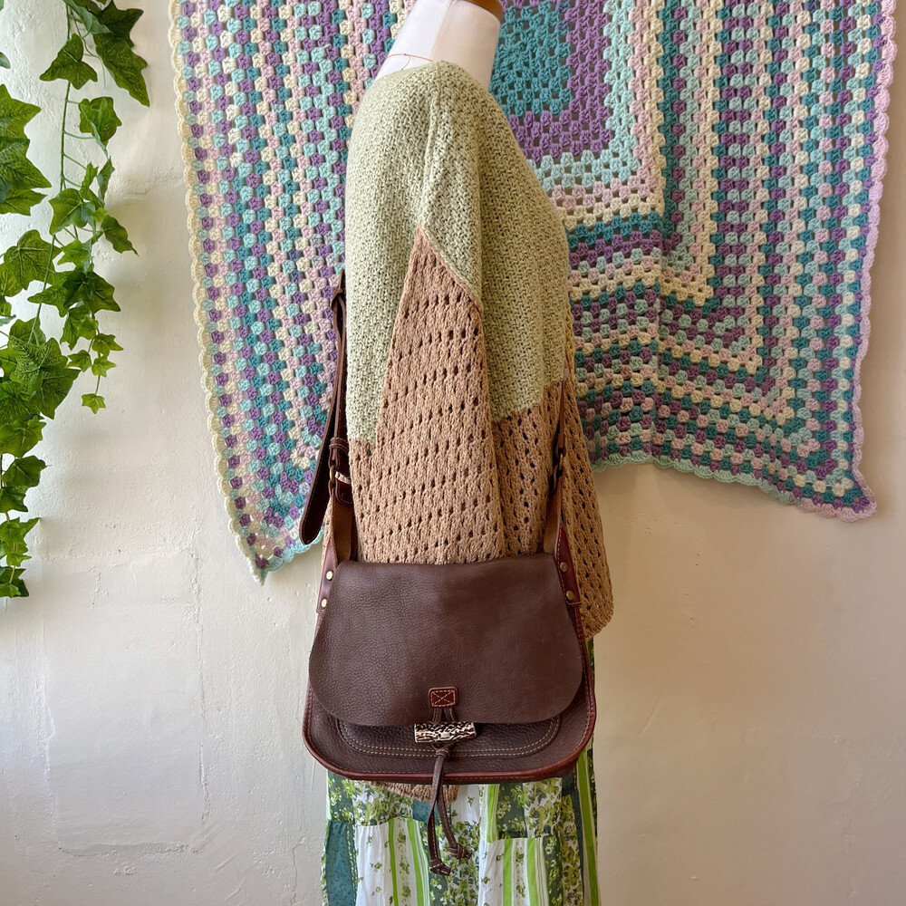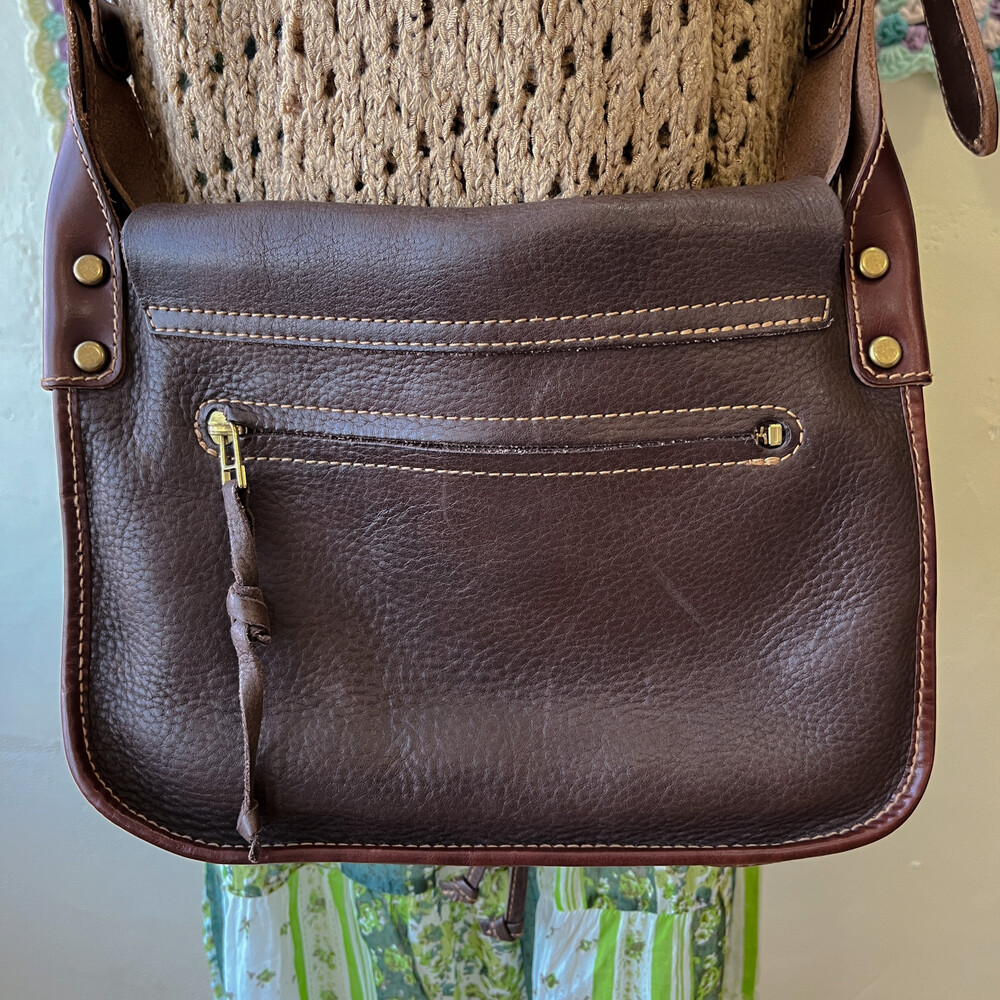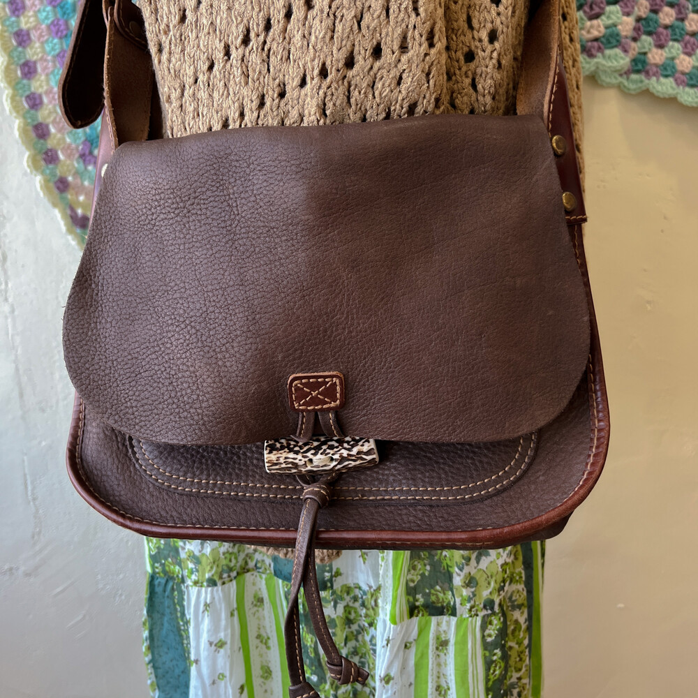 brown heavy leather cross bag